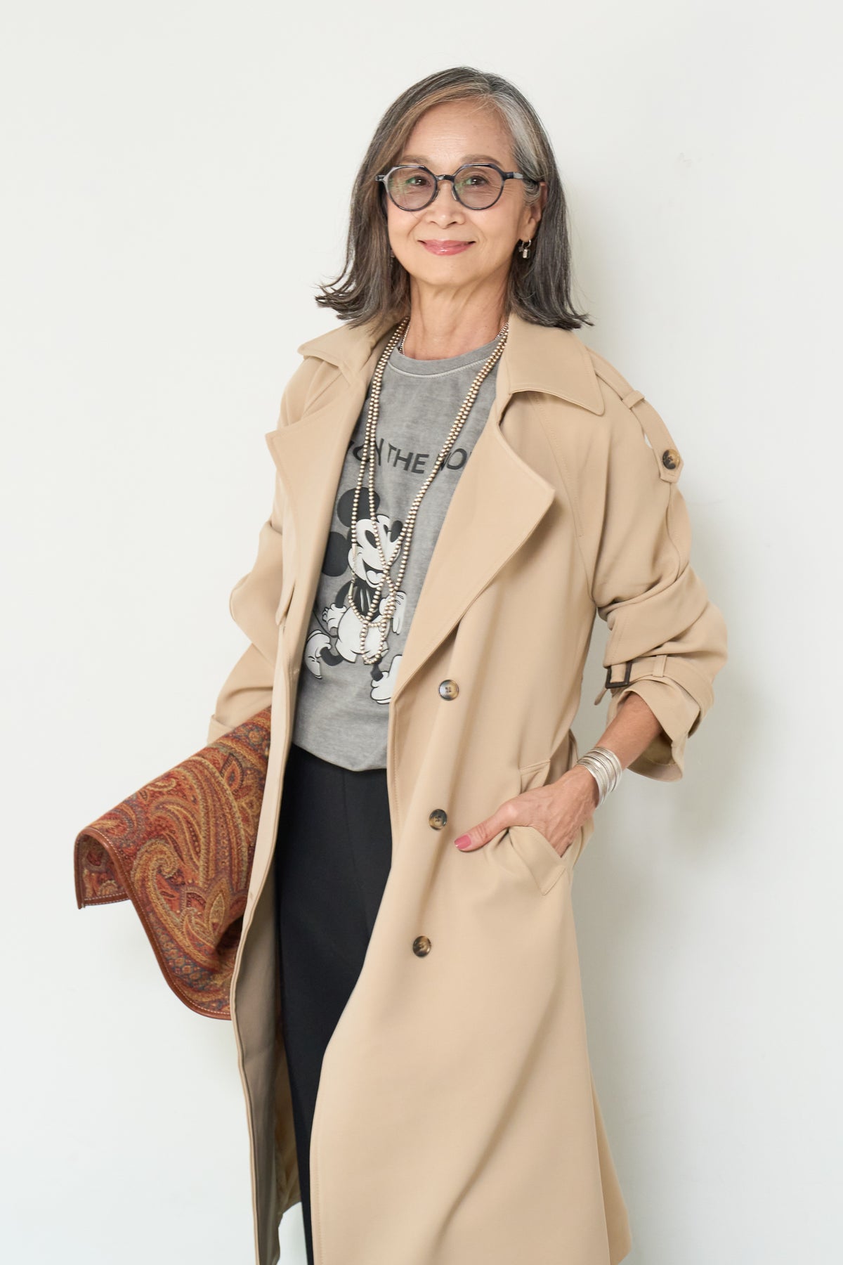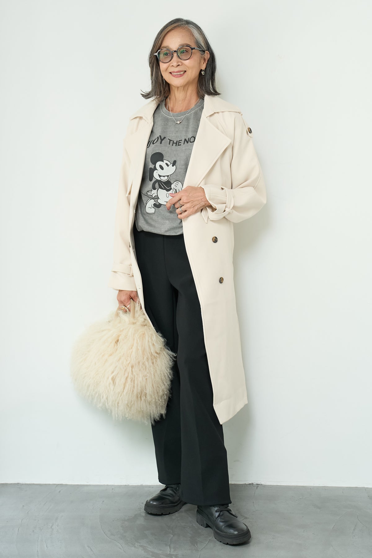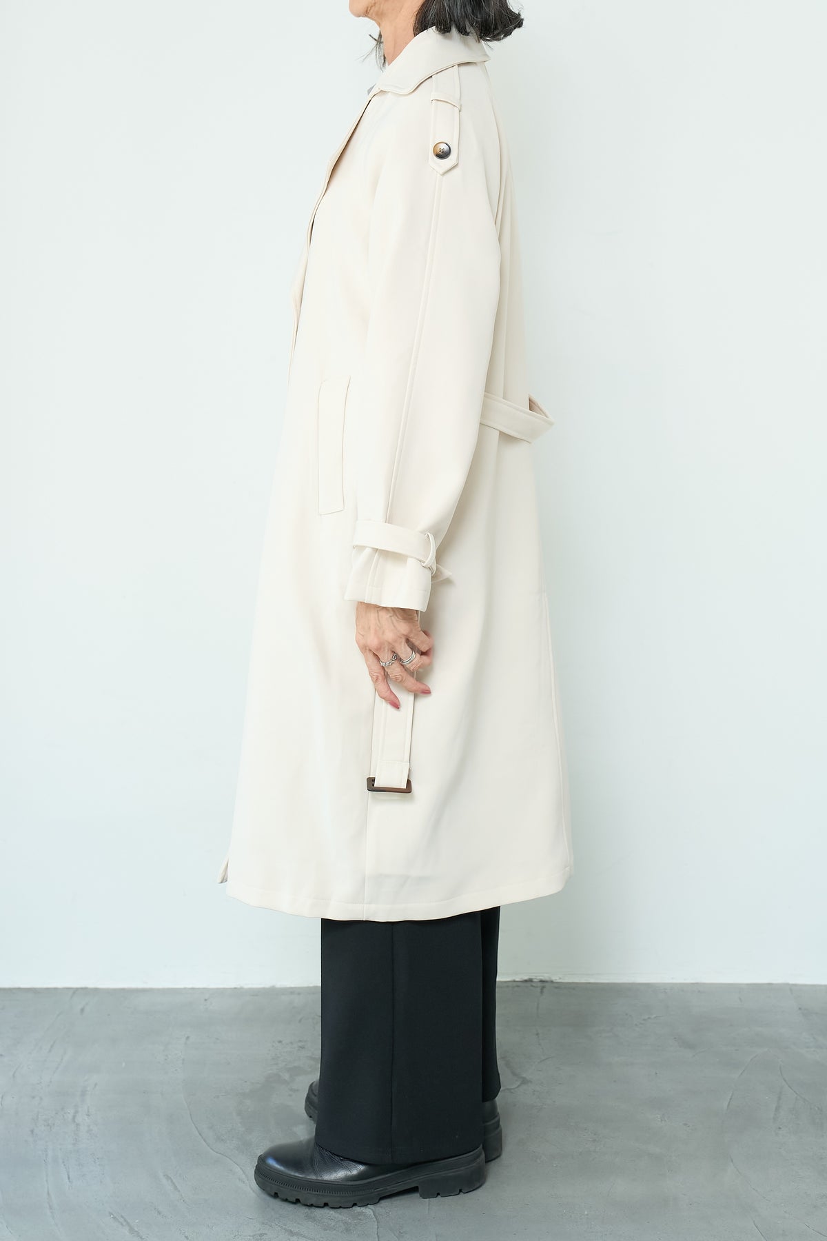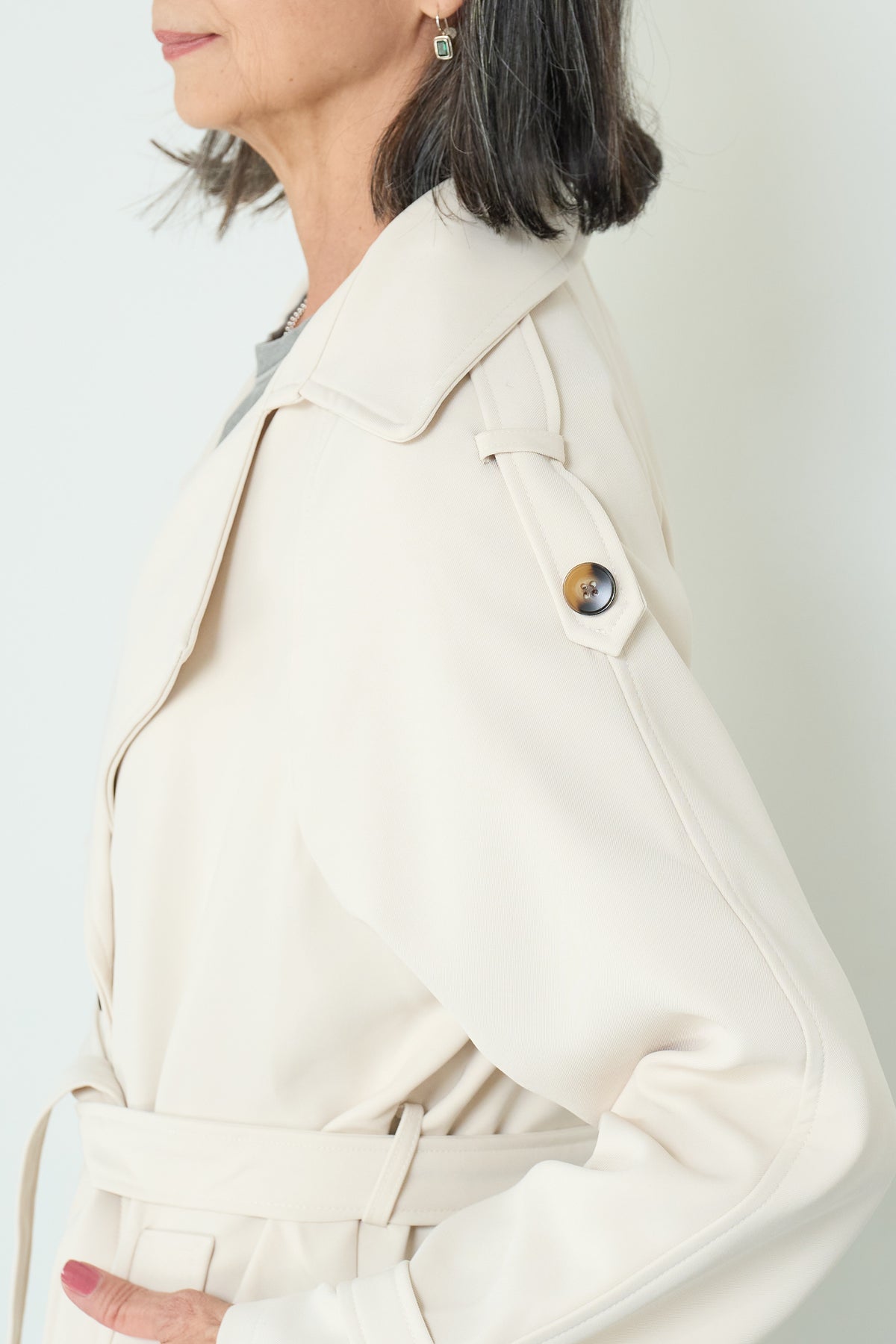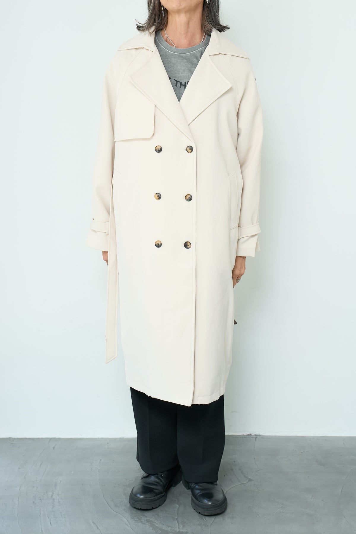 クラシックな佇まいに現代的なシルエットを取り入れたロングトレンチコート。ダブルボタンとウエストベルトが全体を引き締め、羽織るだけで品のある雰囲気に仕上がります。エポーレットや袖口のベルトディテールなど、伝統的なトレンチの要素を取り入れつつ、柔らかな素材感で軽やかに着られるのも魅力。膝下までの丈感が体を包み込み、オンからオフまで幅広いシーンで活躍する一枚です。