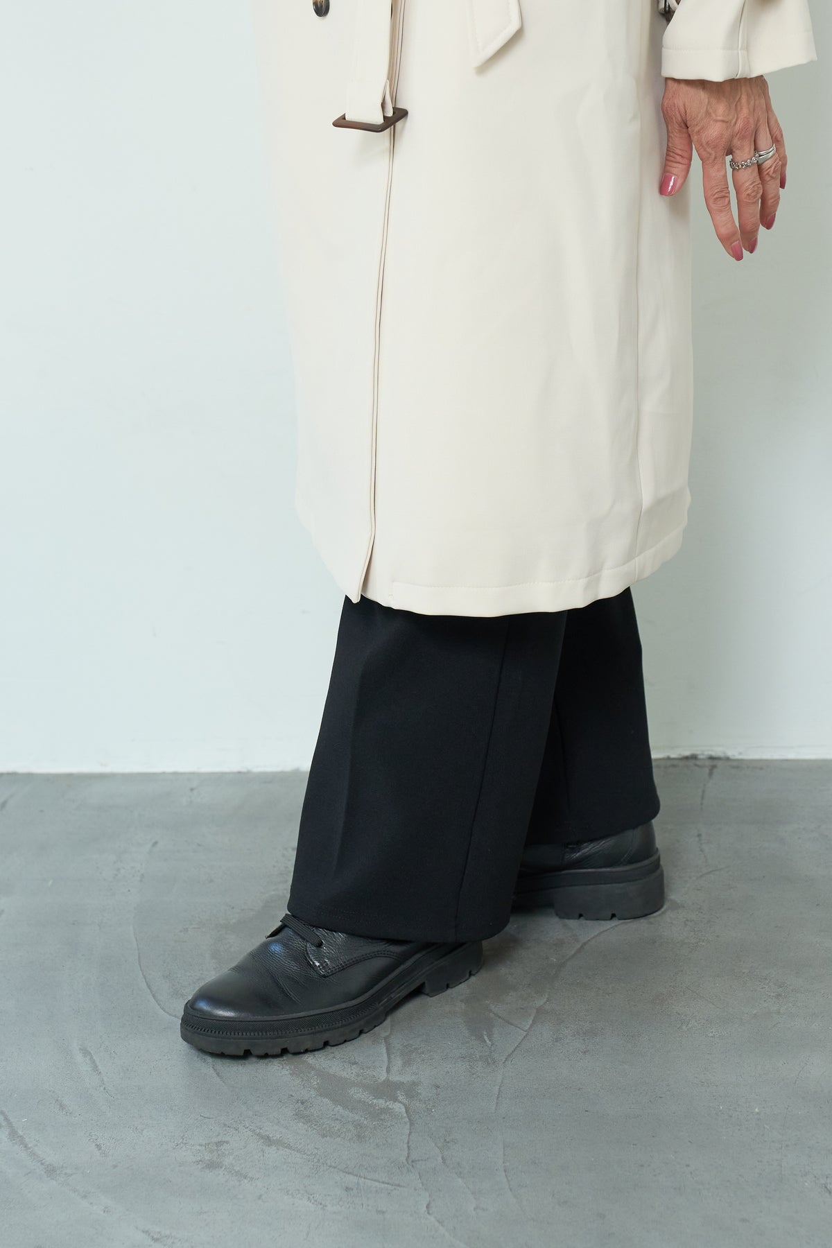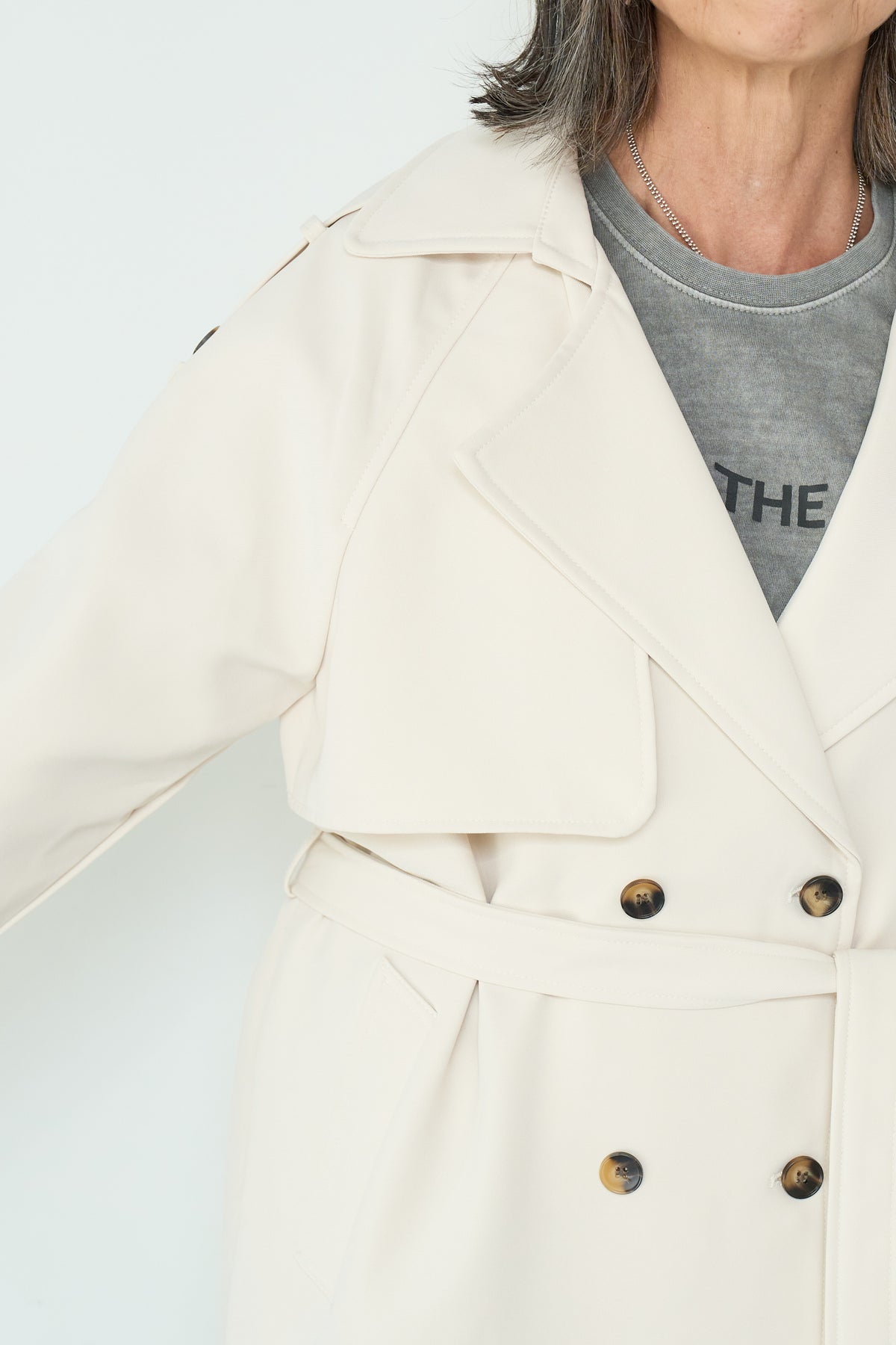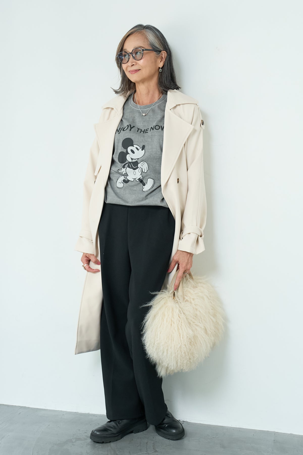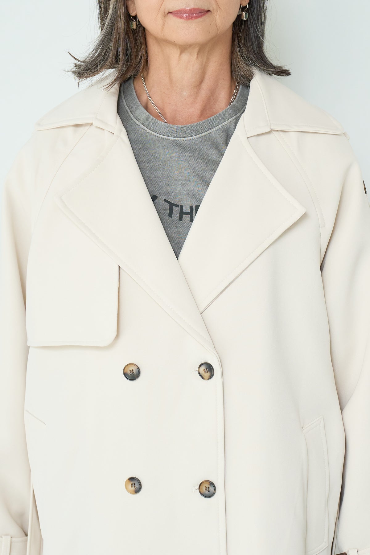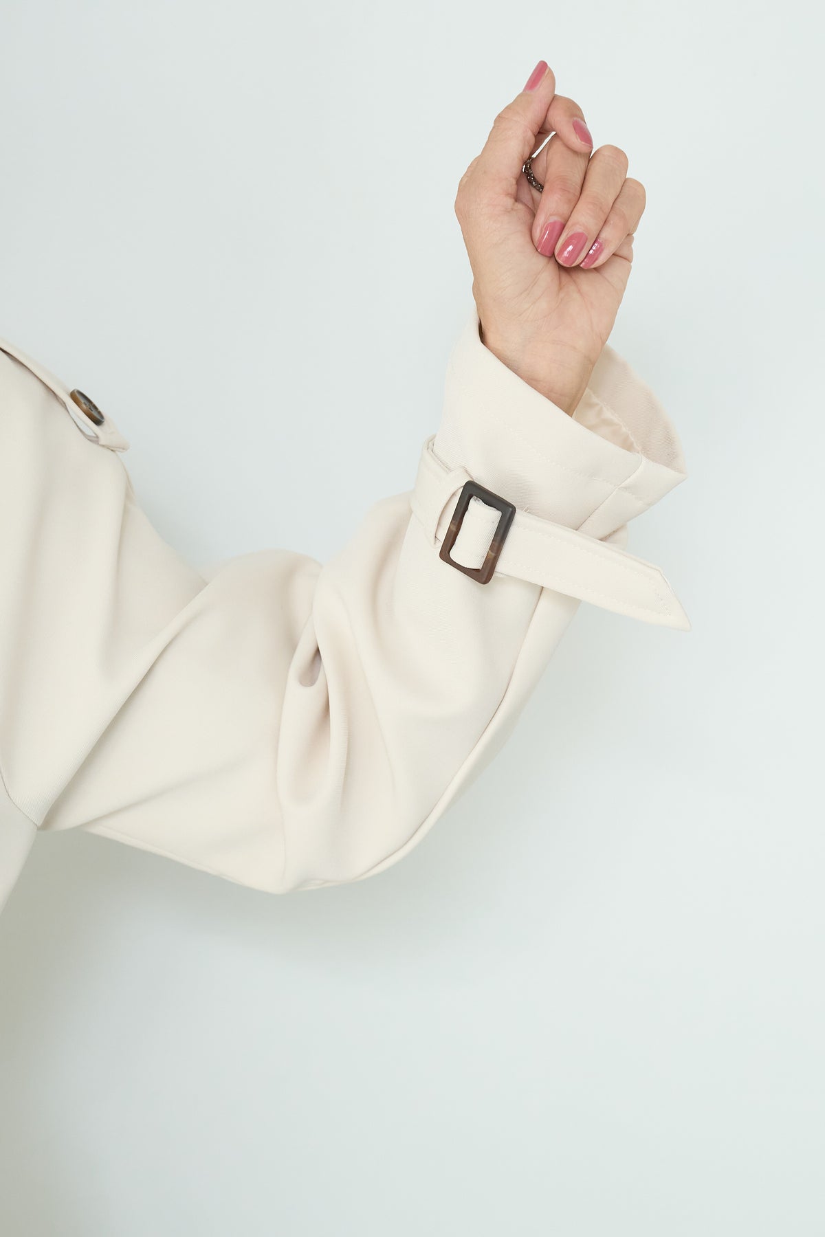 クラシックな佇まいに現代的なシルエットを取り入れたロングトレンチコート。ダブルボタンとウエストベルトが全体を引き締め、羽織るだけで品のある雰囲気に仕上がります。エポーレットや袖口のベルトディテールなど、伝統的なトレンチの要素を取り入れつつ、柔らかな素材感で軽やかに着られるのも魅力。膝下までの丈感が体を包み込み、オンからオフまで幅広いシーンで活躍する一枚です。