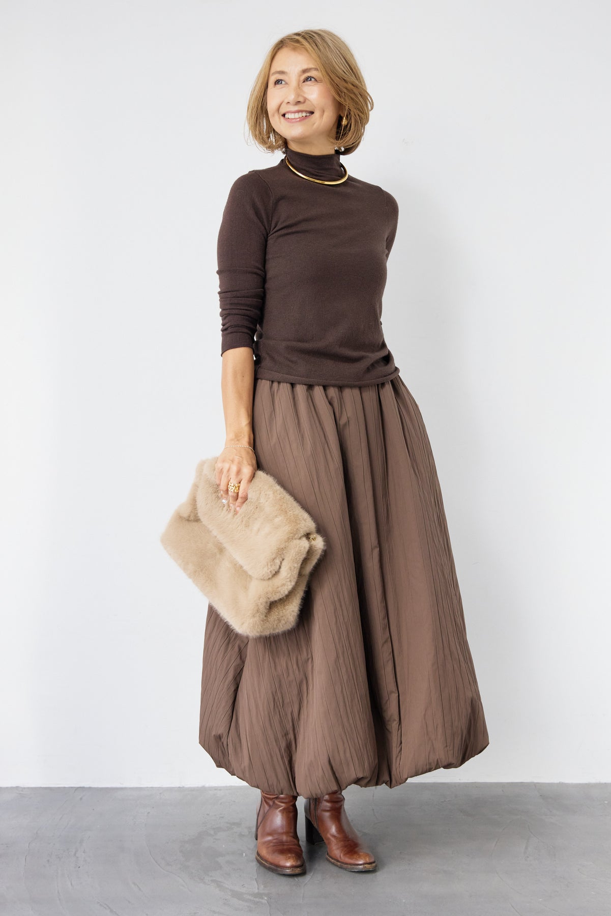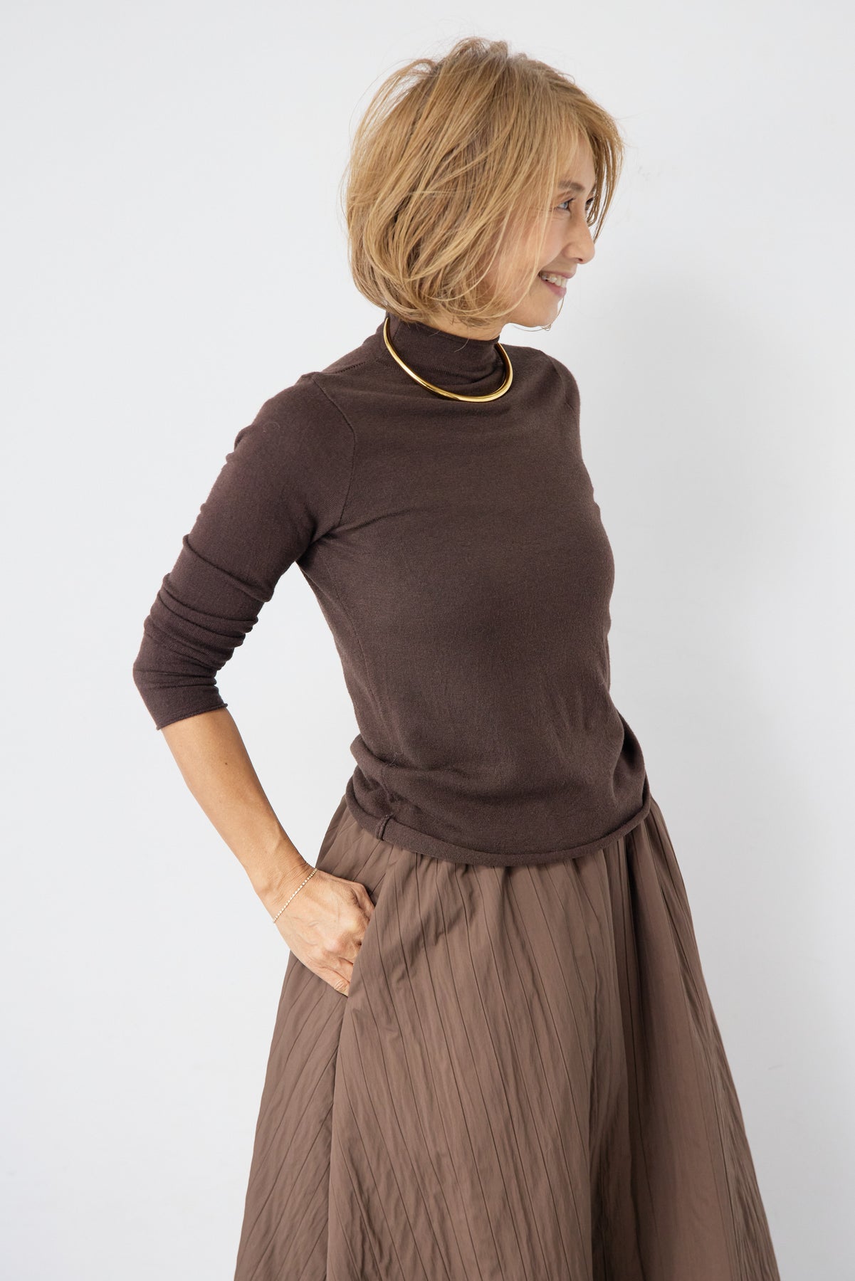 ロールエッジタートルニット