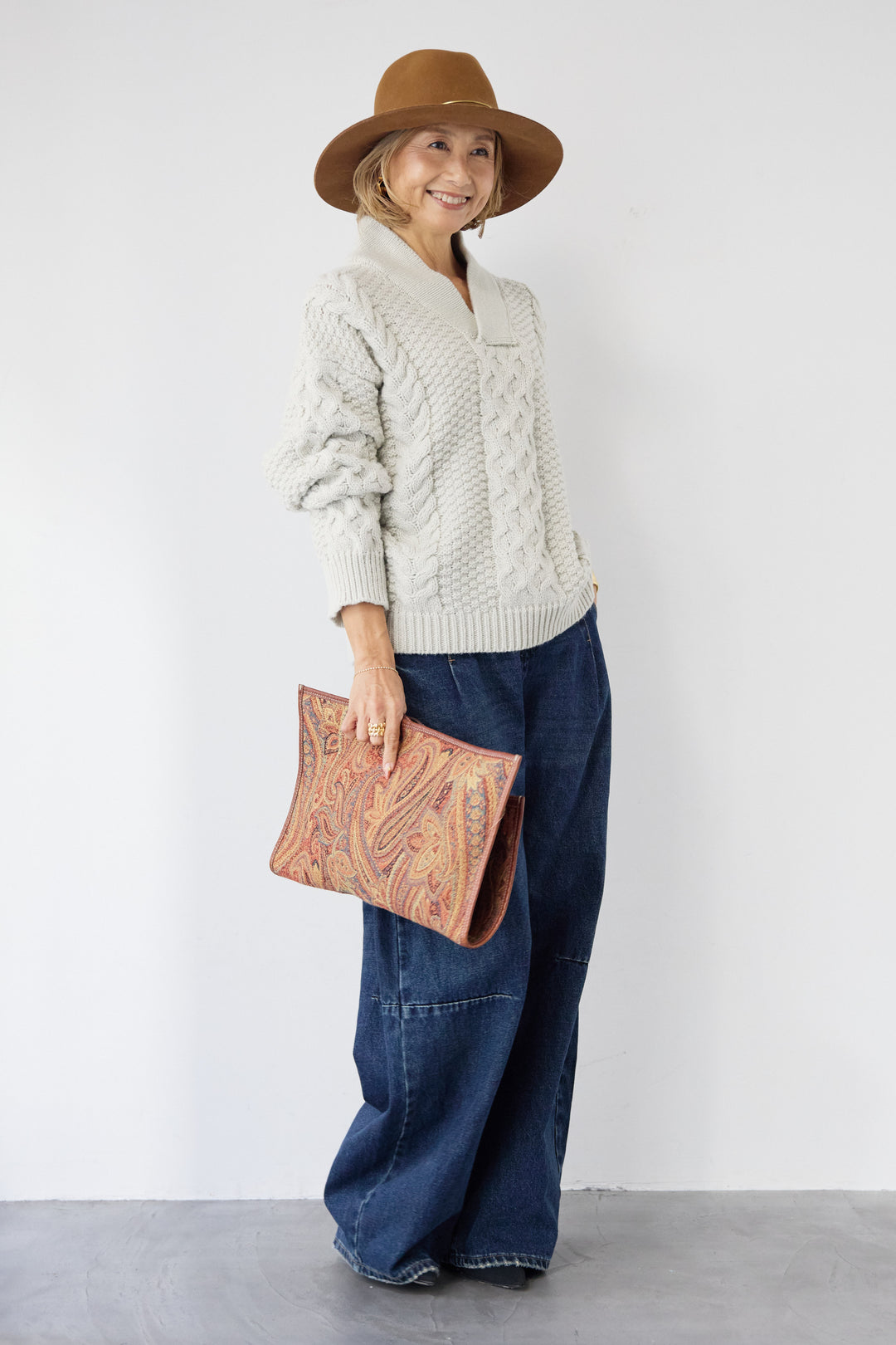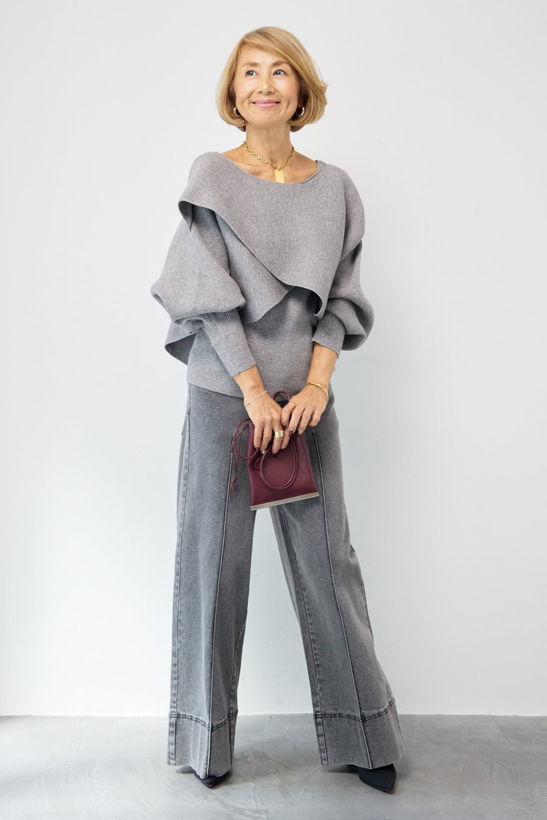 [SET]ウォッシャブルポンチョニット+カーブデニムパンツ(2set)