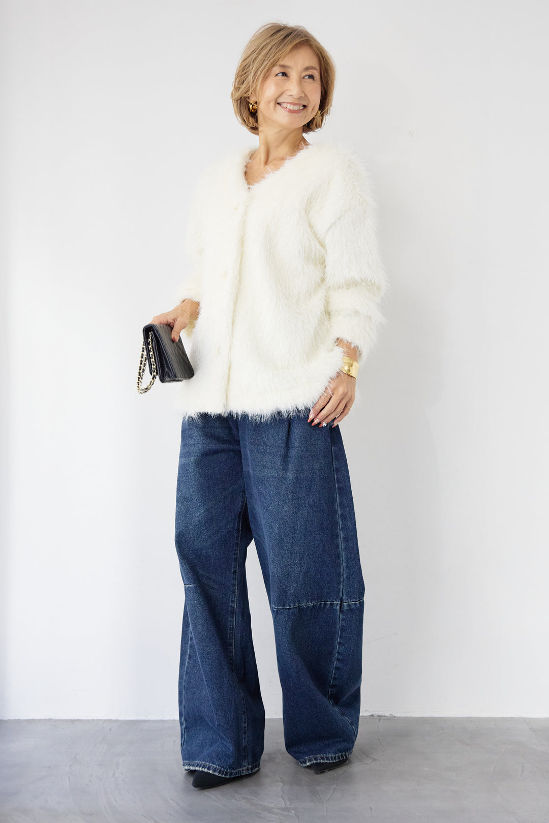 [SET]エアリーシャギーカーディガン+カーブデニムパンツ(2set)