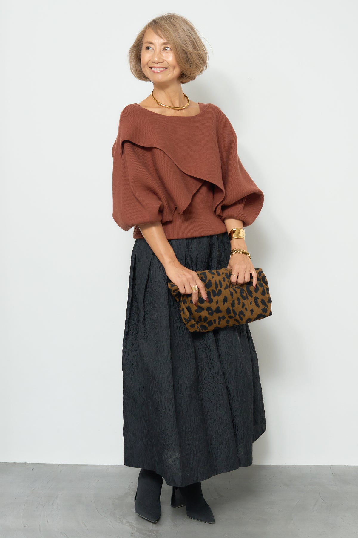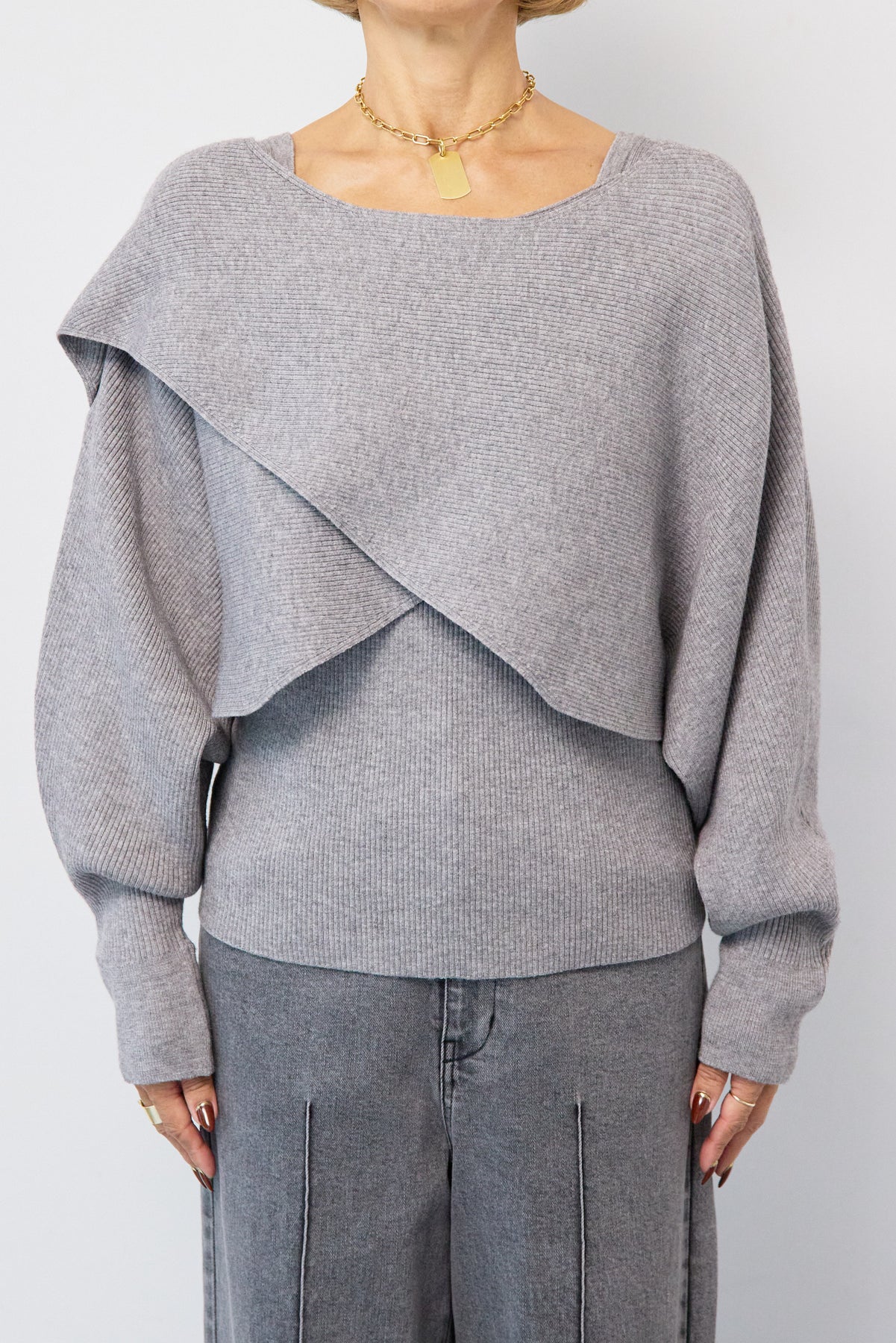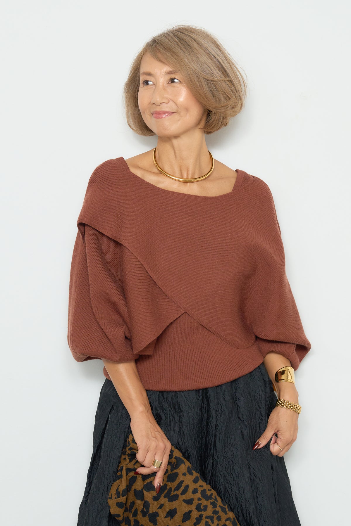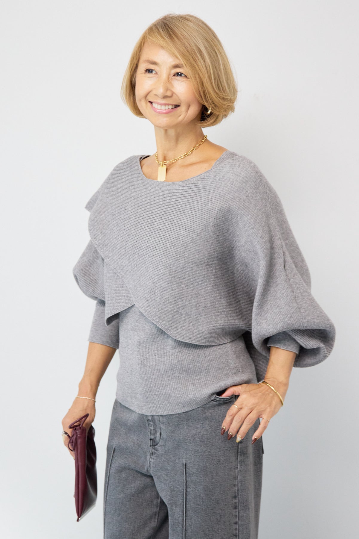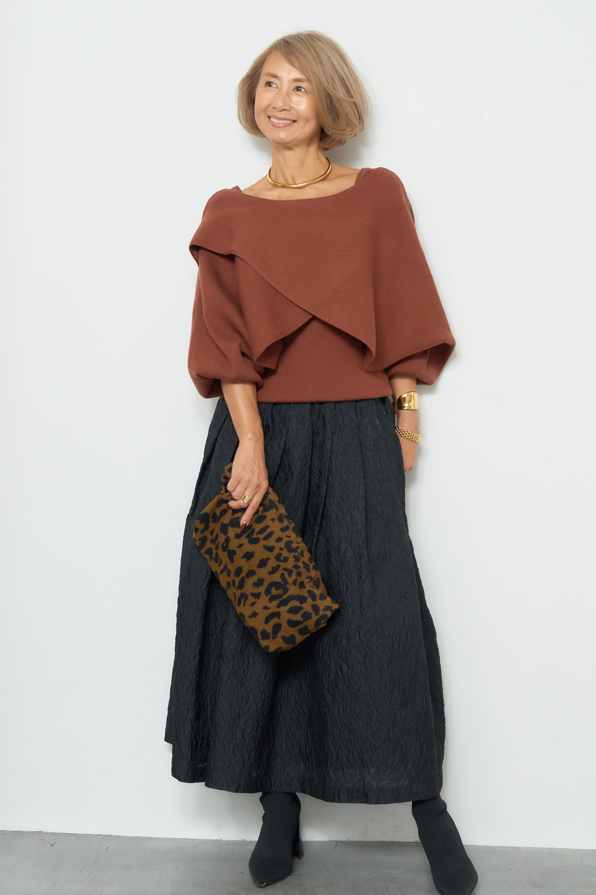 アシンメトリーなケープデザインが目を惹くニットと、シンプルなリブタンクトップの2点セット。レイヤードで着用すればモードな雰囲気を演出でき、単品使いでは幅広いコーディネートに活躍します。程よくゆとりのあるシルエットとリブ編みの伸縮性で、快適な着心地を実現。オンオフ問わずシーズンレスで使える万能アイテムです。