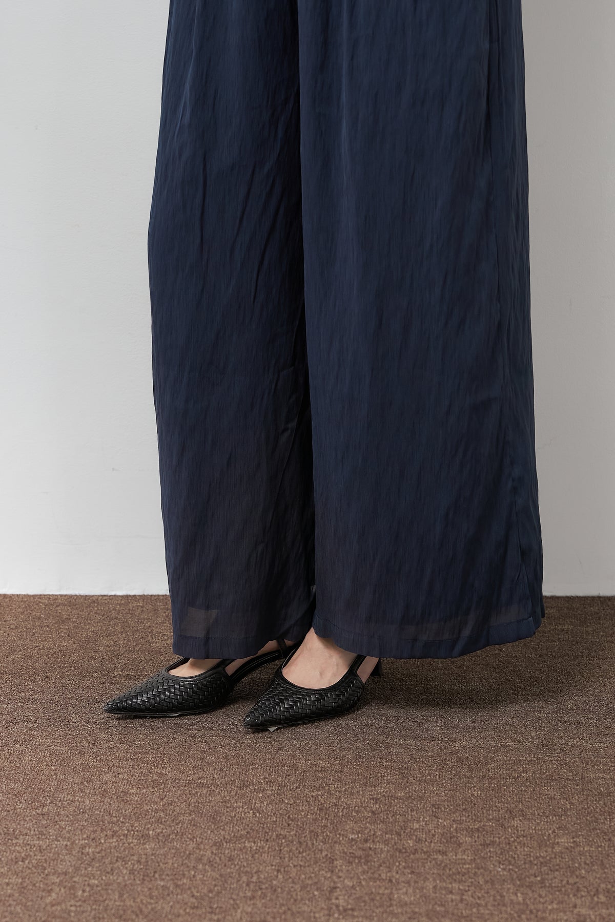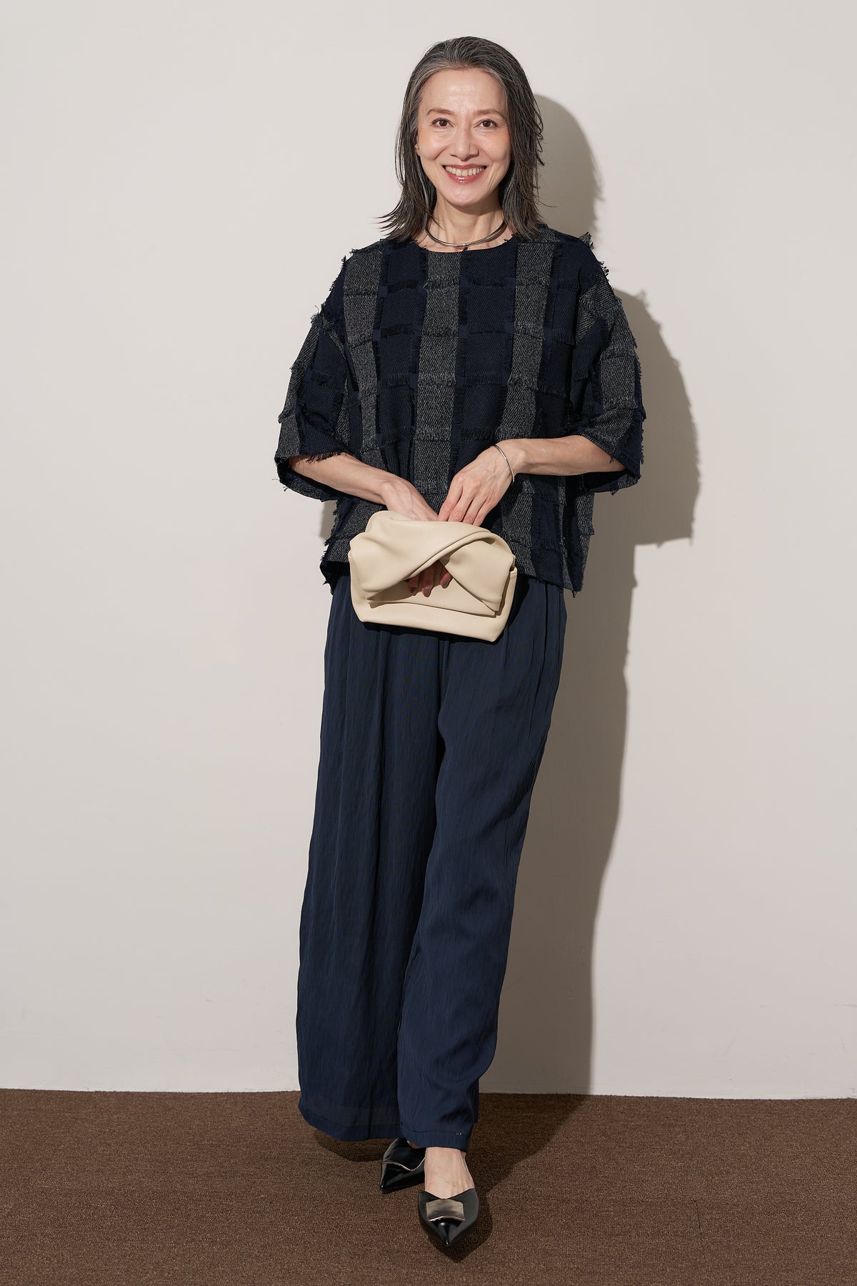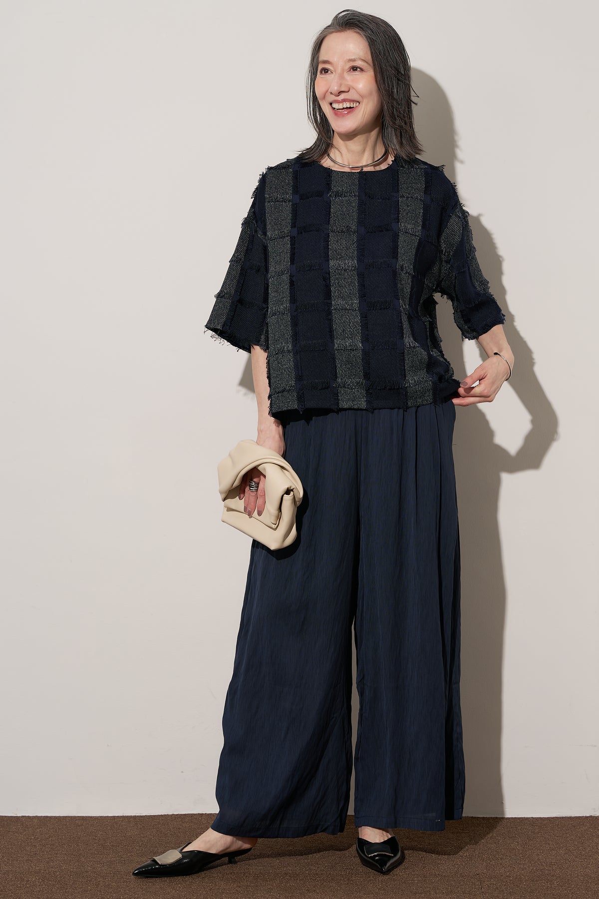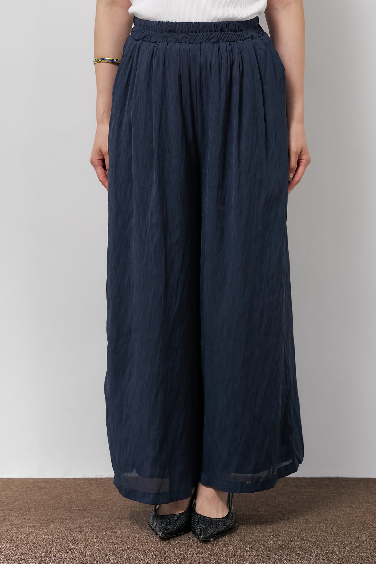 軽やかな穿き心地とシルエットの美しさを両立したギャザーリラックスパンツ。ウエストにたっぷりと入ったギャザーが自然な落ち感を生み、体型を選ばず快適に着用できます。ゆとりのあるストレートラインで脚をすっきりと見せつつ、リラックスした雰囲気を演出。Tシャツやブラウスをインしてもバランスが取りやすく、日常使いから旅行やリゾートシーンまで幅広く活躍します。