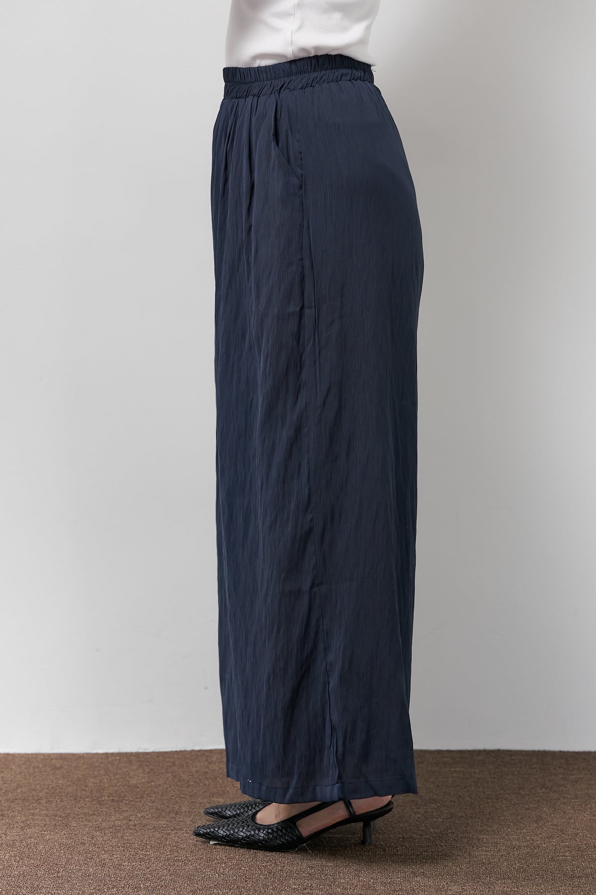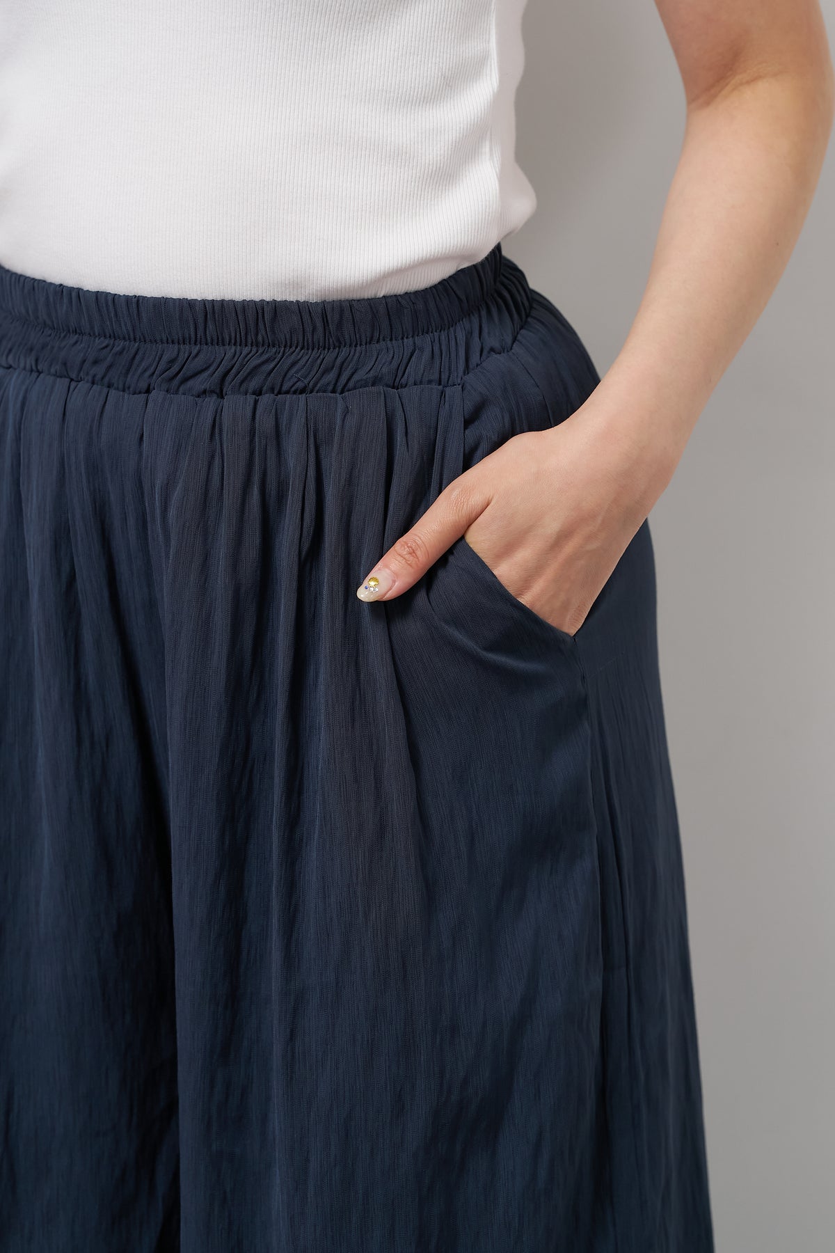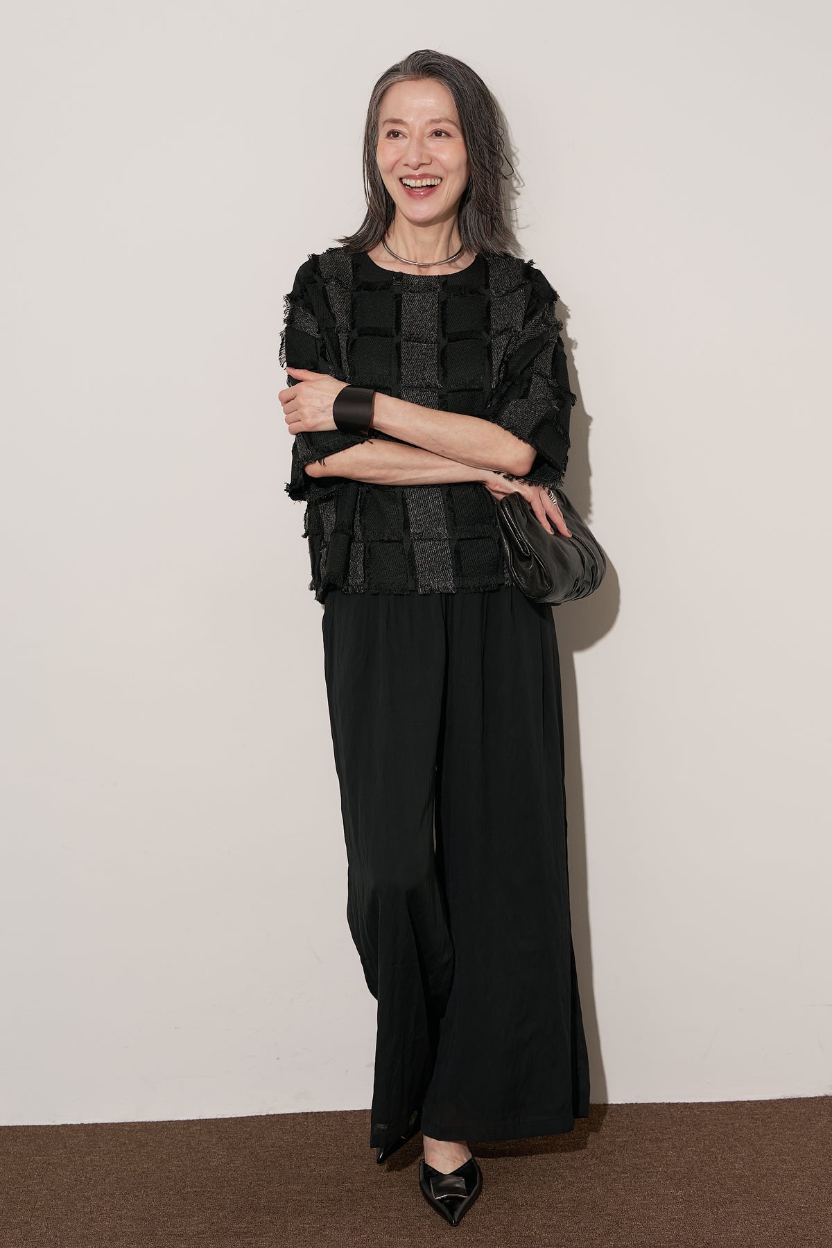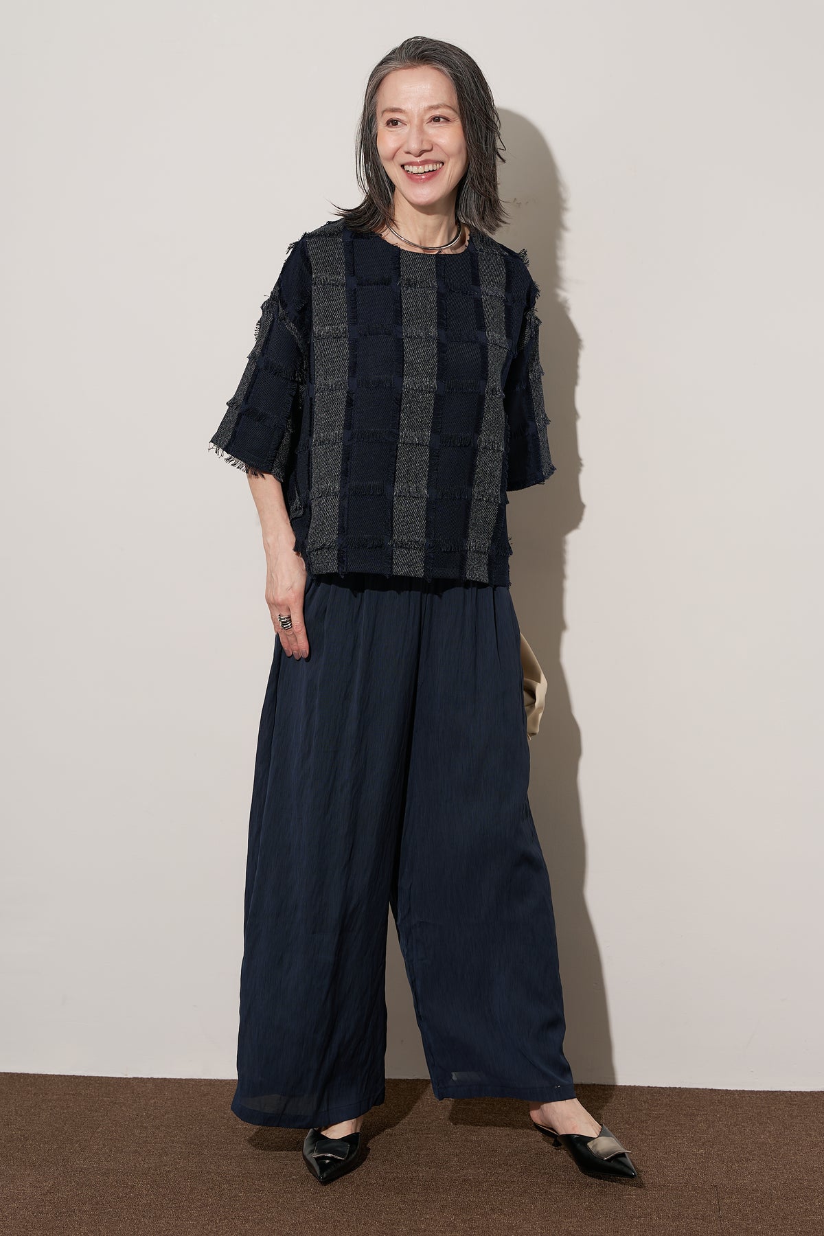軽やかな穿き心地とシルエットの美しさを両立したギャザーリラックスパンツ。ウエストにたっぷりと入ったギャザーが自然な落ち感を生み、体型を選ばず快適に着用できます。ゆとりのあるストレートラインで脚をすっきりと見せつつ、リラックスした雰囲気を演出。Tシャツやブラウスをインしてもバランスが取りやすく、日常使いから旅行やリゾートシーンまで幅広く活躍します。