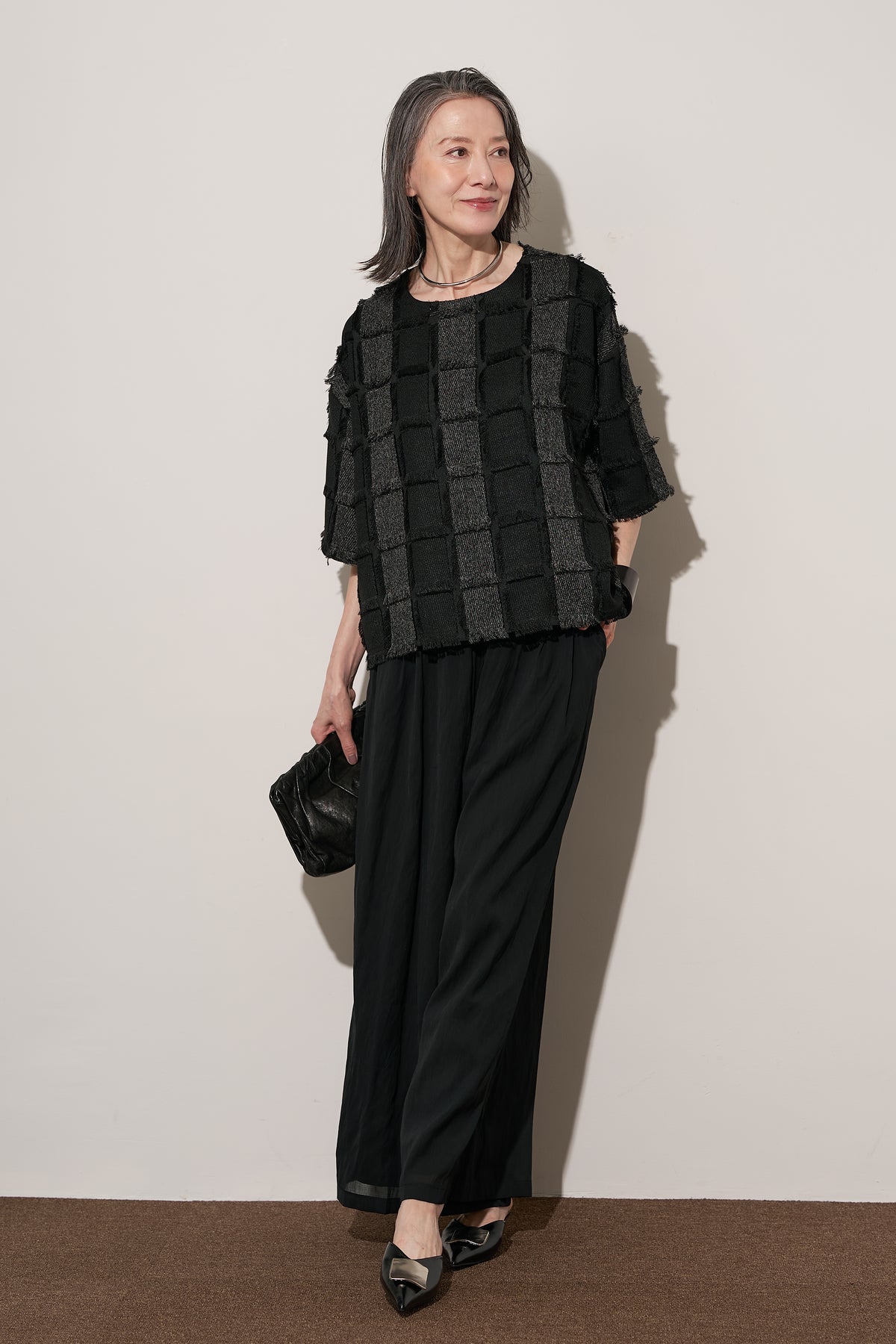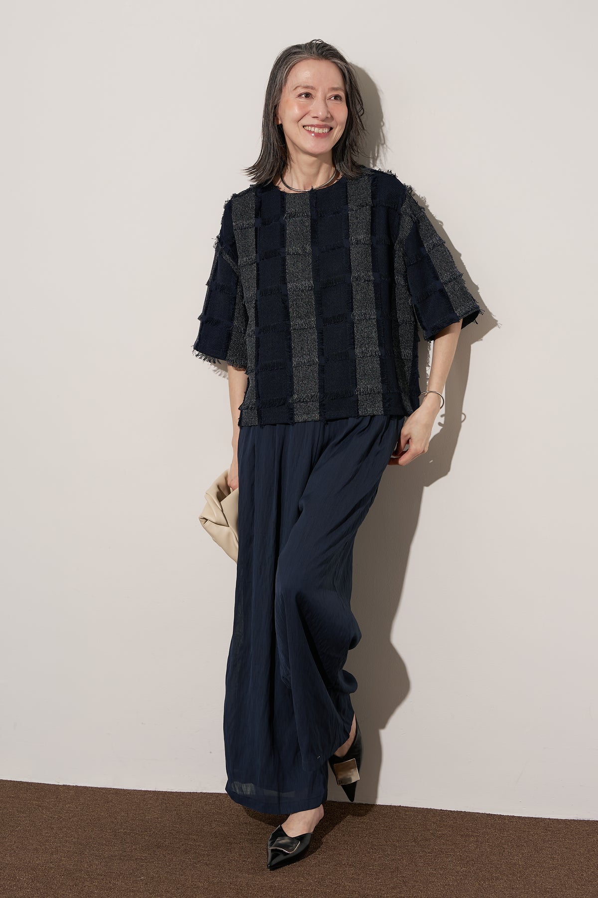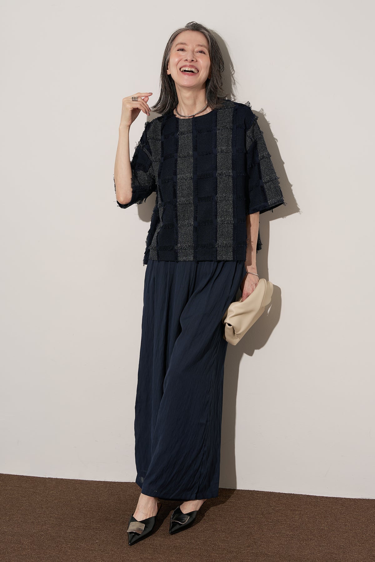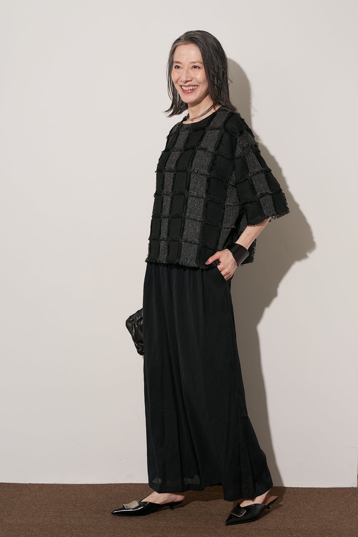 軽やかな穿き心地とシルエットの美しさを両立したギャザーリラックスパンツ。ウエストにたっぷりと入ったギャザーが自然な落ち感を生み、体型を選ばず快適に着用できます。ゆとりのあるストレートラインで脚をすっきりと見せつつ、リラックスした雰囲気を演出。Tシャツやブラウスをインしてもバランスが取りやすく、日常使いから旅行やリゾートシーンまで幅広く活躍します。