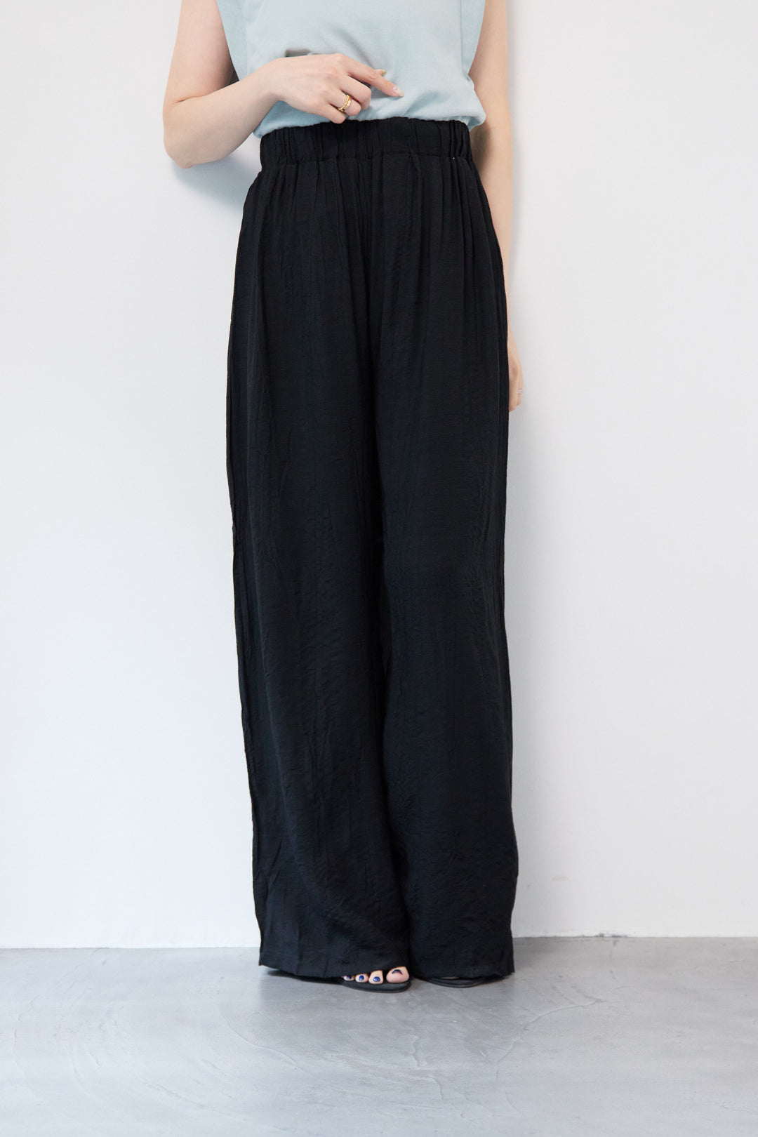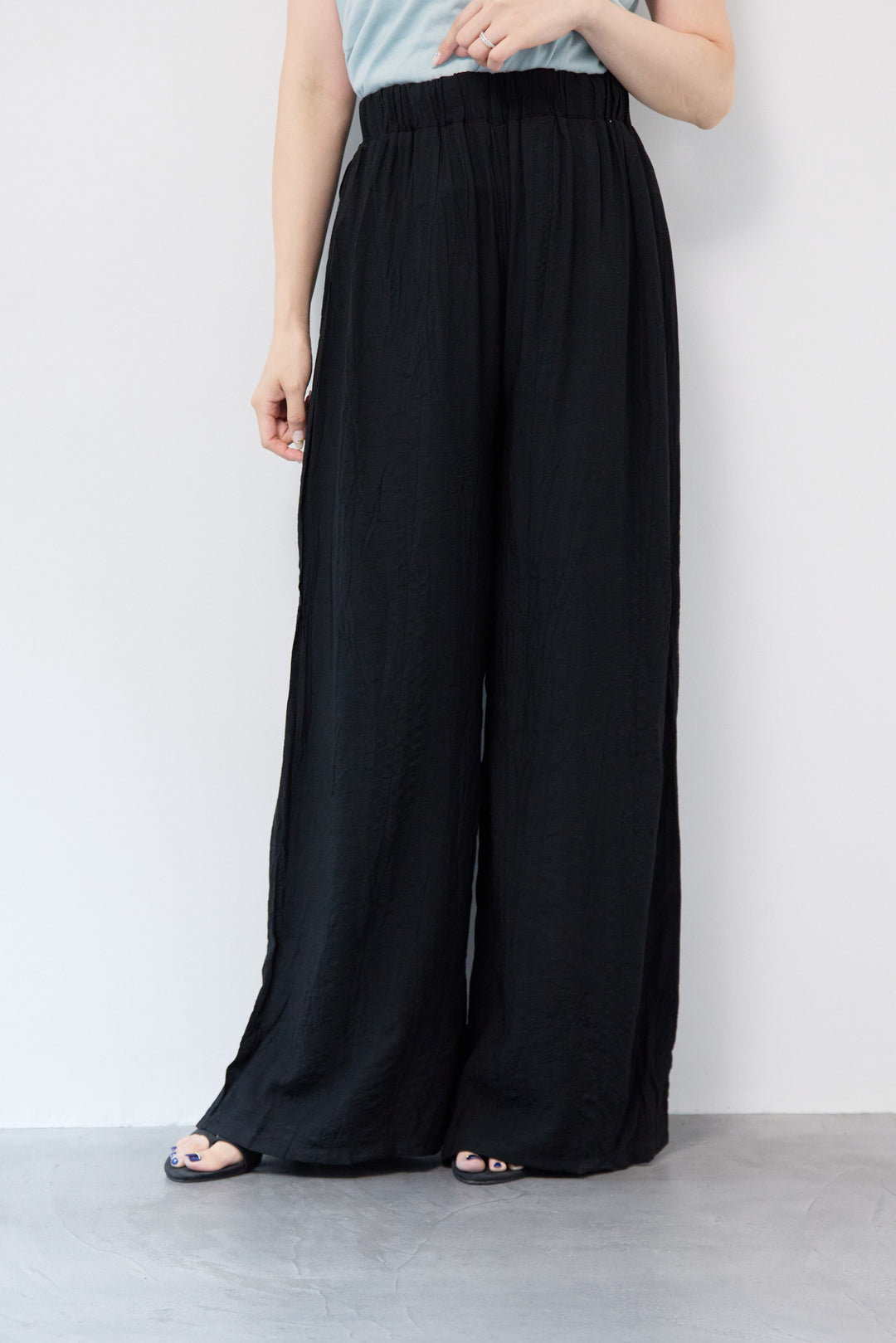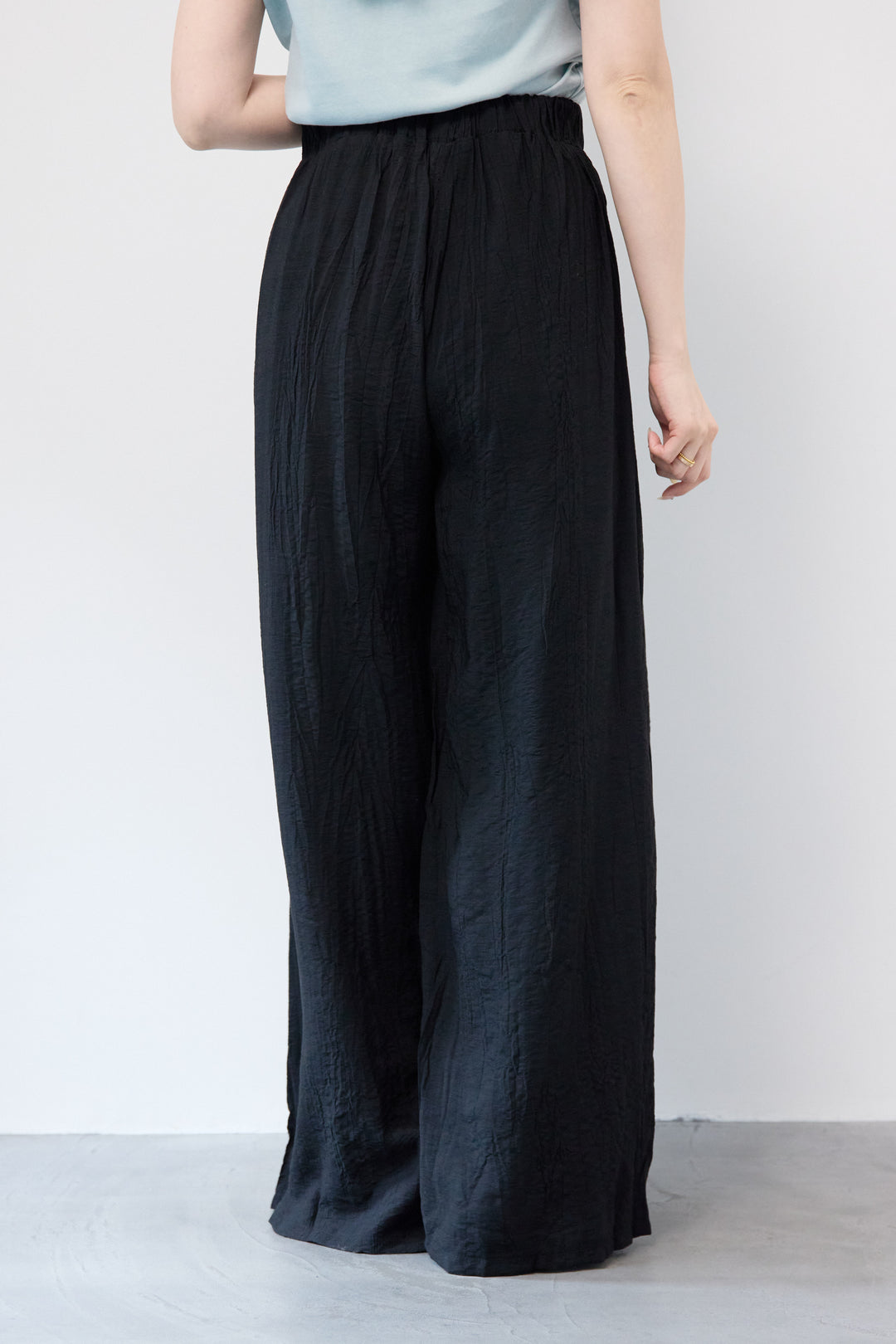 グラデーションの色合いが魅力のワッシャーパンツ。シワ感のある素材が動きにニュアンスを与え、抜け感のある大人のリラックススタイルを叶えます。ウエストはゴム仕様で、着心地も快適。シンプルなトップスを合わせるだけで、コーディネートにアクセントを加えてくれる一本です。