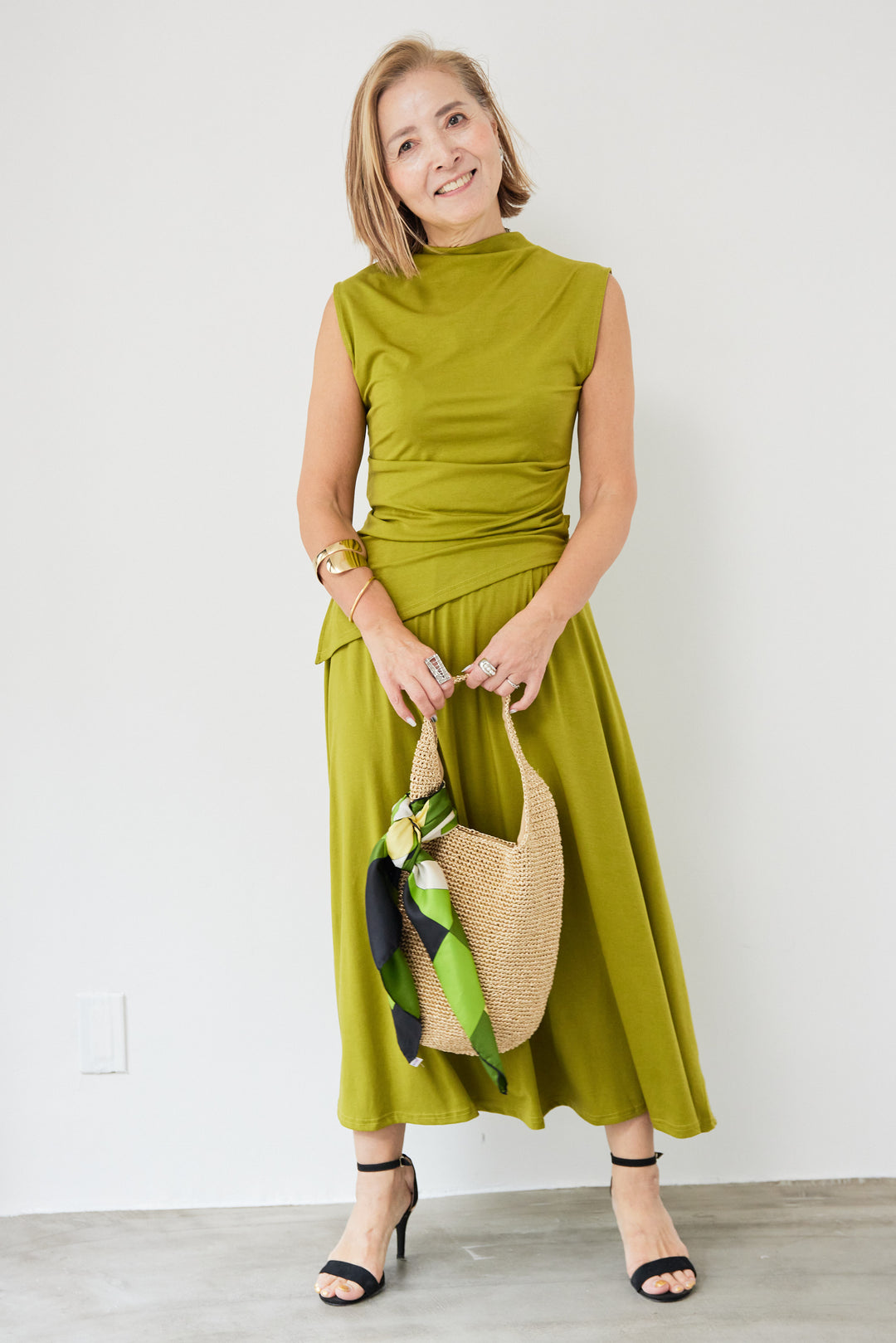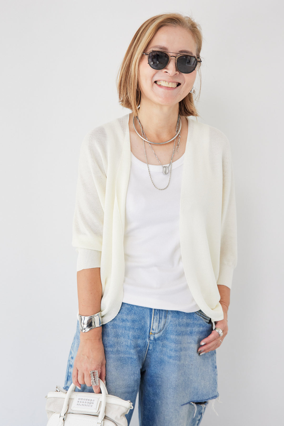 【ウール・ラクーン混】スカーフカラーミドルゲージニット