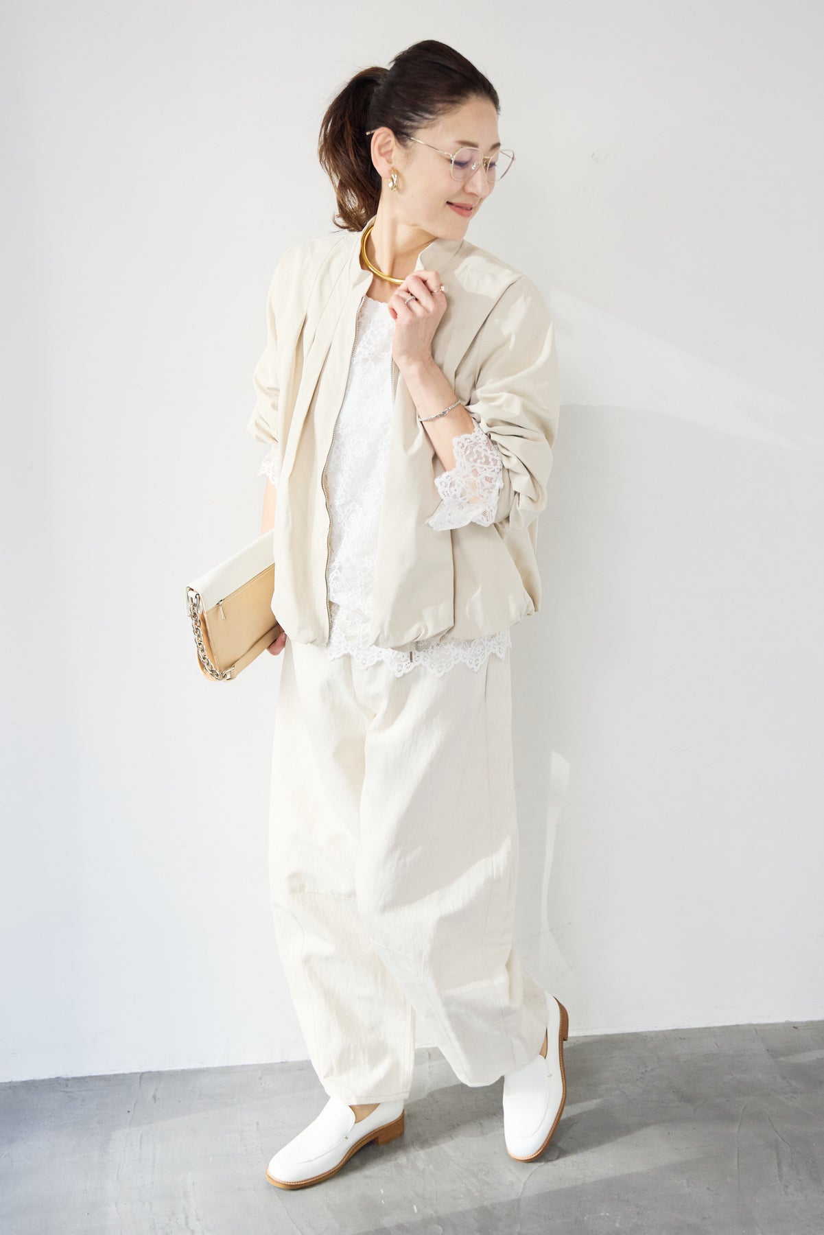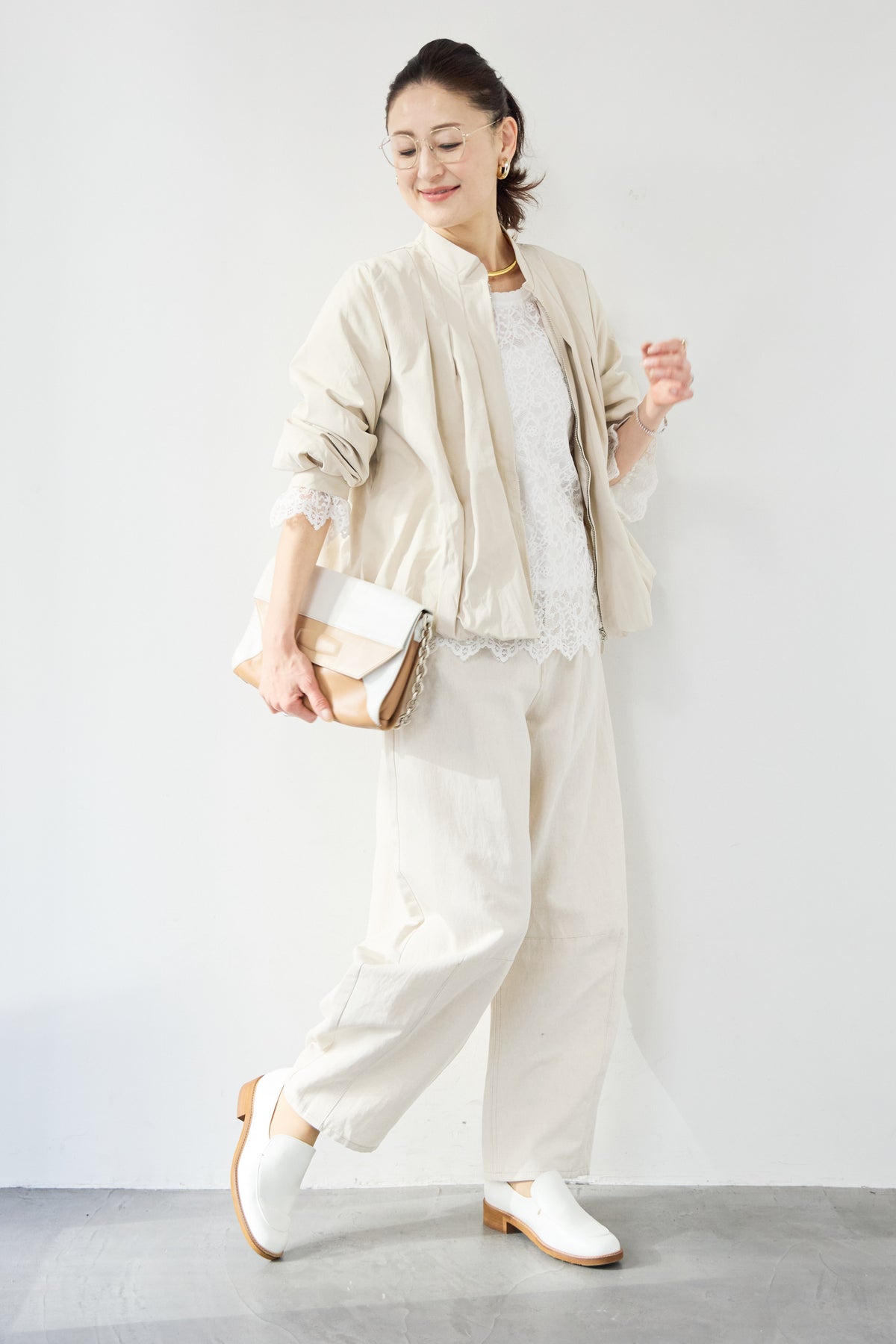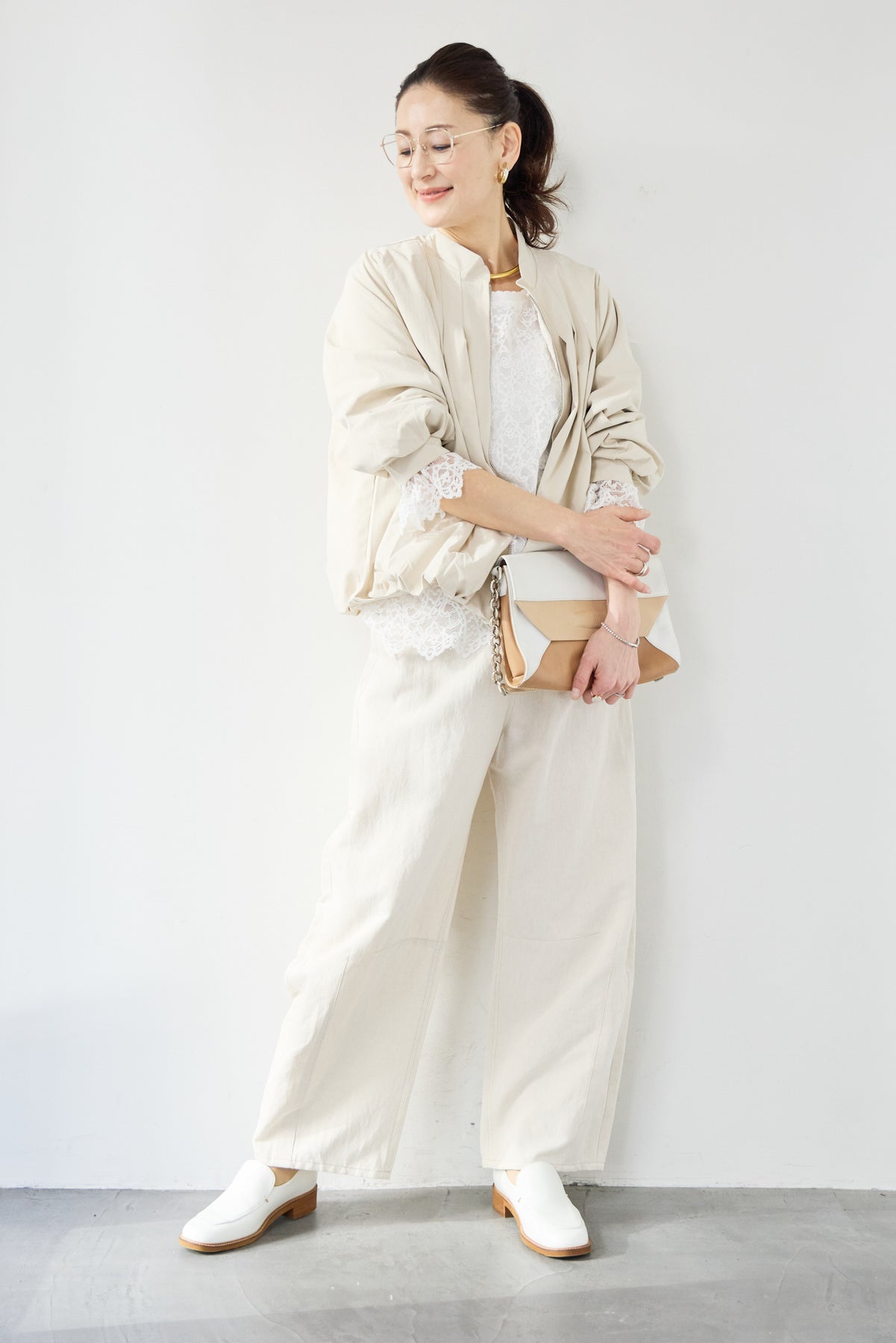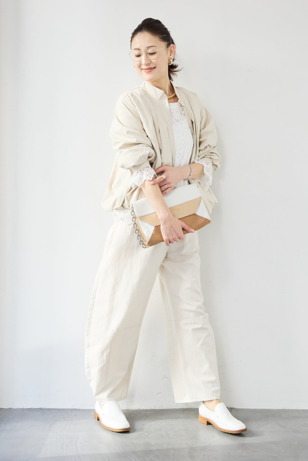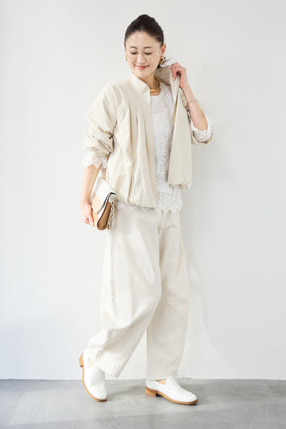 タックギャザーライトジャケット/リネンデニムカーブパンツ