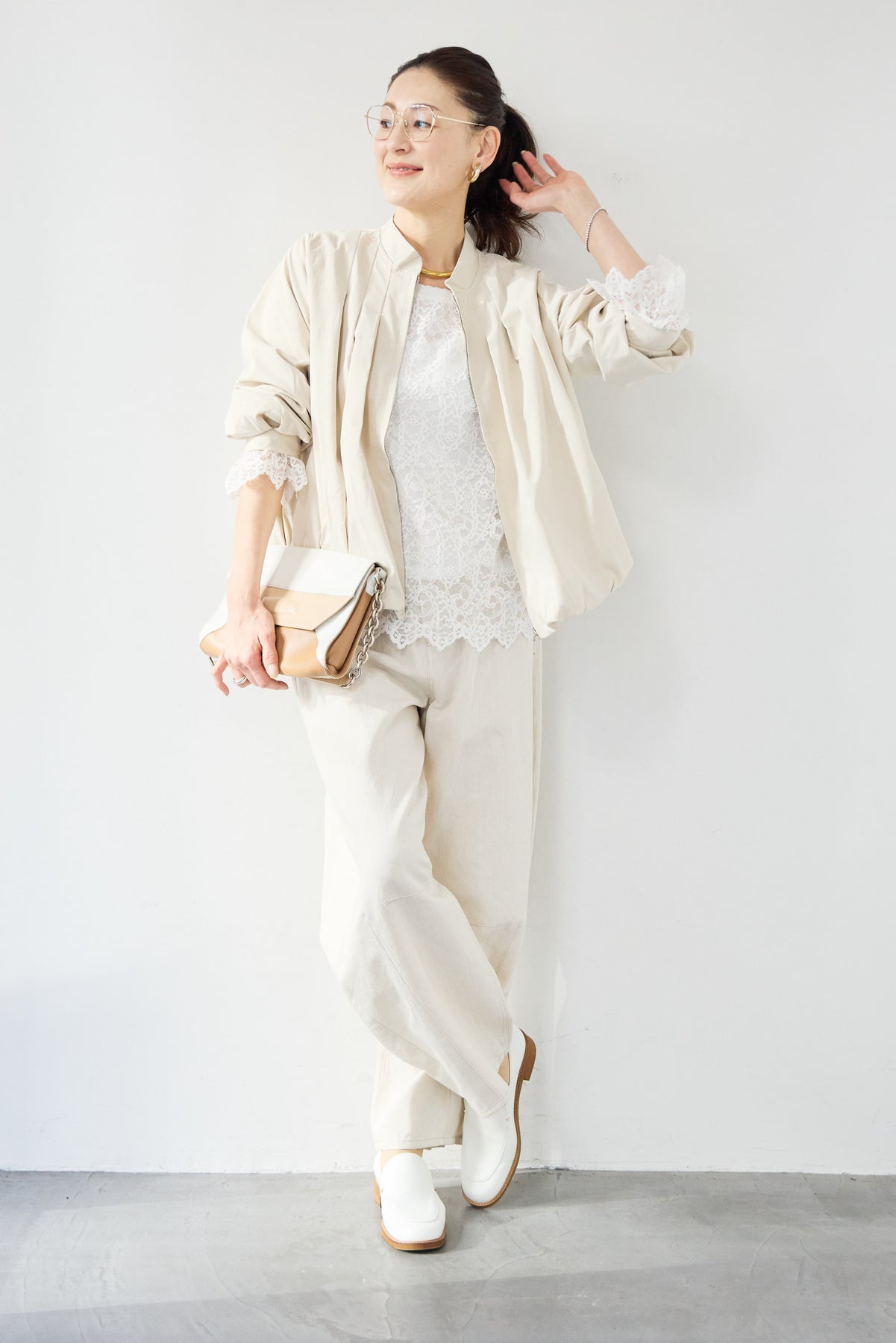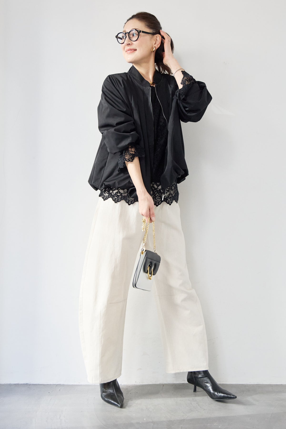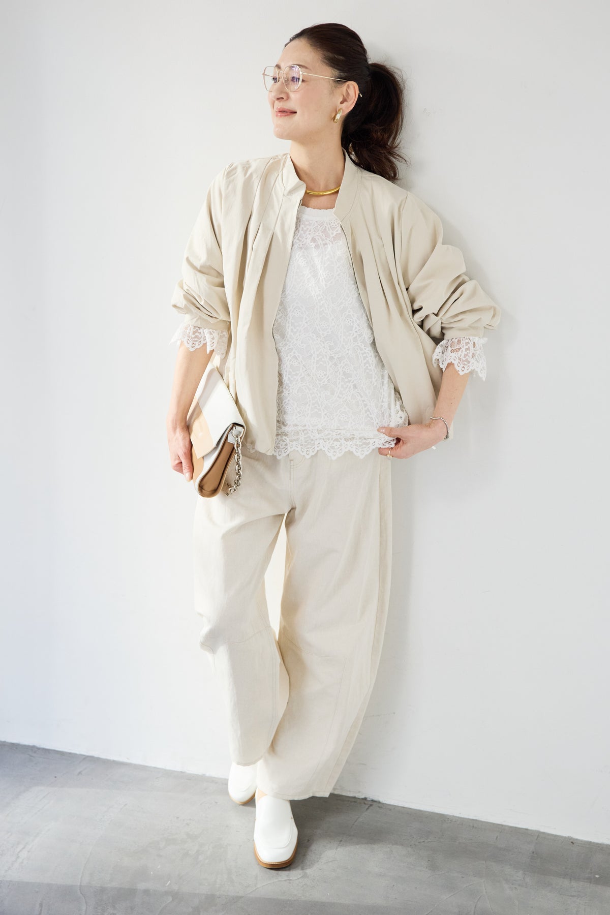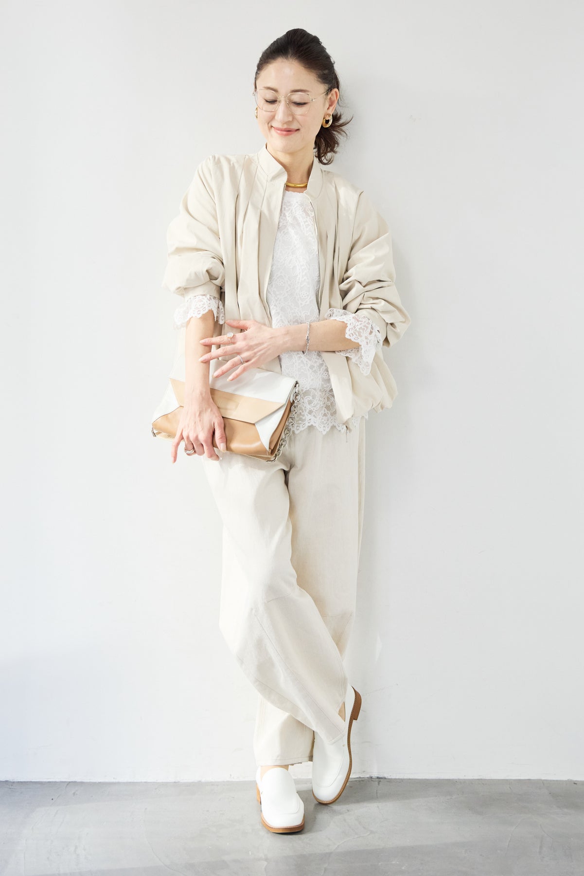 タックギャザーライトジャケット/リネンデニムカーブパンツ