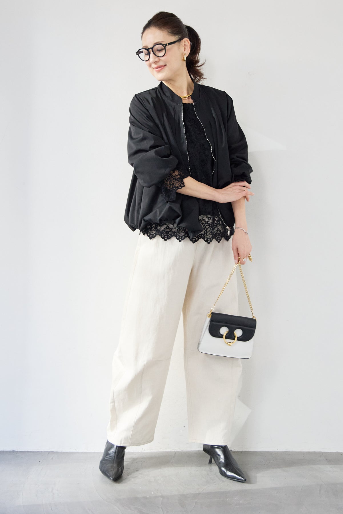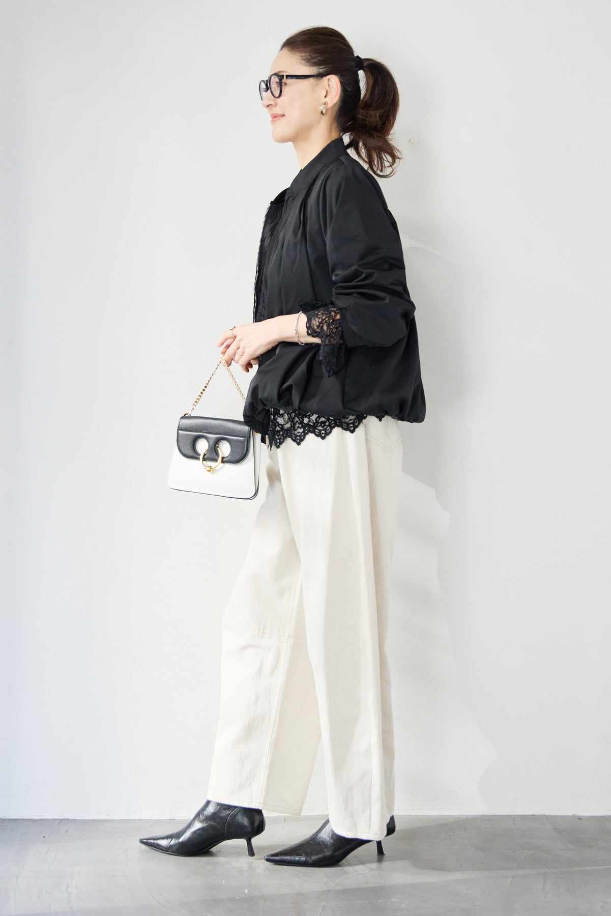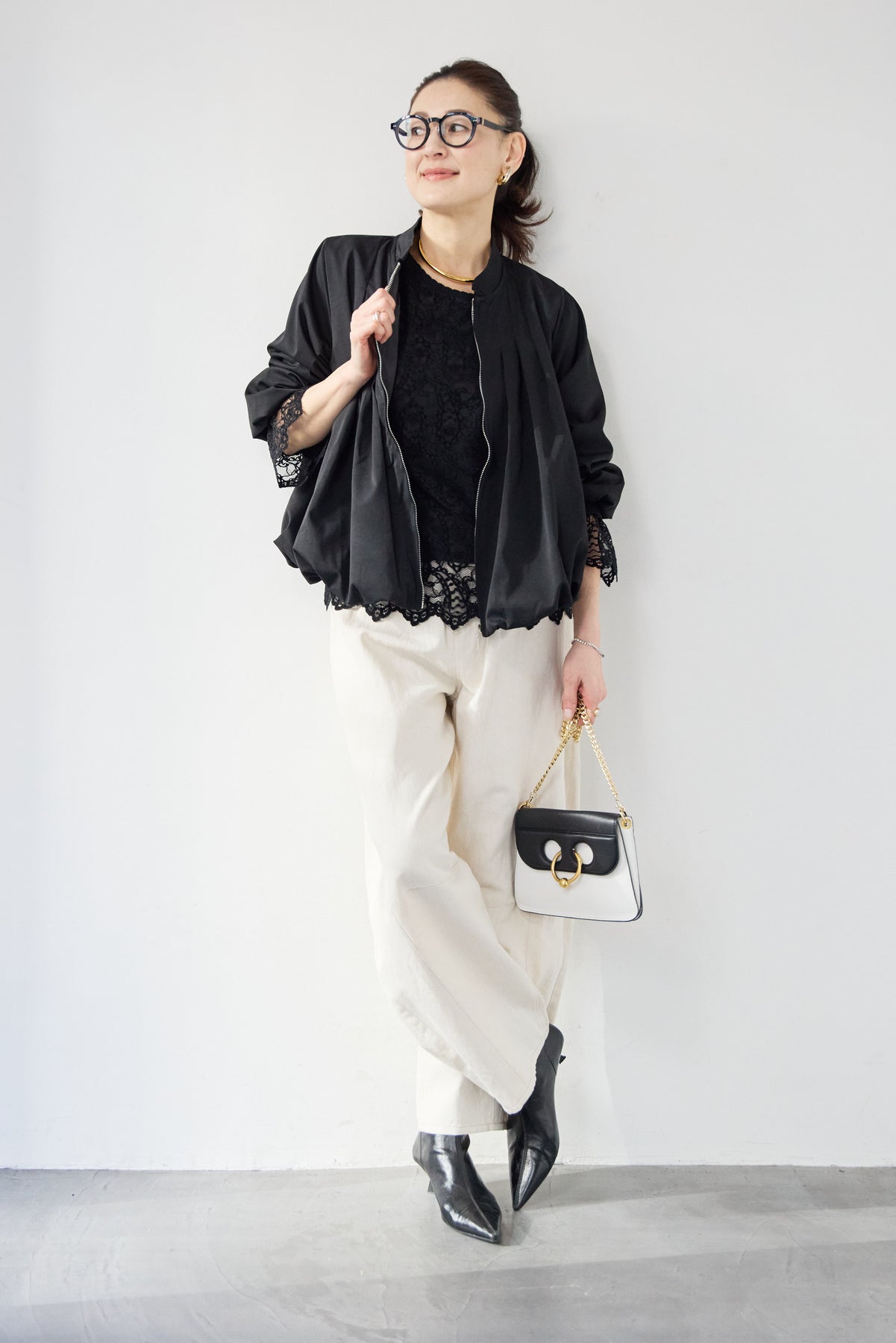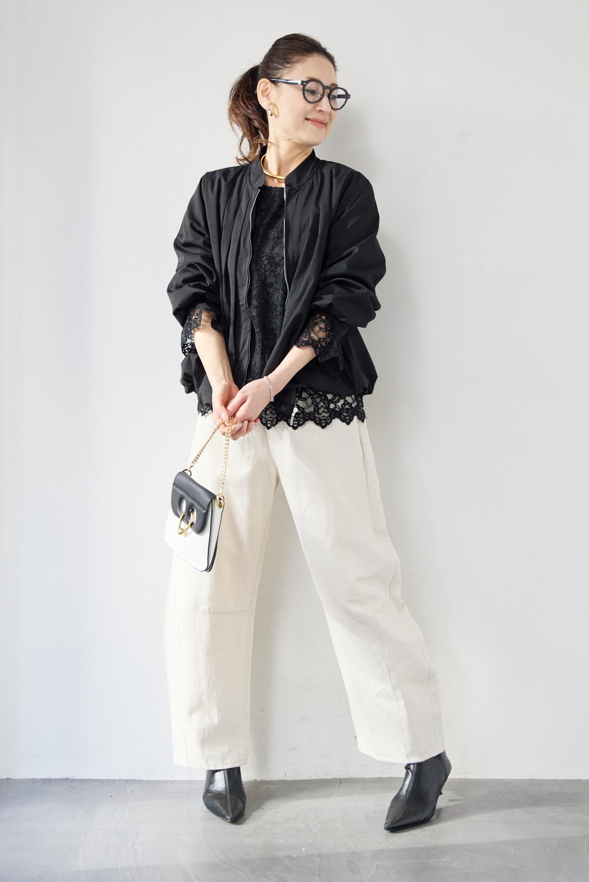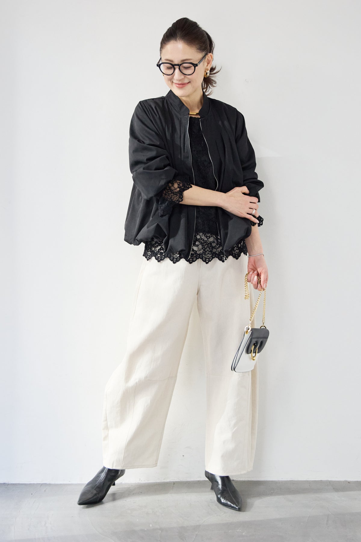 タックギャザーライトジャケット/リネンデニムカーブパンツ