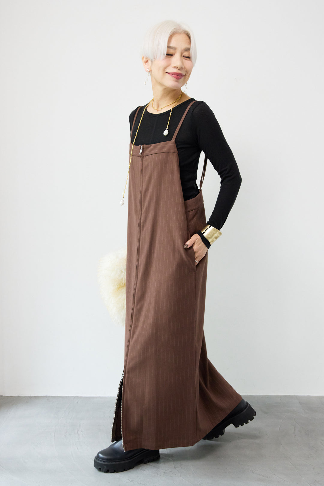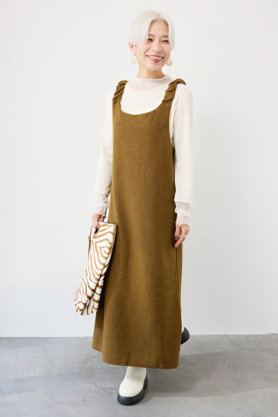 ギャザーショルダージャンパースカート