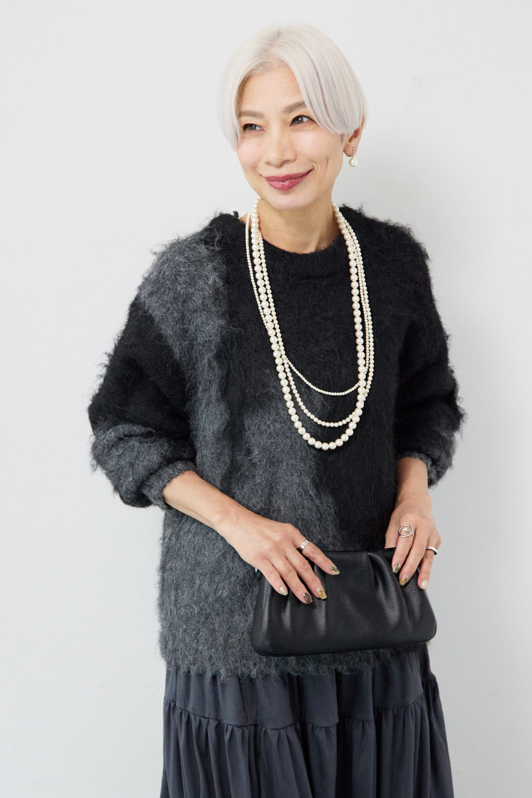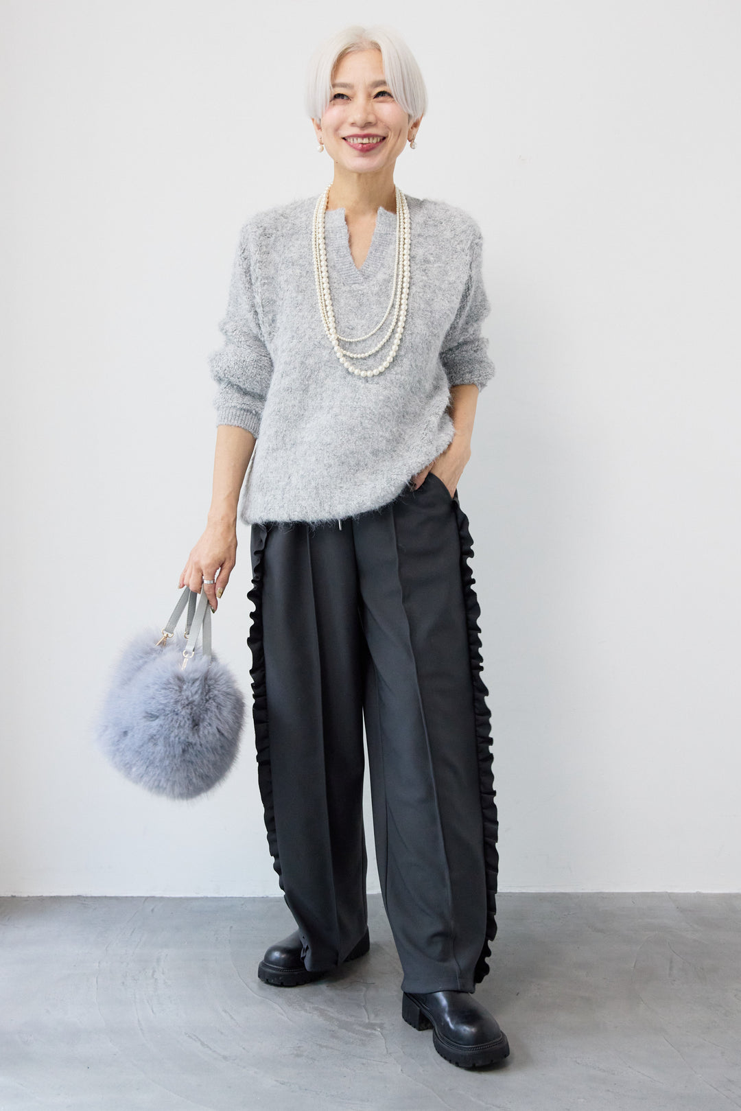 キーネックウールモヘヤニット
