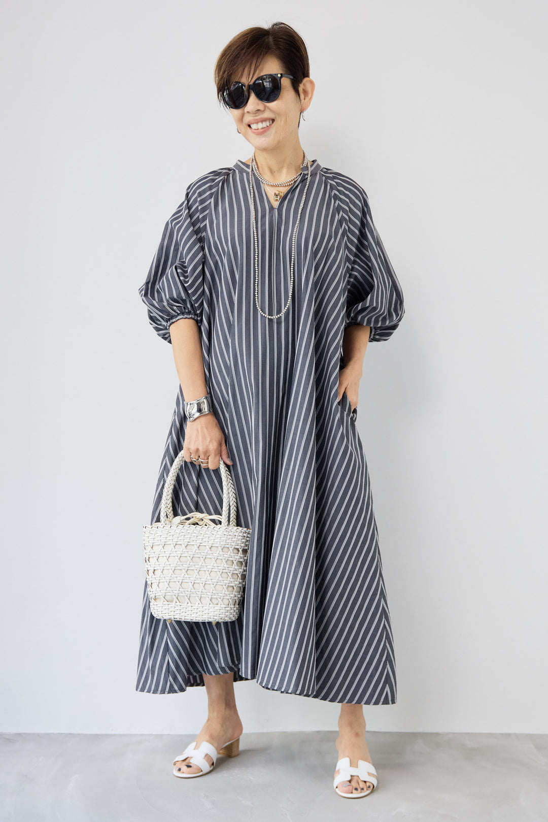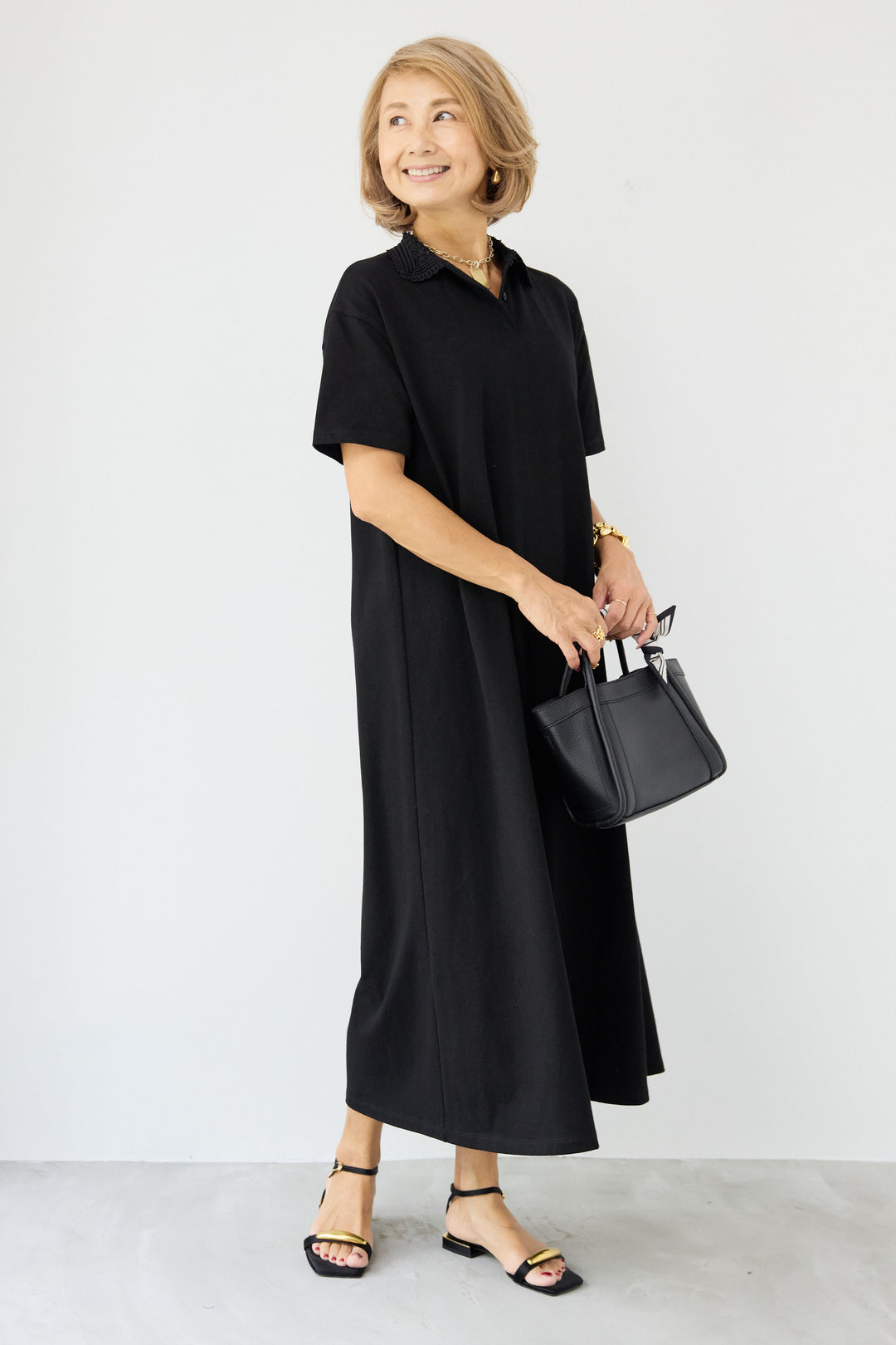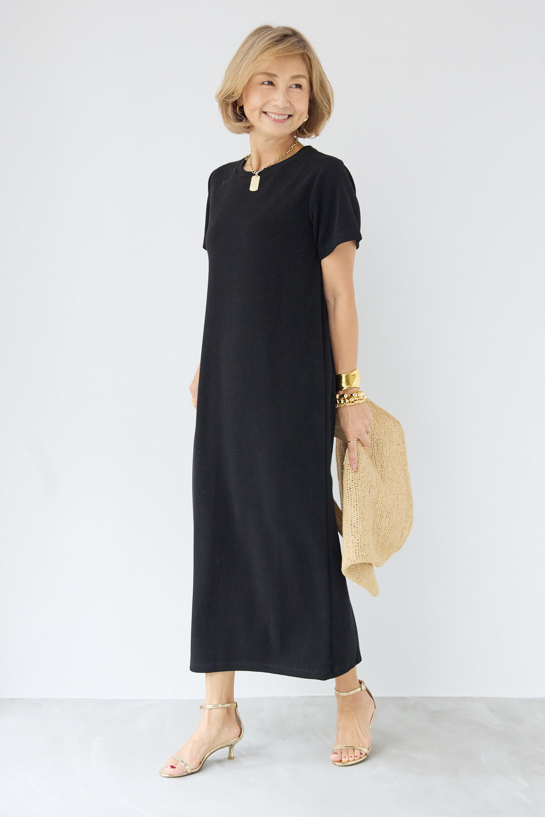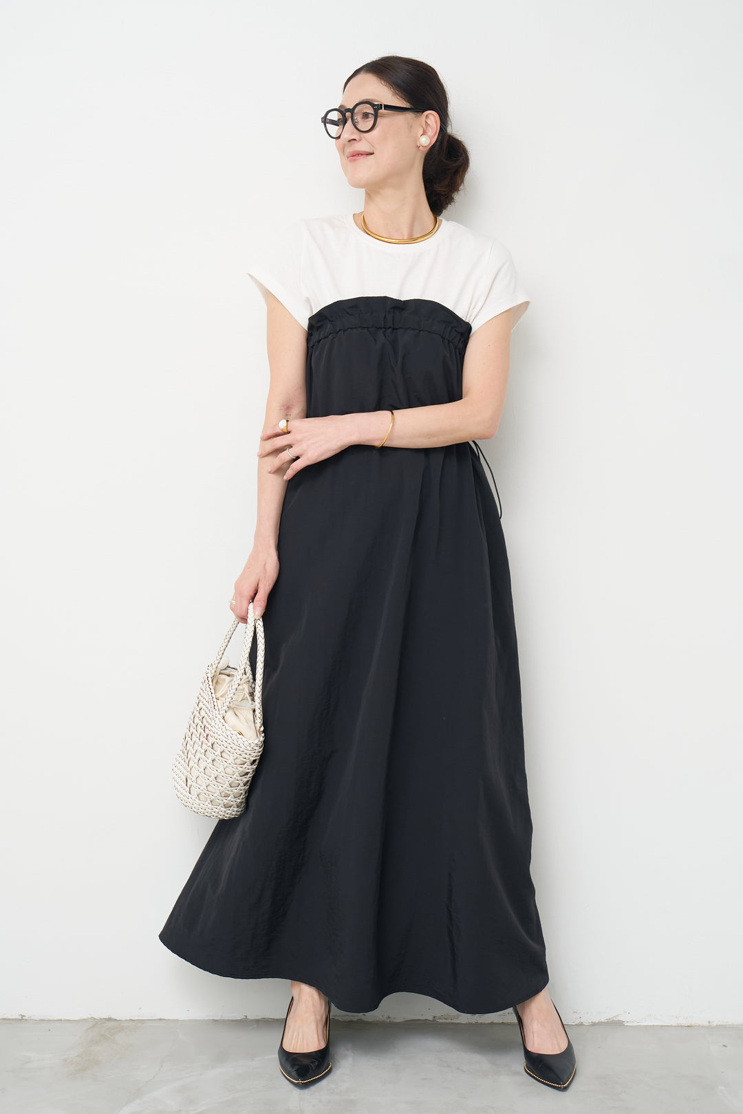 【防静電気】前後2WAY配色ラインやわもちニットワンピース