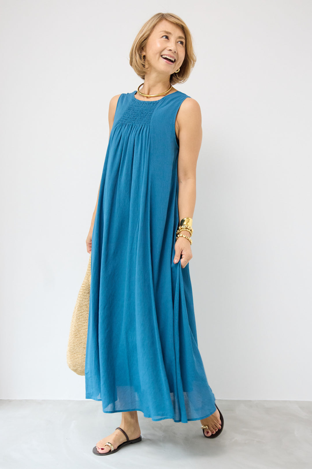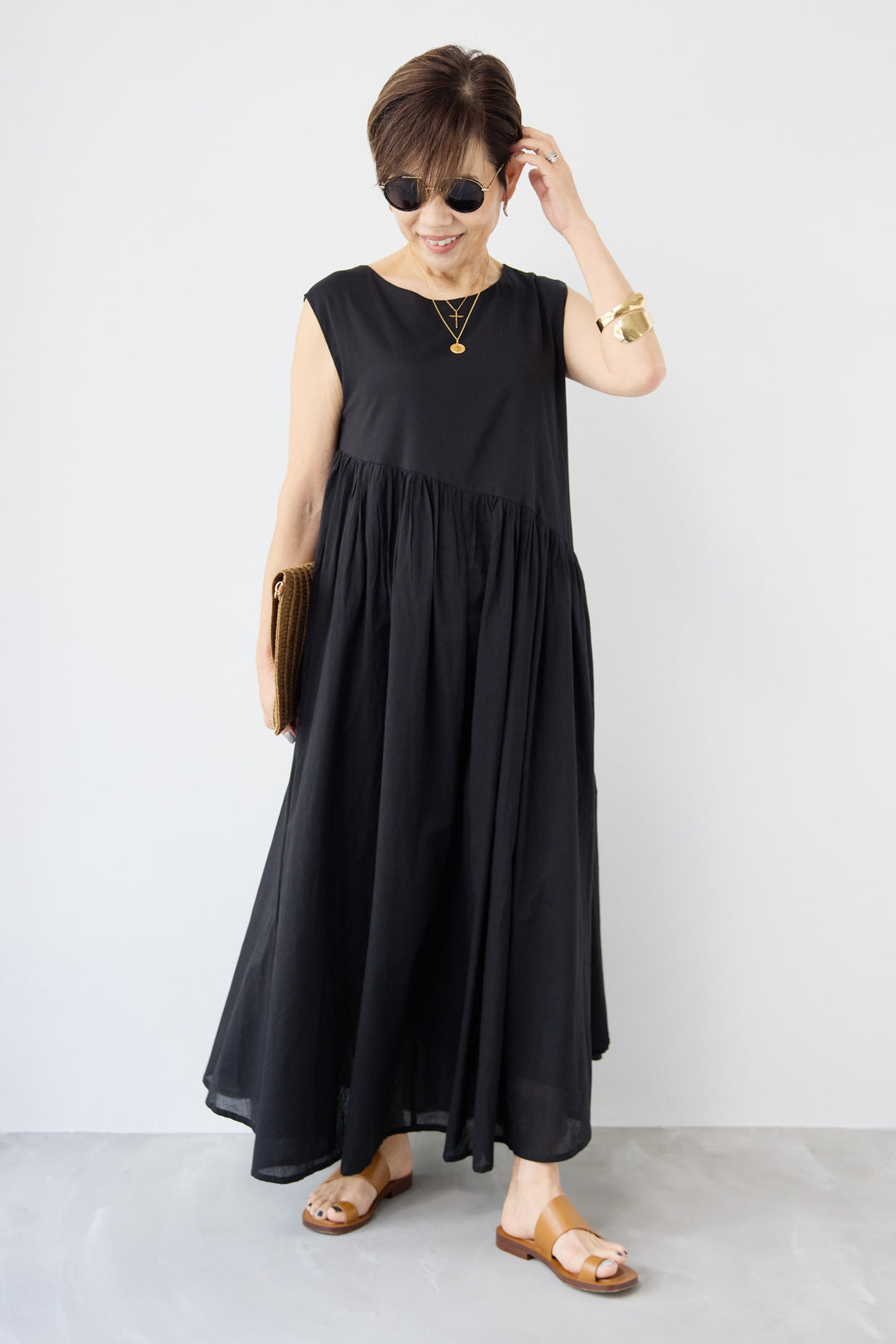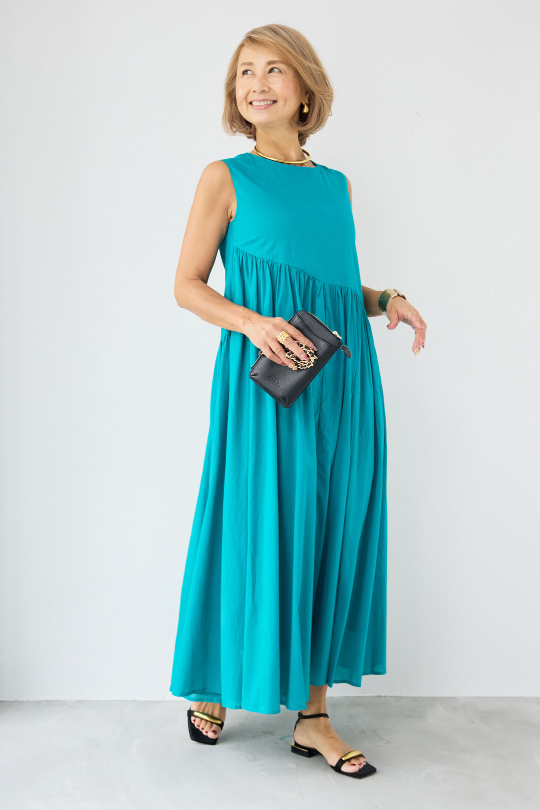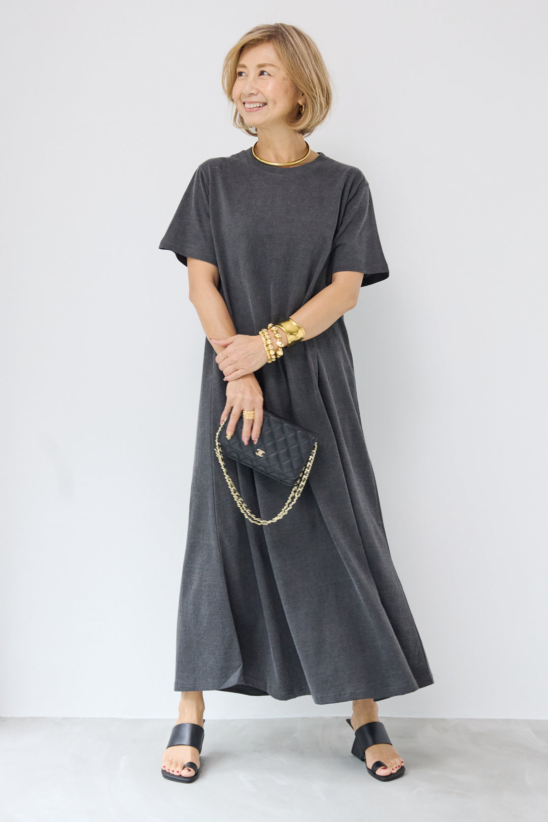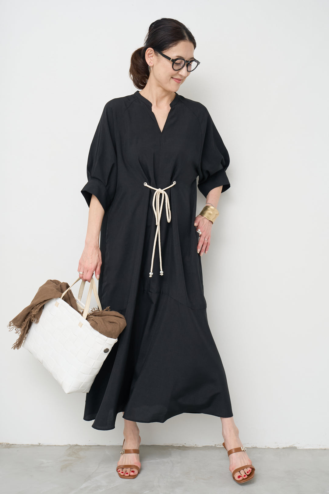【防静電気】前後2WAY配色ラインやわもちニットワンピース