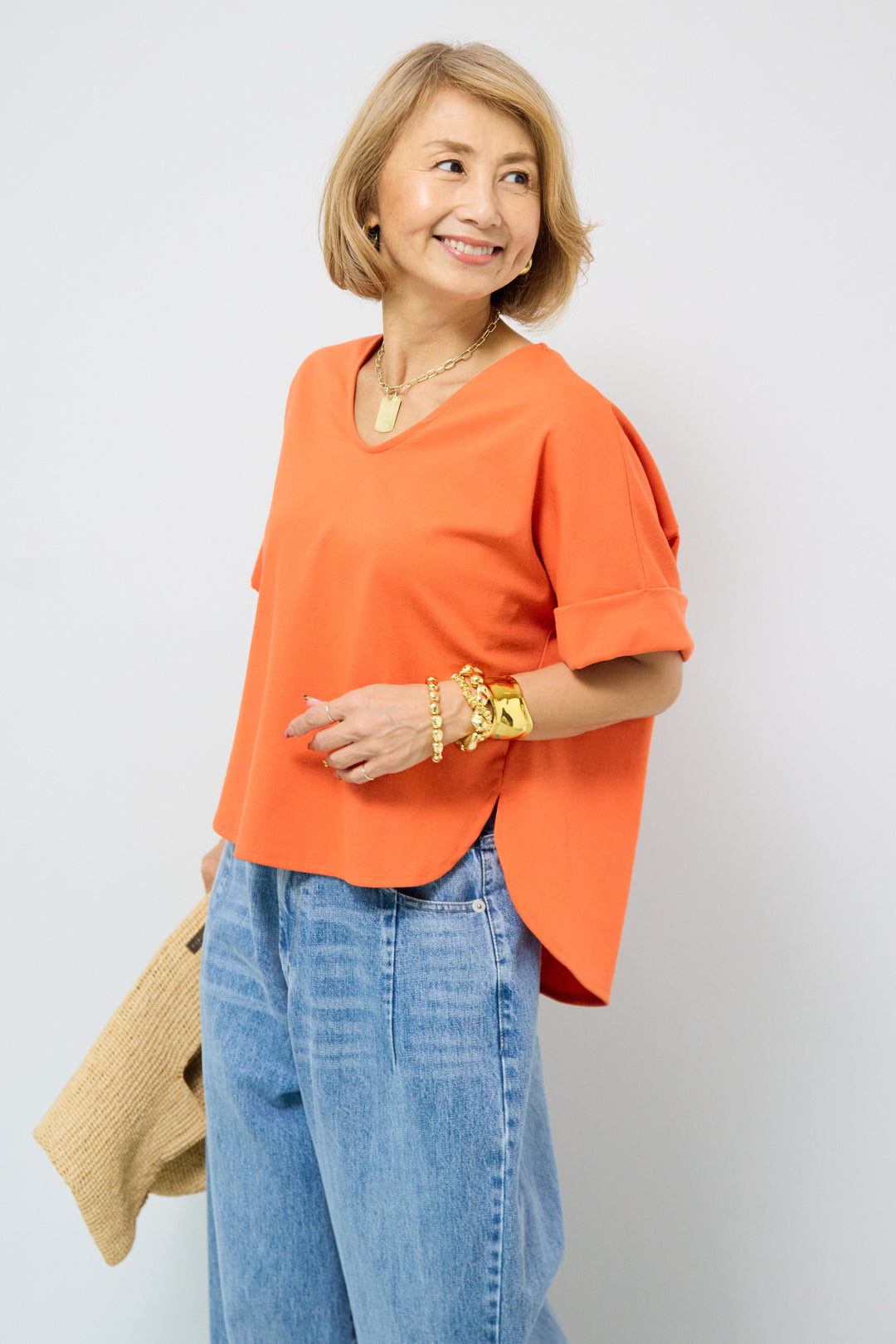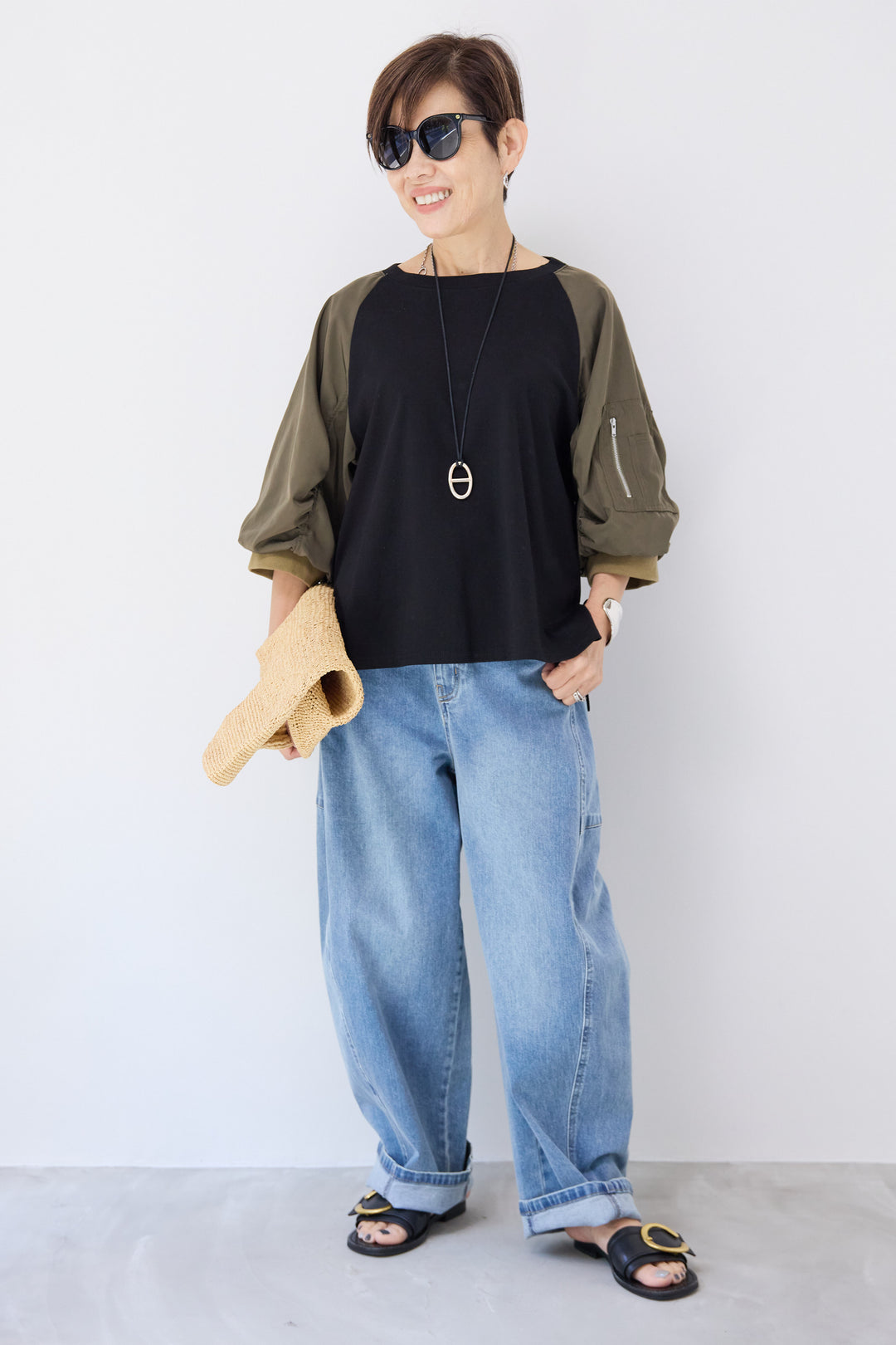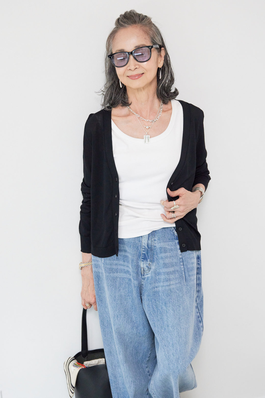 [SET]ウォッシャブルポンチョニット+カーブデニムパンツ(2set)