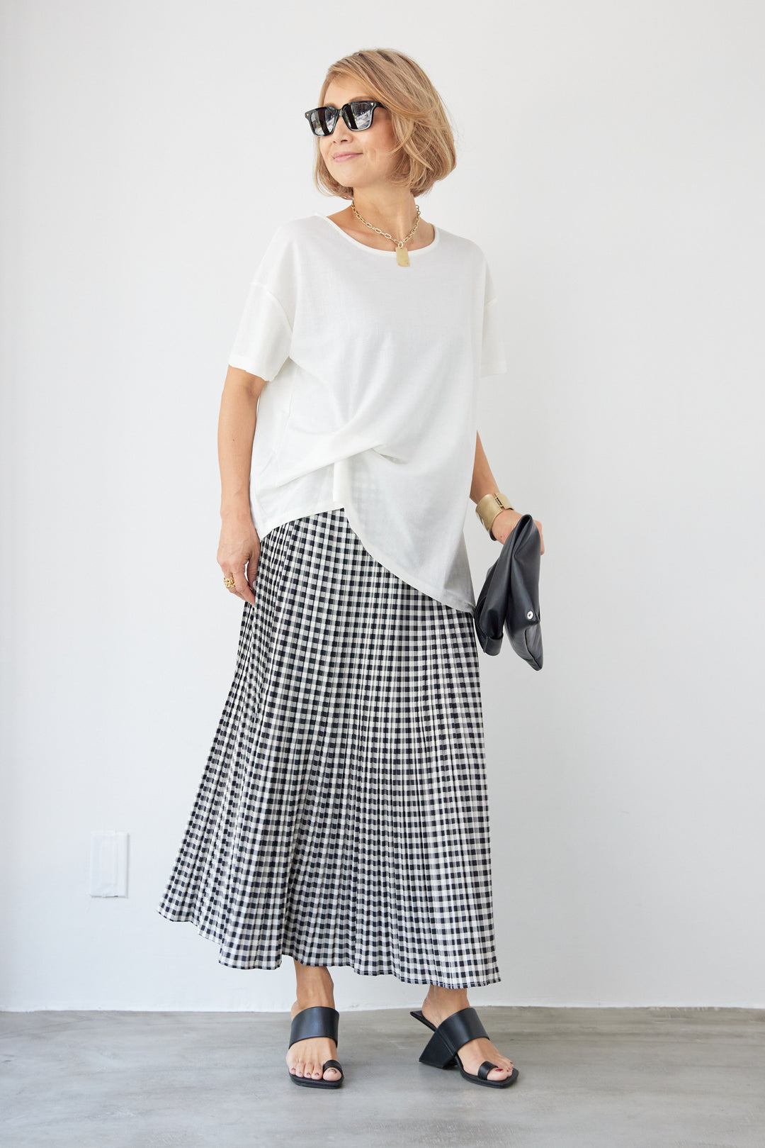 [SET]パールニット+ウエストゴムプリーツスカート(2set)