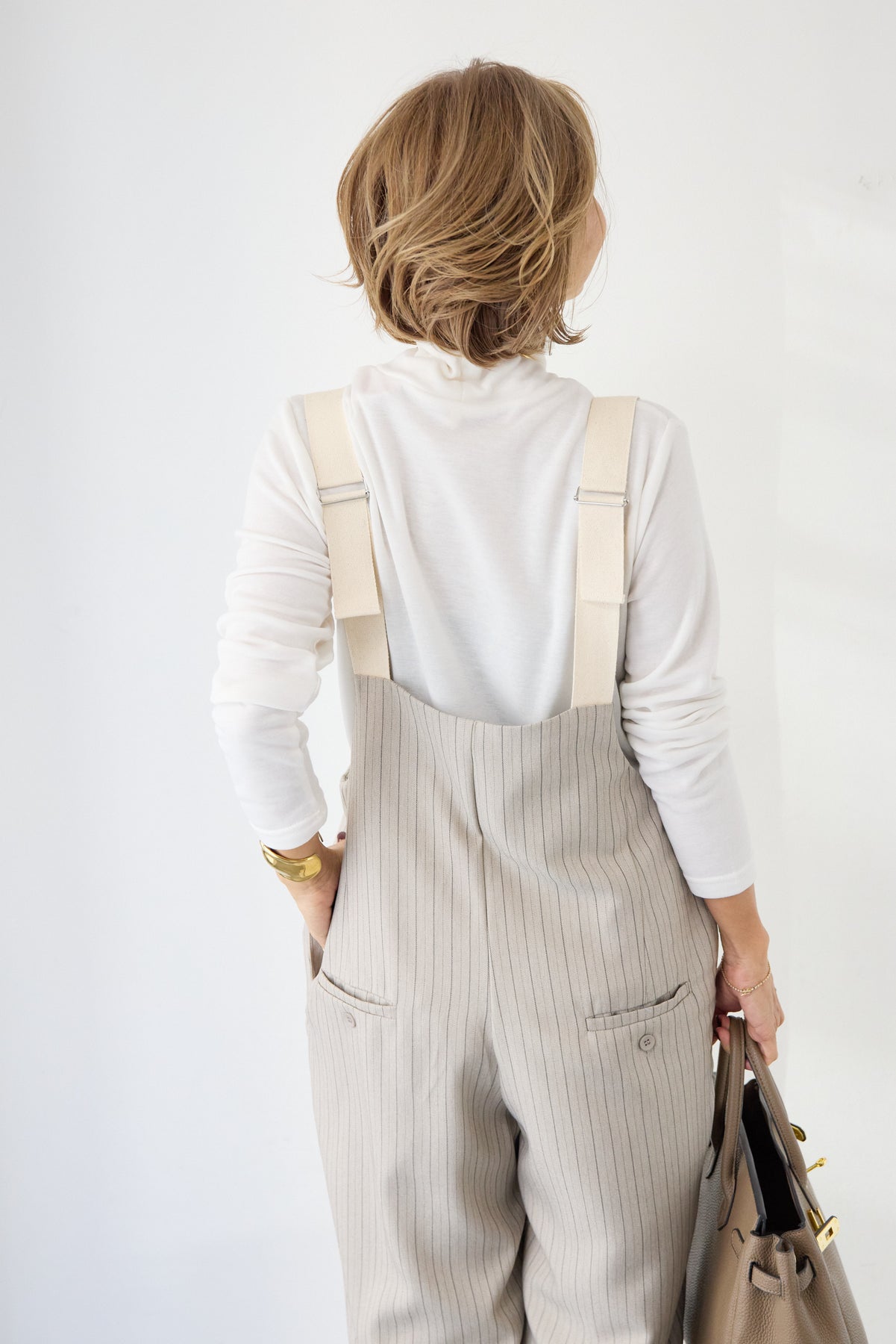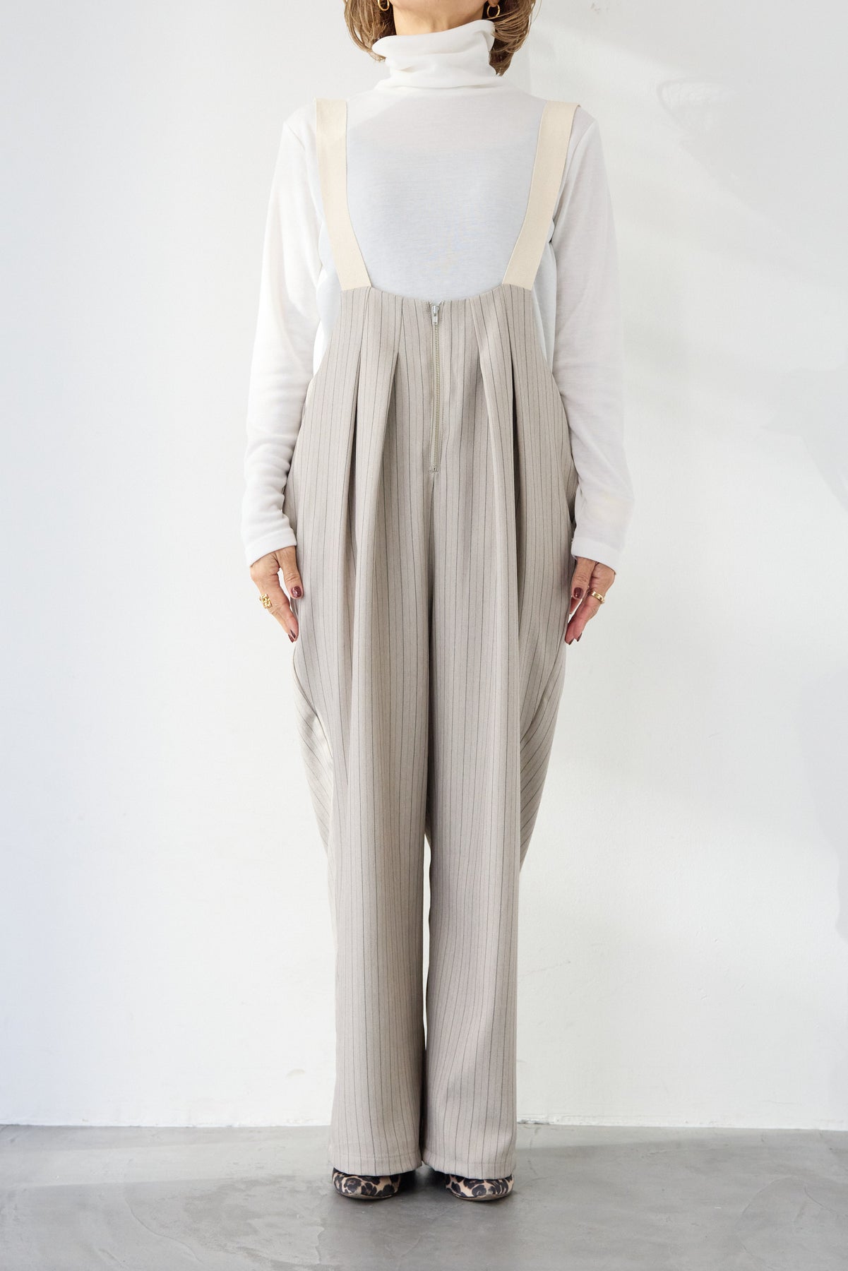 ストライプツータックサロペット
