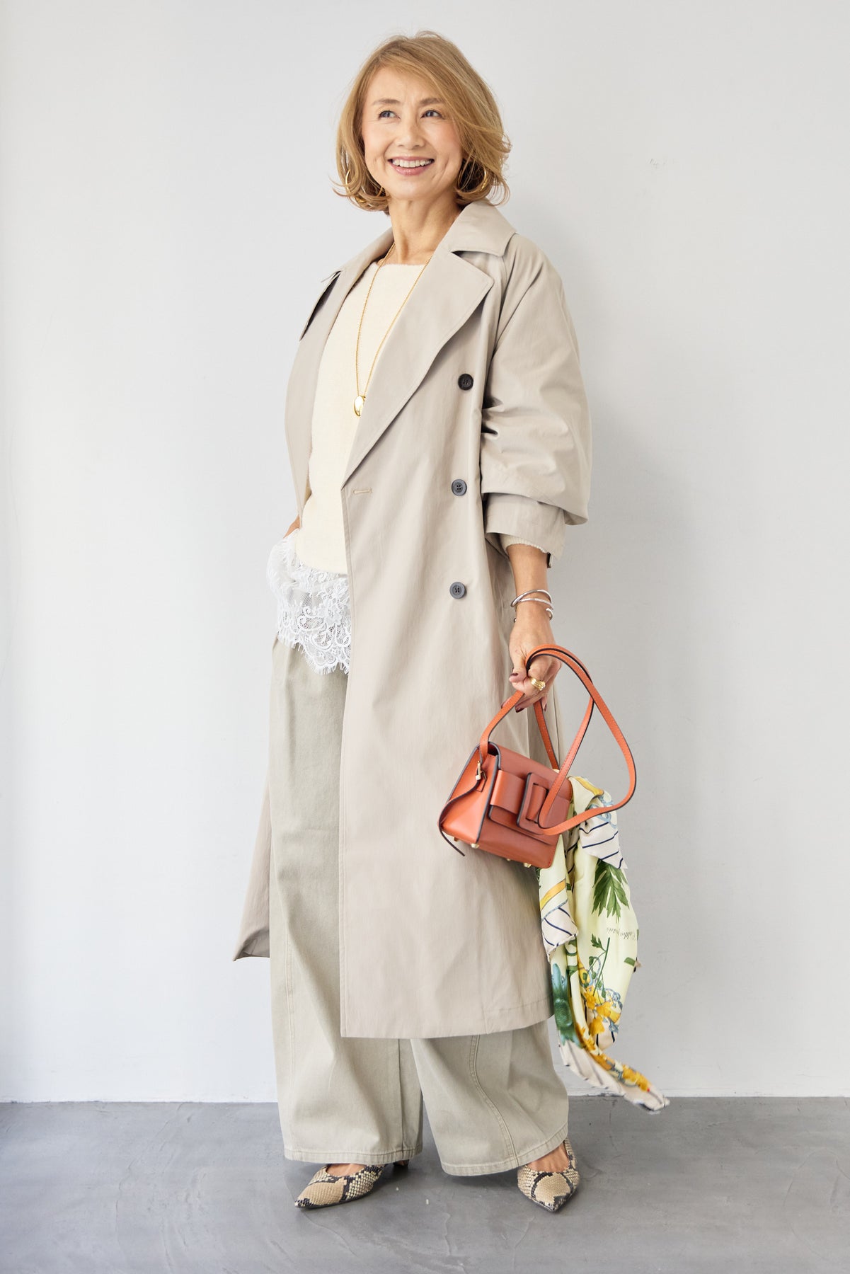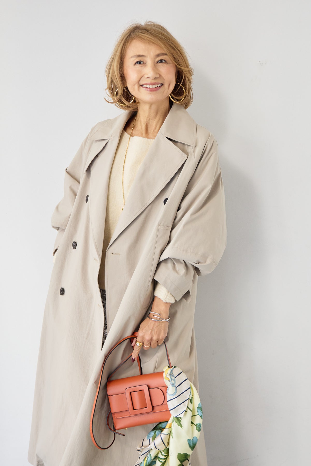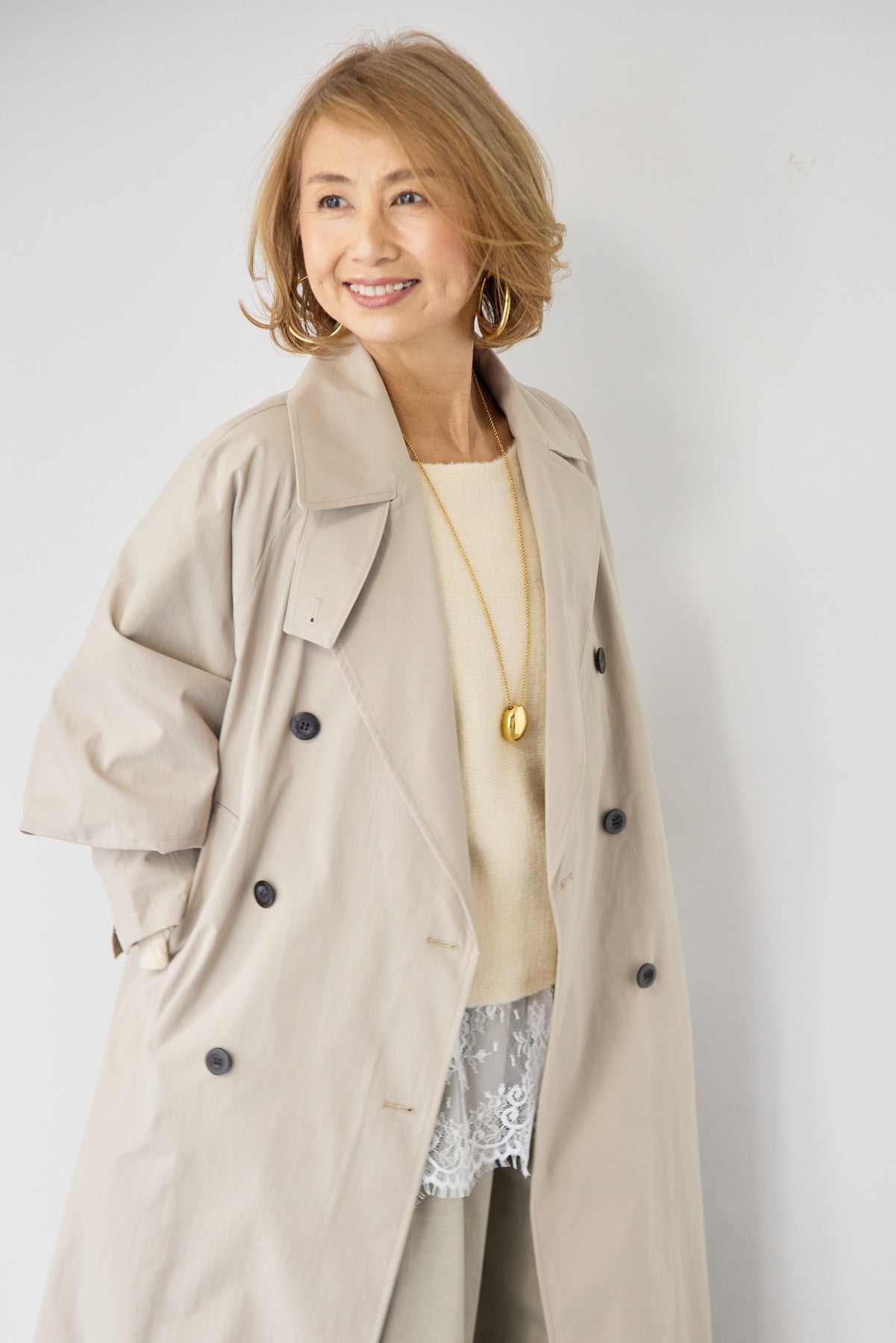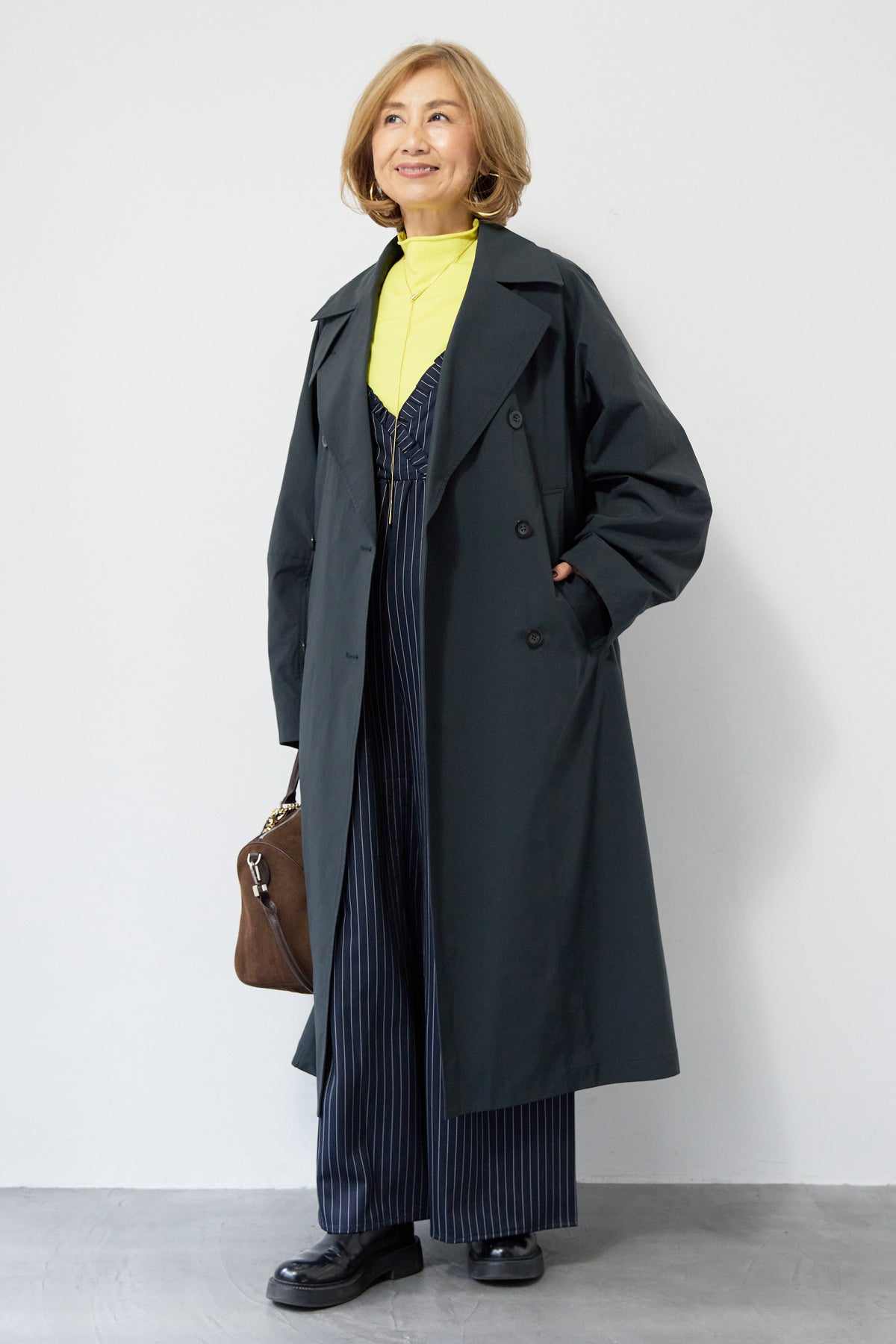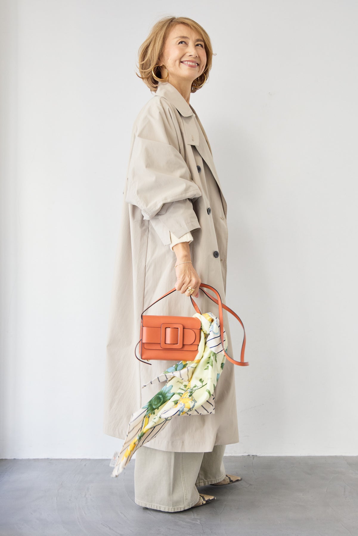端正なフロントに対し、背面の立体的な切り替えが洗練された個性を放つ一着。大人の品格を保ちつつ、後ろ姿でさりげない遊び心を演出します。 身体を包むビッグシルエットとハリのある素材が、体型を自然にカバー。襟を立てれば都会的なスタンドカラー、袖口のゆとりで厚手のインナーもすっきりと着こなせます。 日常から少し背筋を伸ばしたい日まで、大人の日常に寄り添い、春の装いを軽やかに彩ります。