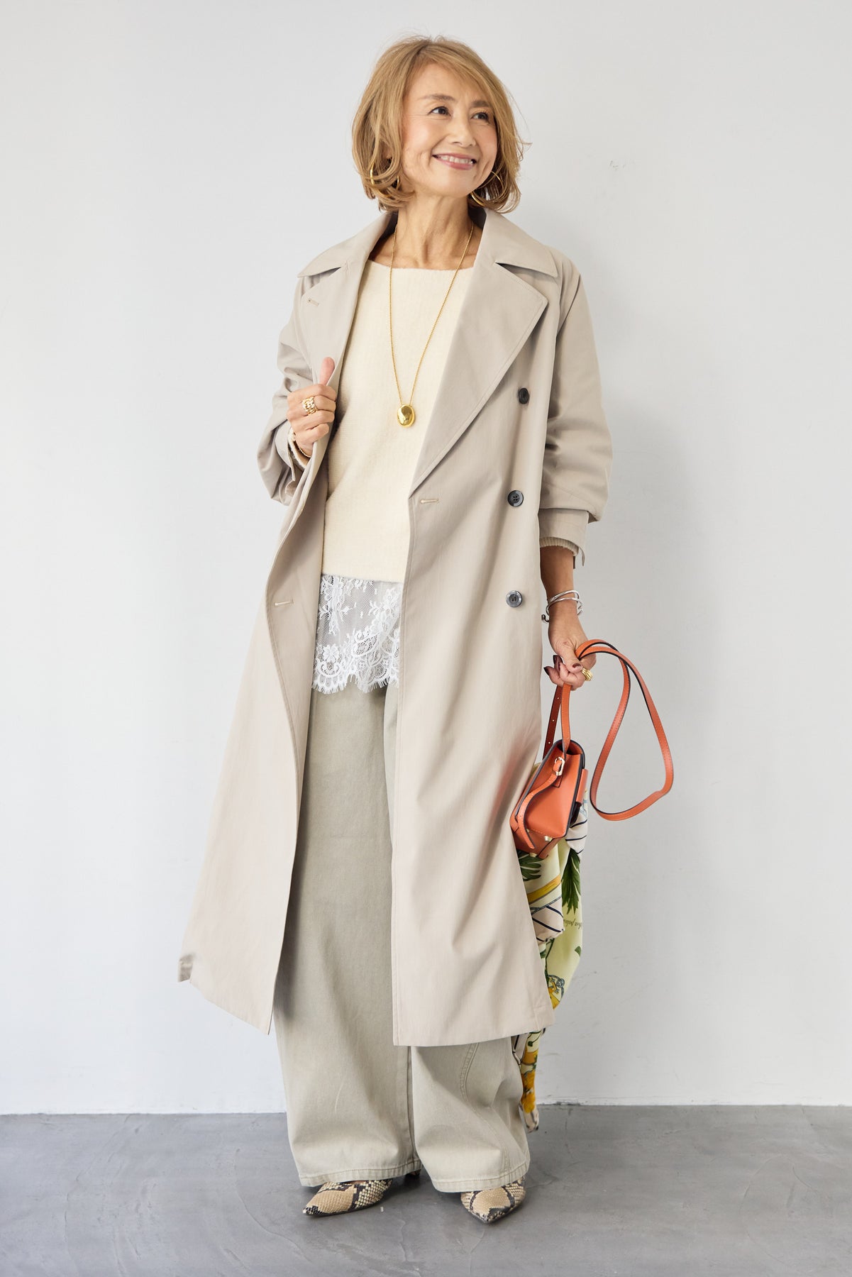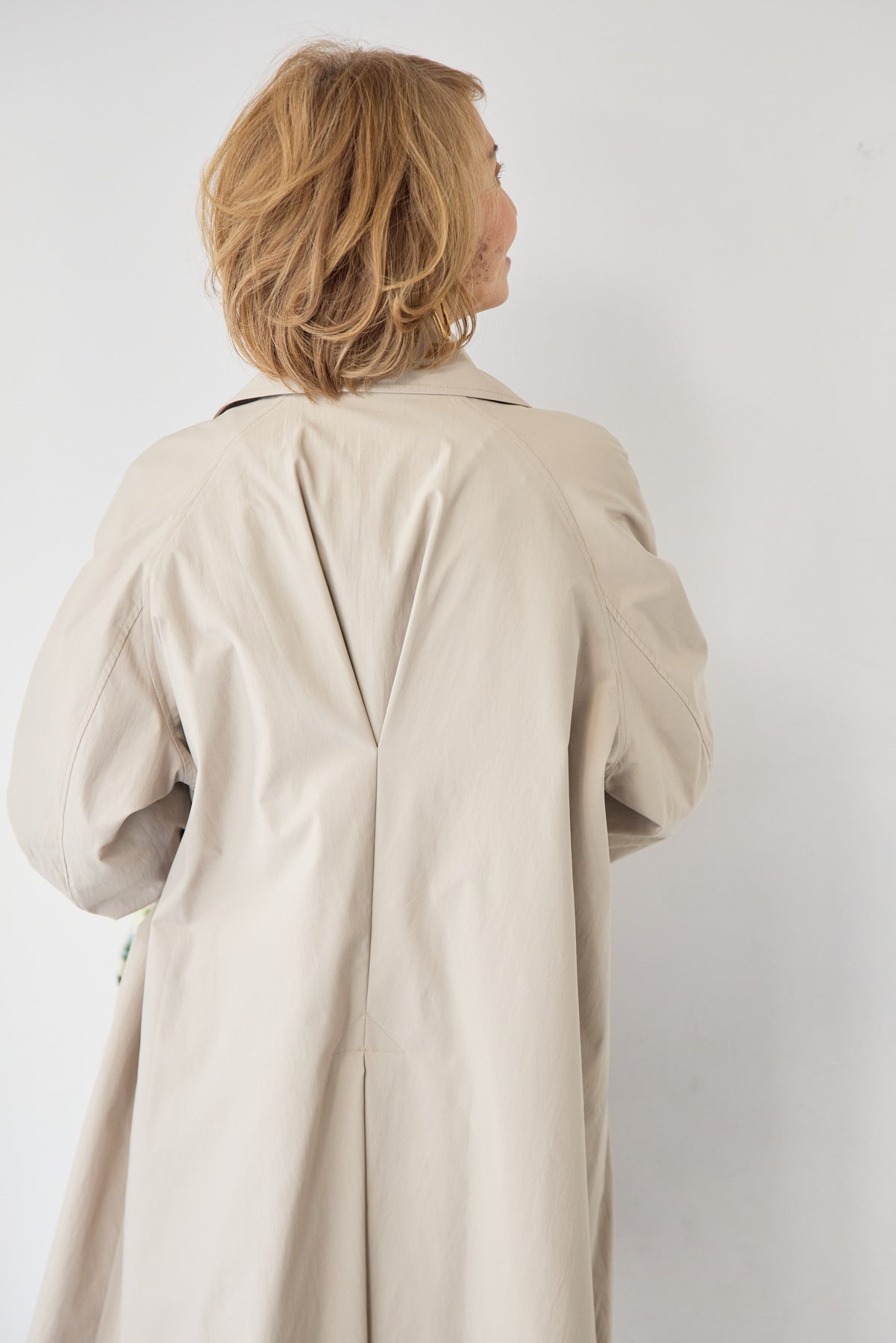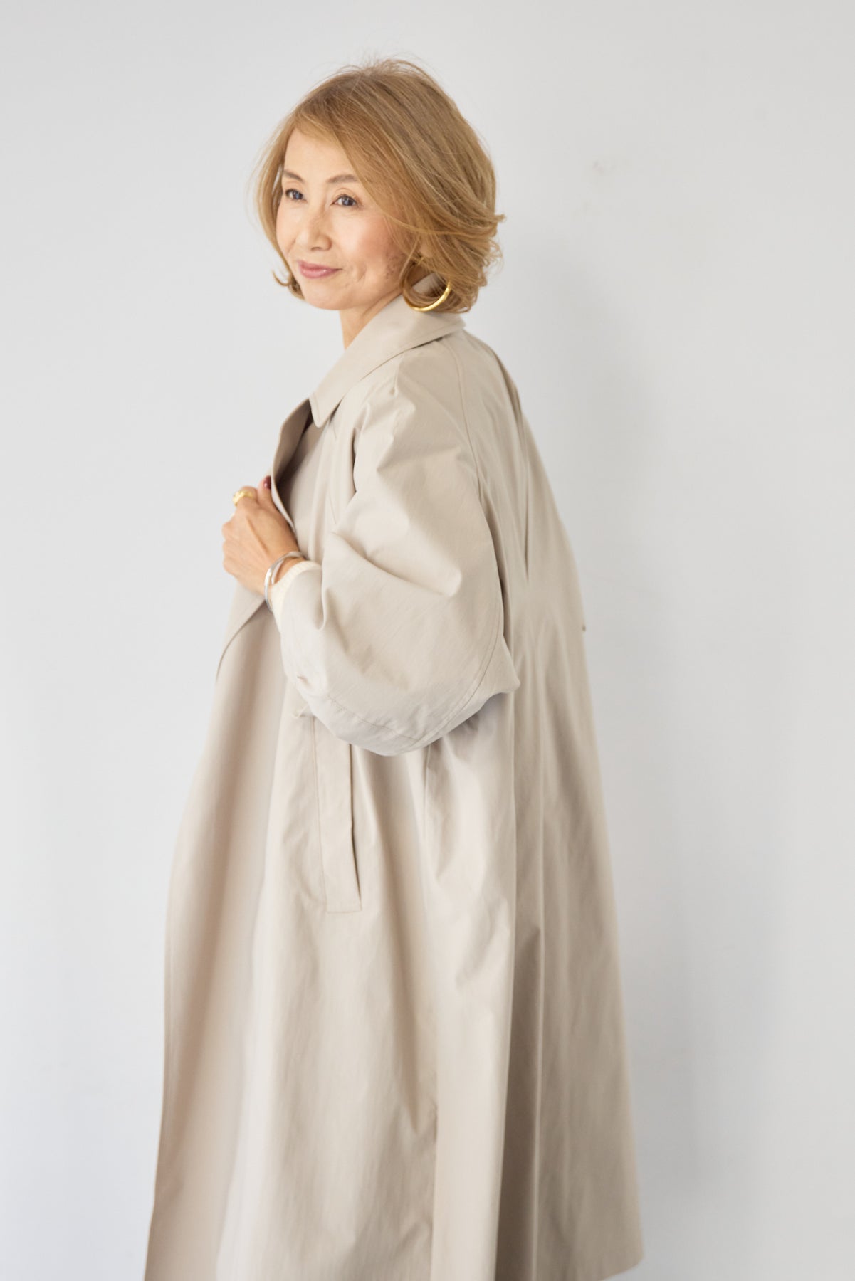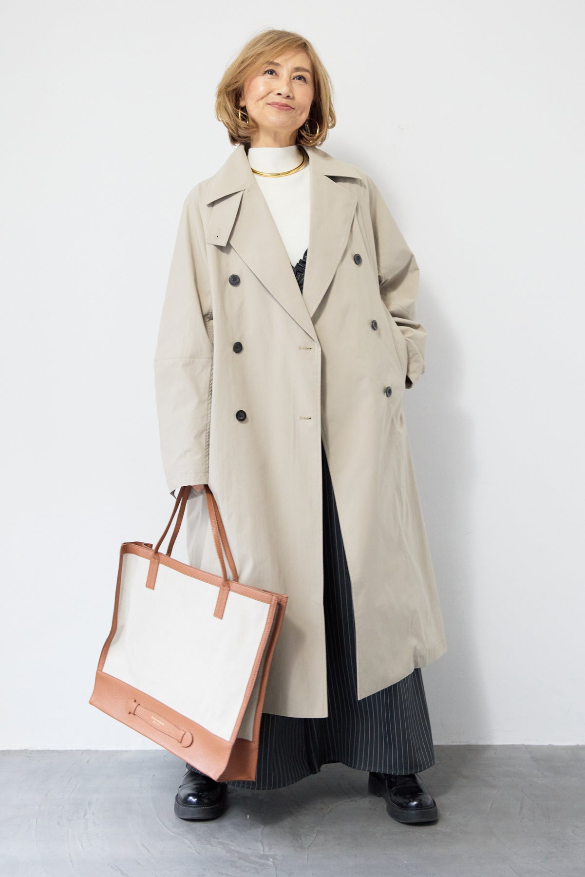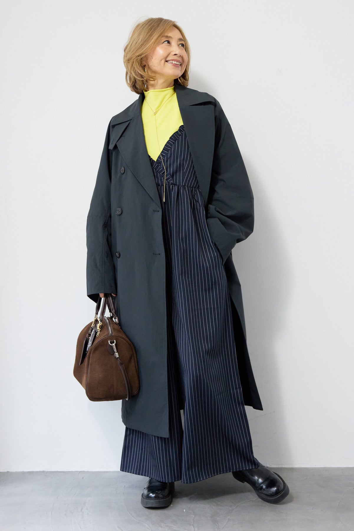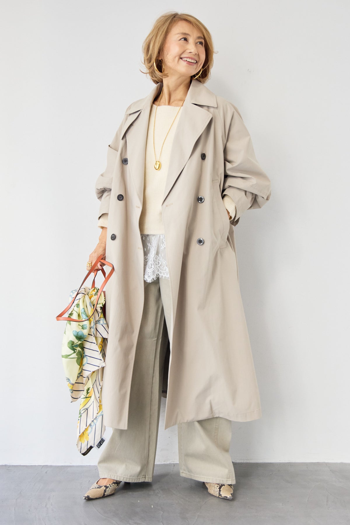 端正なフロントに対し、背面の立体的な切り替えが洗練された個性を放つ一着。大人の品格を保ちつつ、後ろ姿でさりげない遊び心を演出します。 身体を包むビッグシルエットとハリのある素材が、体型を自然にカバー。襟を立てれば都会的なスタンドカラー、袖口のゆとりで厚手のインナーもすっきりと着こなせます。 日常から少し背筋を伸ばしたい日まで、大人の日常に寄り添い、春の装いを軽やかに彩ります。