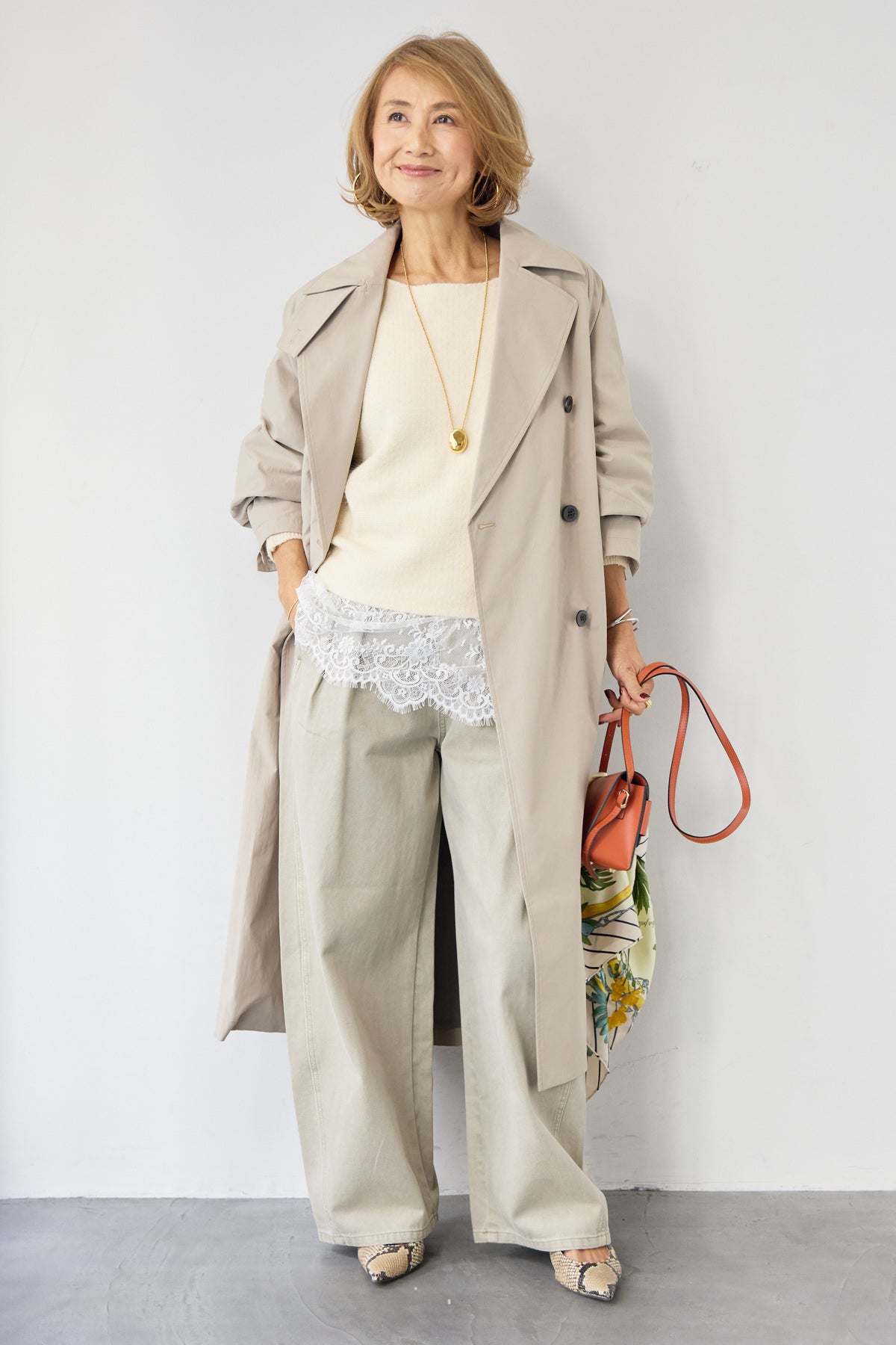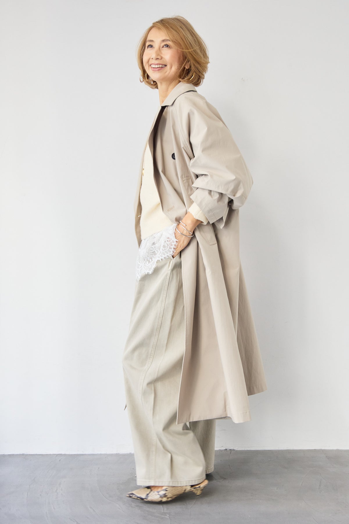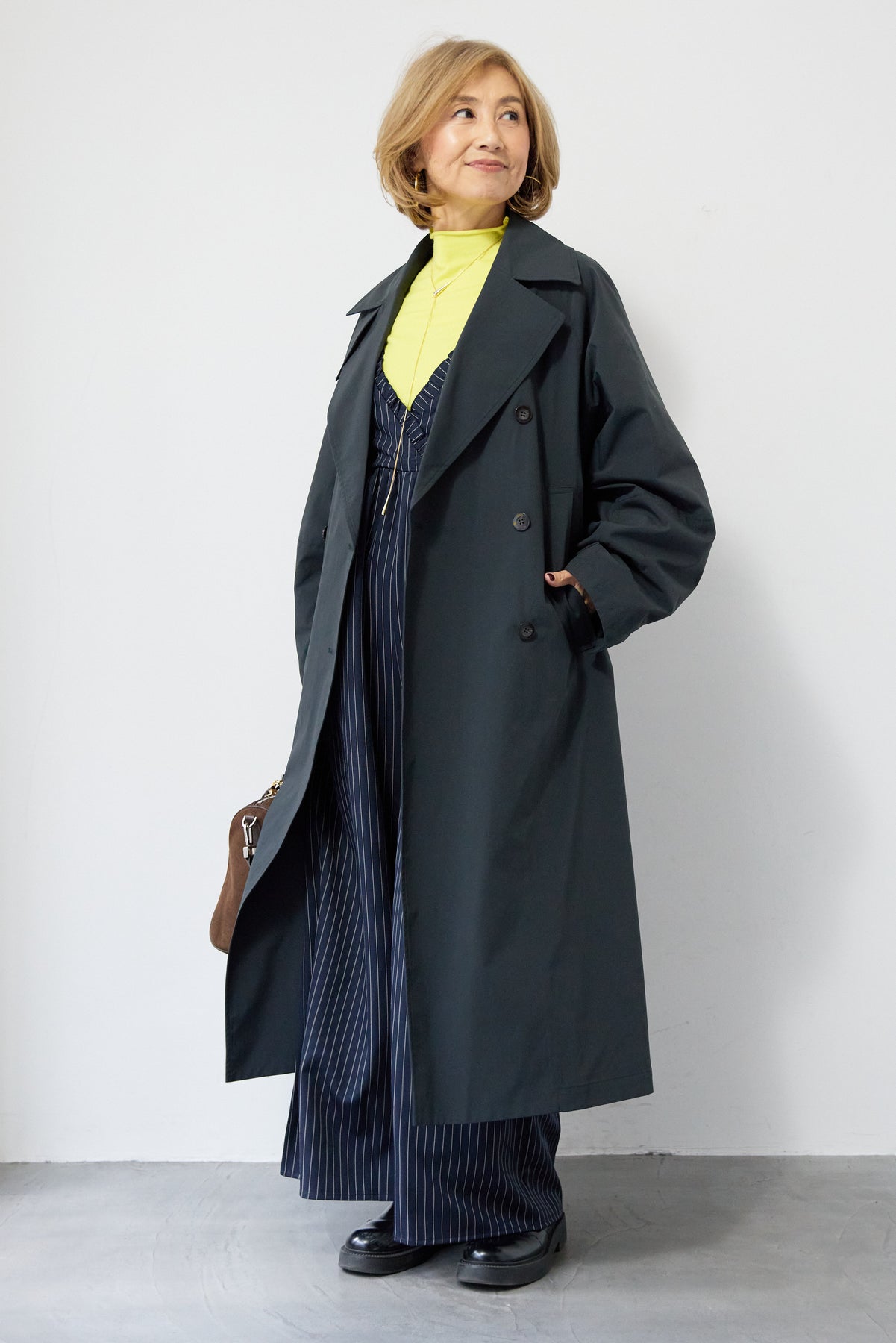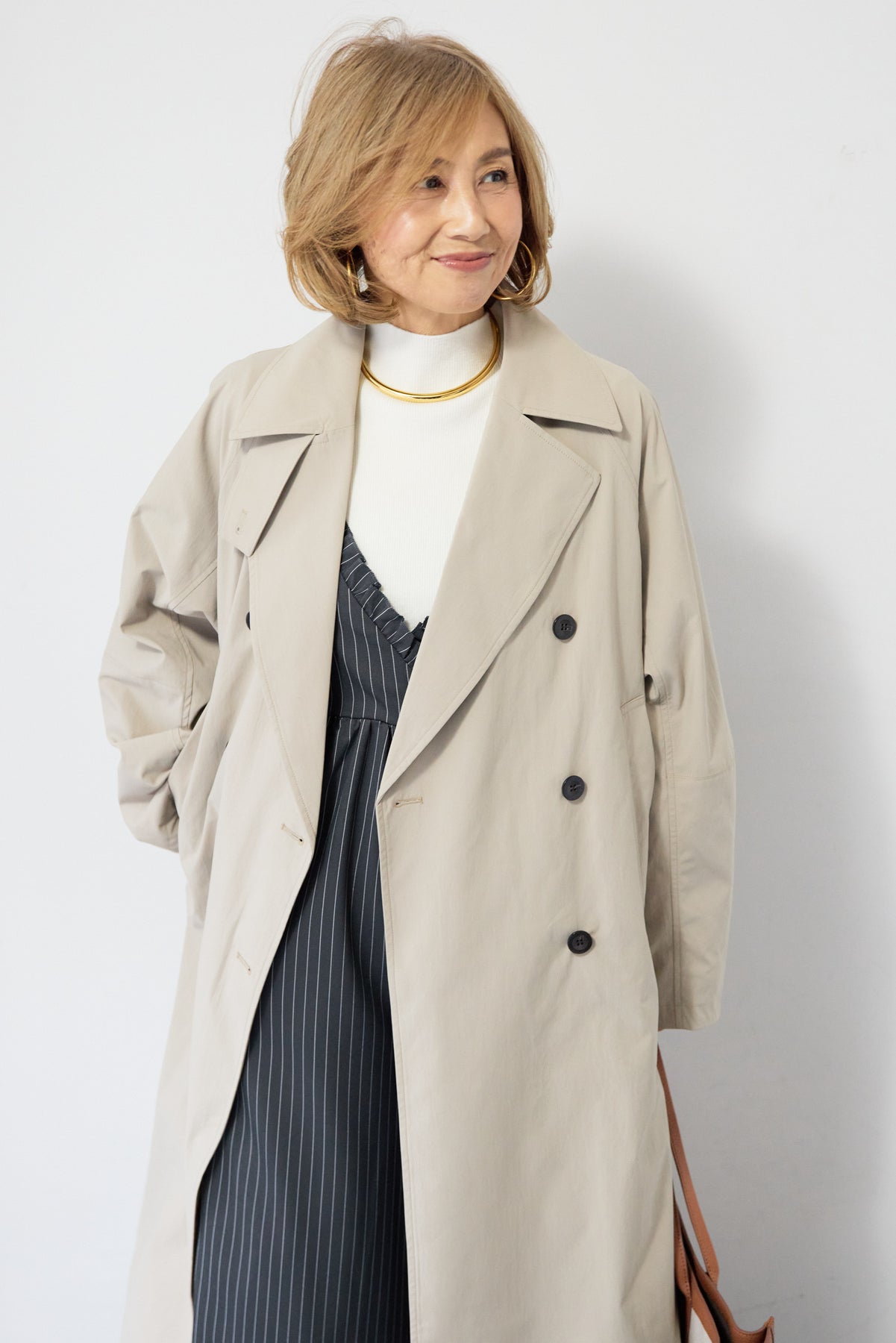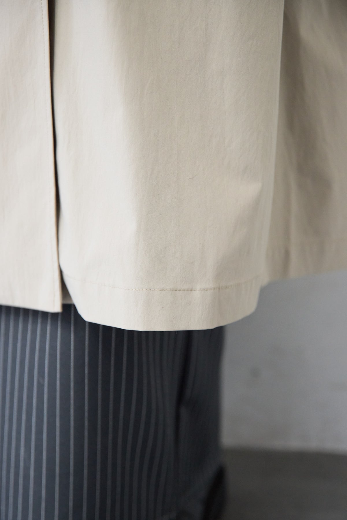 端正なフロントに対し、背面の立体的な切り替えが洗練された個性を放つ一着。大人の品格を保ちつつ、後ろ姿でさりげない遊び心を演出します。 身体を包むビッグシルエットとハリのある素材が、体型を自然にカバー。襟を立てれば都会的なスタンドカラー、袖口のゆとりで厚手のインナーもすっきりと着こなせます。 日常から少し背筋を伸ばしたい日まで、大人の日常に寄り添い、春の装いを軽やかに彩ります。