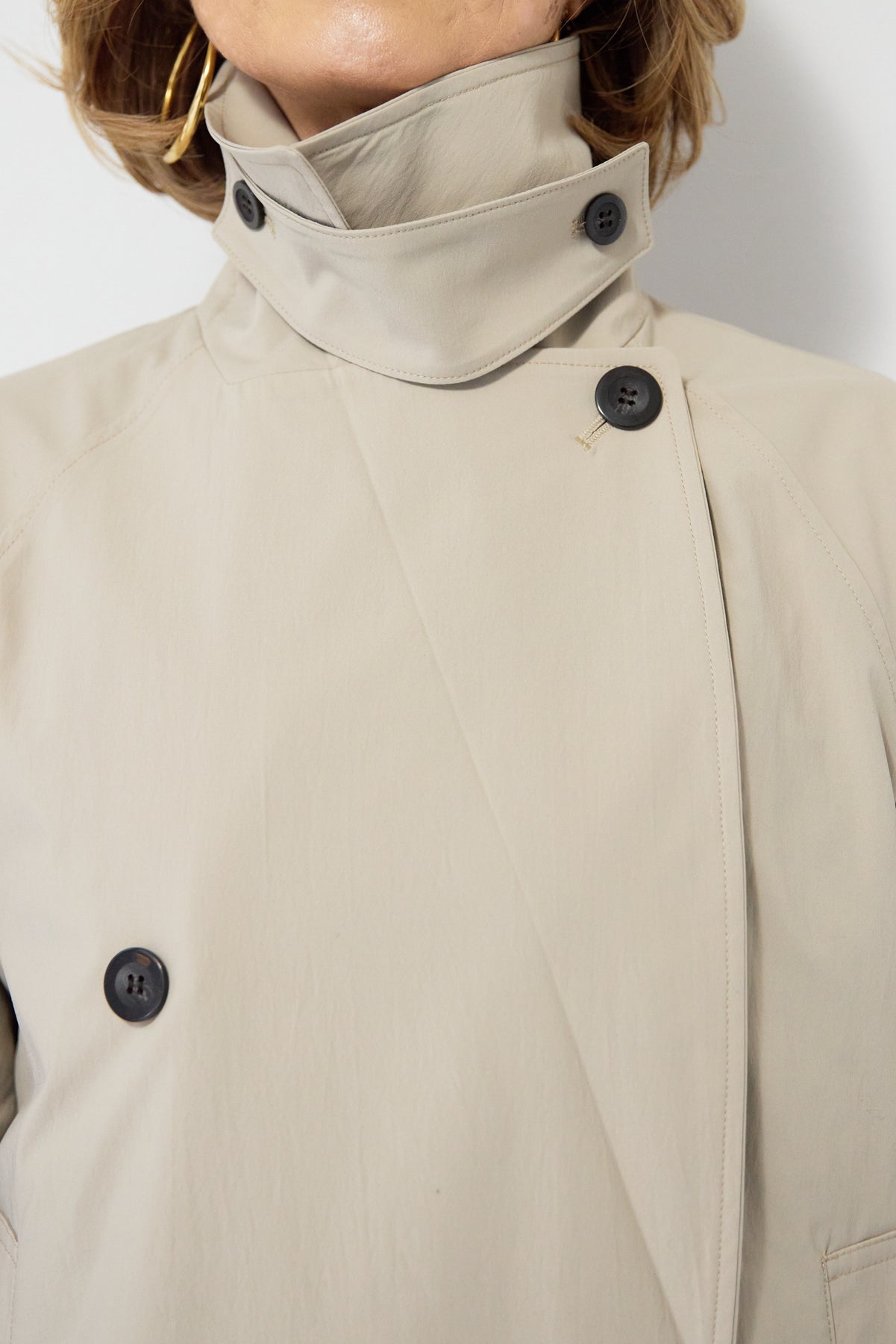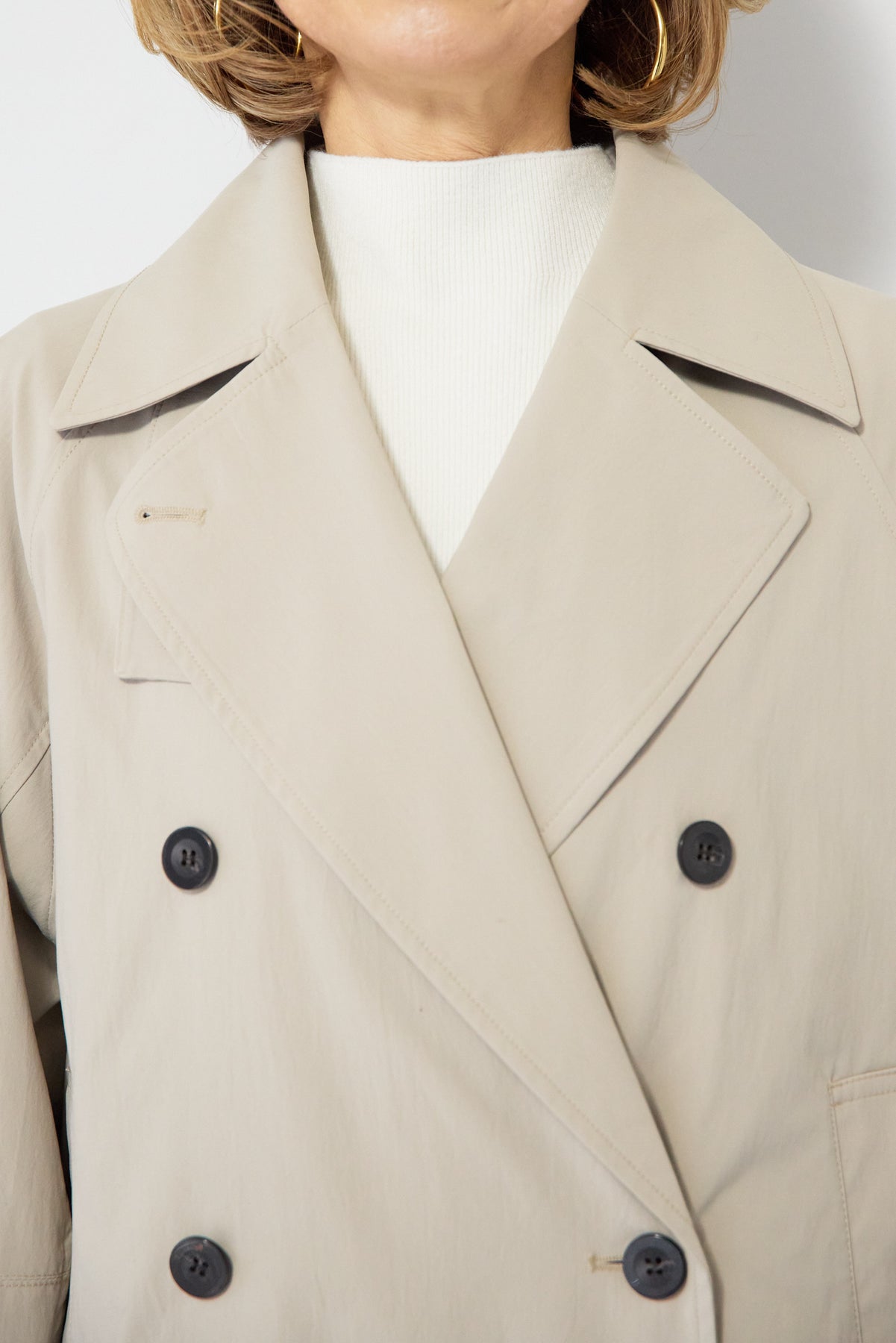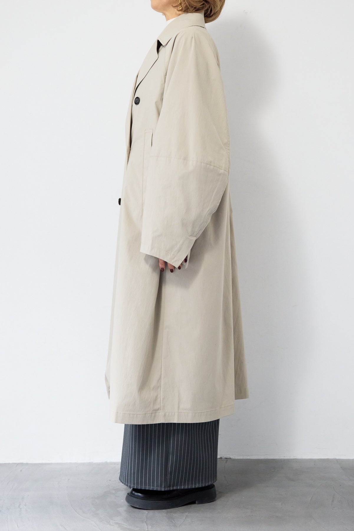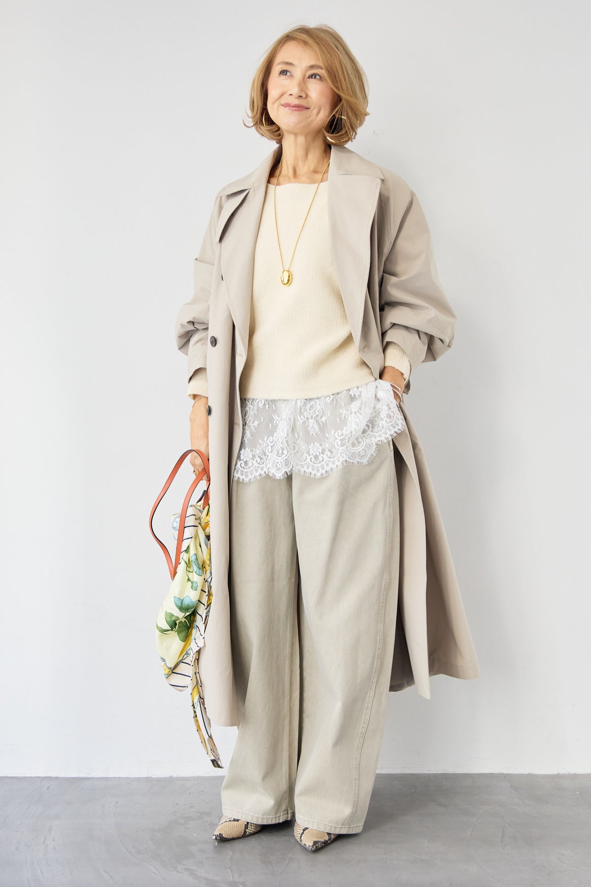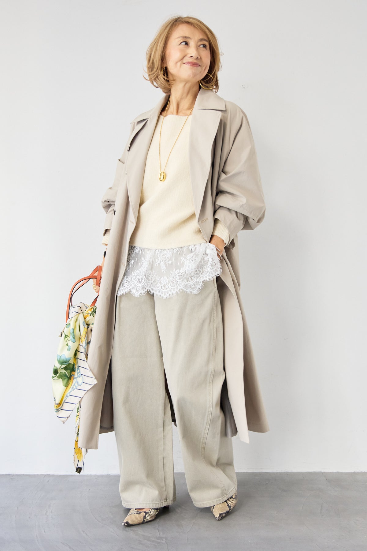 端正なフロントに対し、背面の立体的な切り替えが洗練された個性を放つ一着。大人の品格を保ちつつ、後ろ姿でさりげない遊び心を演出します。 身体を包むビッグシルエットとハリのある素材が、体型を自然にカバー。襟を立てれば都会的なスタンドカラー、袖口のゆとりで厚手のインナーもすっきりと着こなせます。 日常から少し背筋を伸ばしたい日まで、大人の日常に寄り添い、春の装いを軽やかに彩ります。