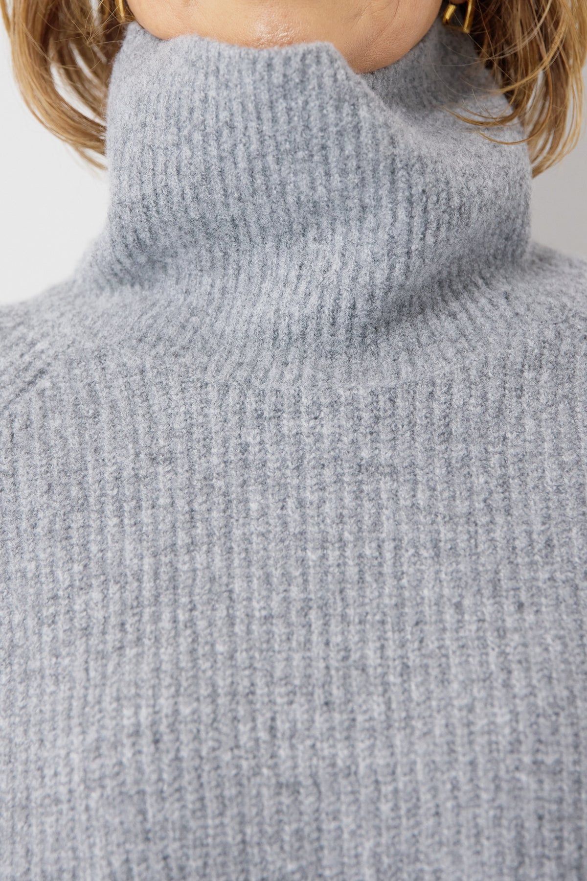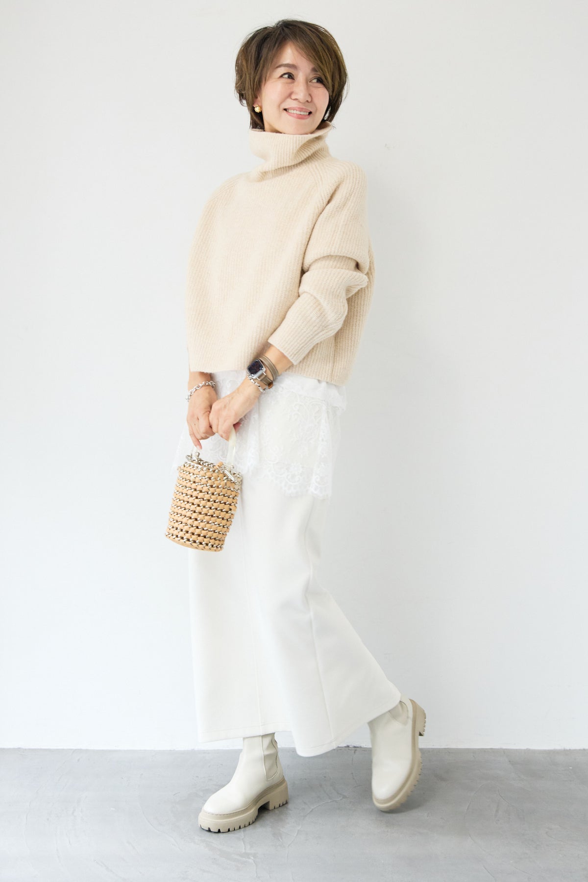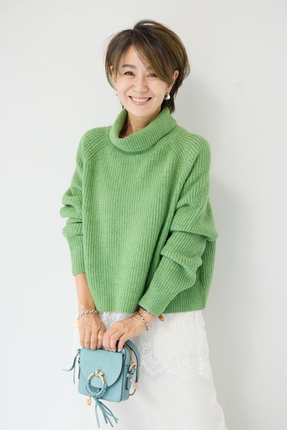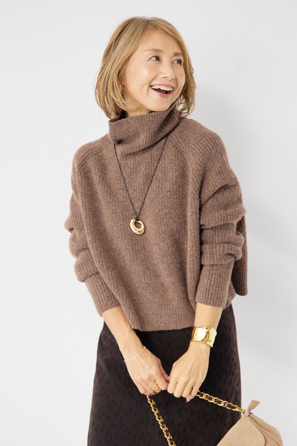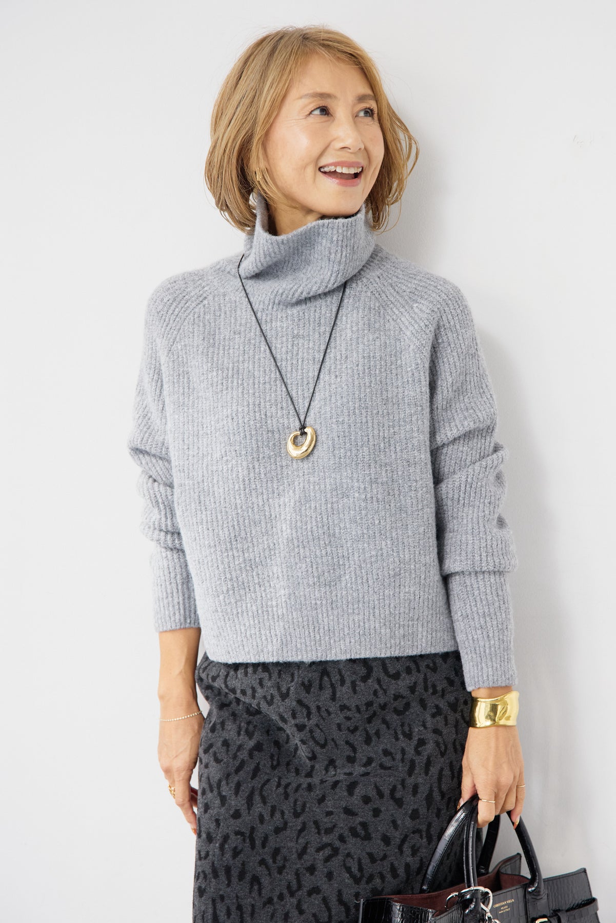 立体感のあるリブ編みと、程よい高さのタートルネックが上品な印象を演出するショート丈ニット。ウール混素材ならではのふんわりとした柔らかさと、しっかりとした肉感で、暖かさと着心地を両立しました。コンパクトなショート丈は、スカートやワイドパンツ、ワンピースとのレイヤードにも好相性。自然に肩になじむラグランスリーブ仕様で、身体のラインを拾いすぎず、リラックス感のある着用感を叶えます。首元を包み込むタートルネックは、折り返さずラフに着ても、くしゅっとニュアンスをつけても様になるデザイン。シンプルながらも素材感とシルエットで差がつく、大人のための冬ニットです。
