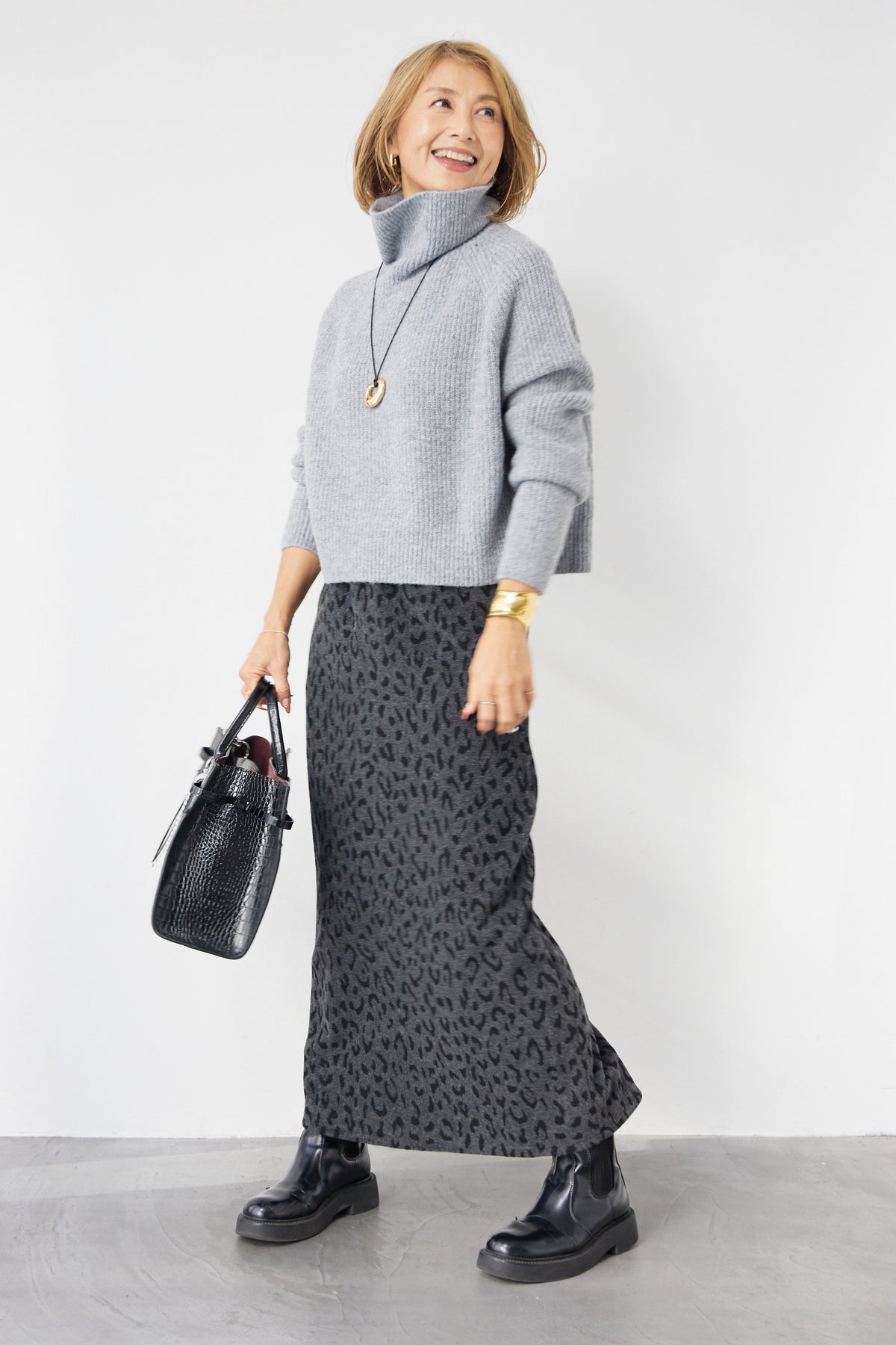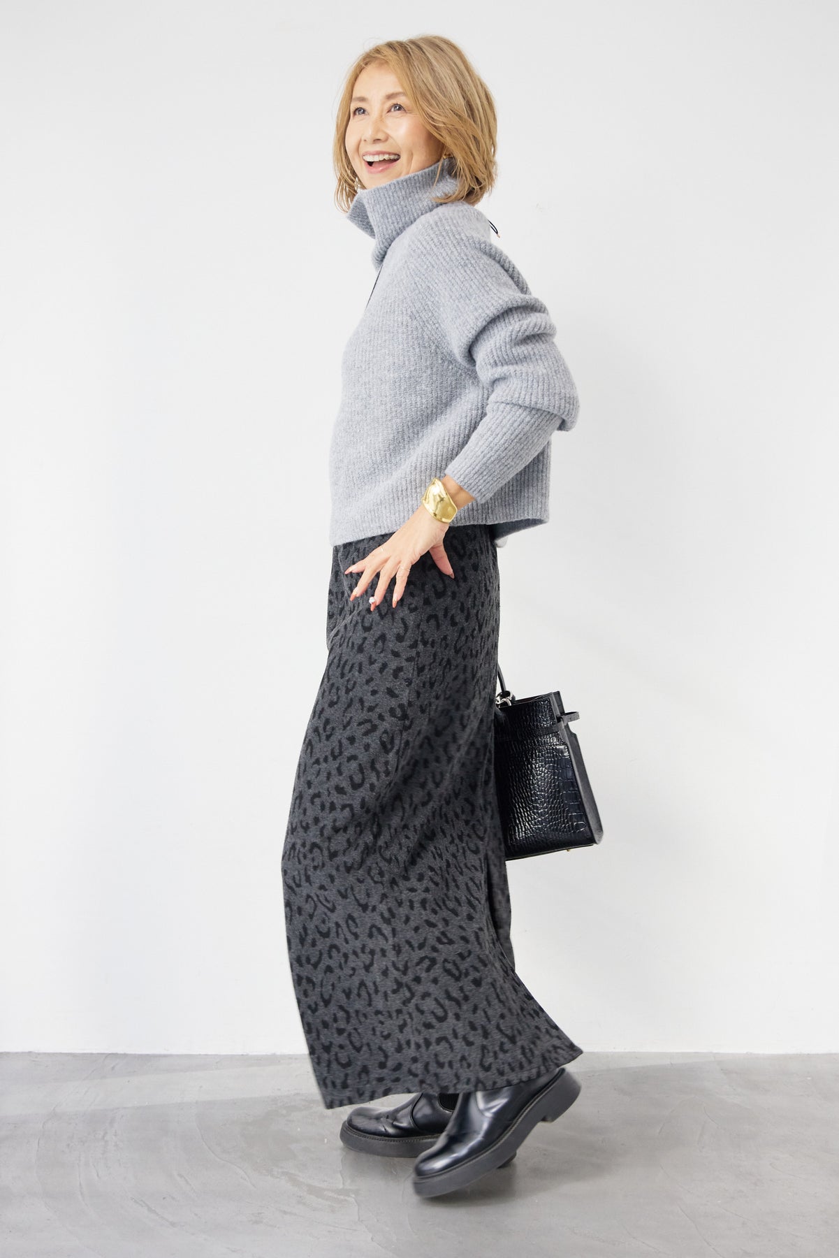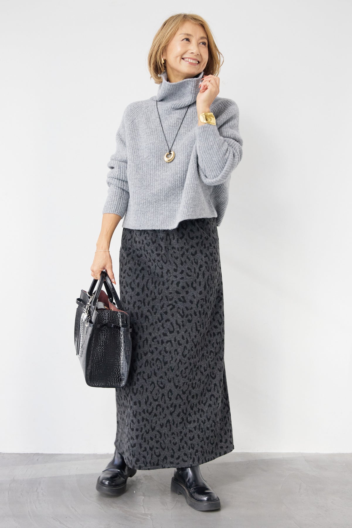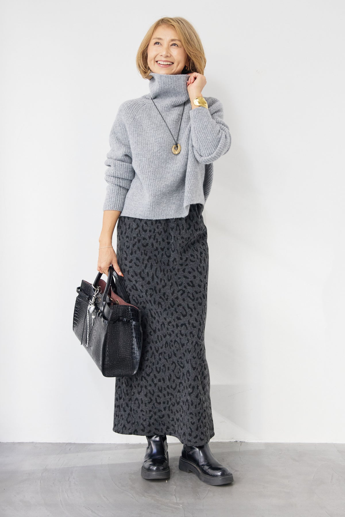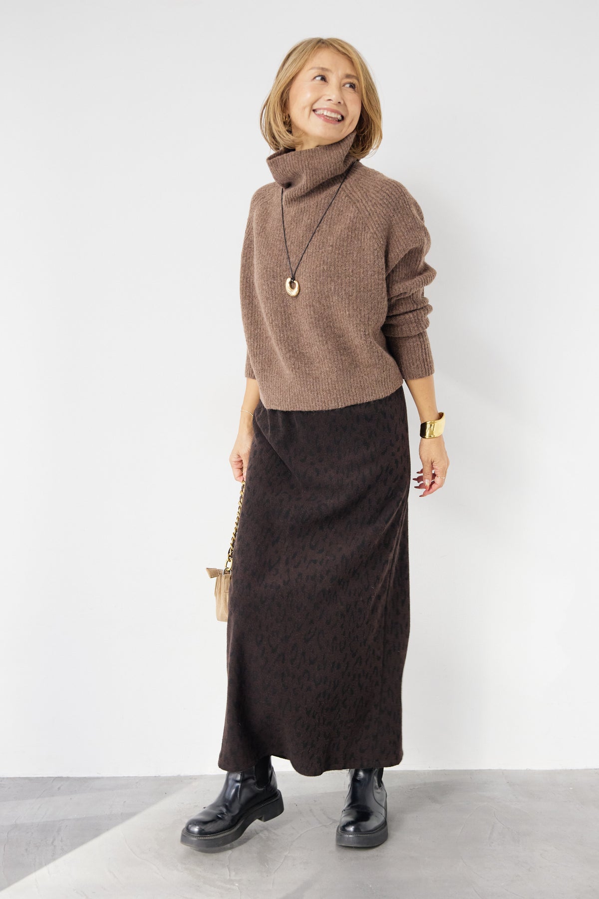 立体感のあるリブ編みと、程よい高さのタートルネックが上品な印象を演出するショート丈ニット。ウール混素材ならではのふんわりとした柔らかさと、しっかりとした肉感で、暖かさと着心地を両立しました。コンパクトなショート丈は、スカートやワイドパンツ、ワンピースとのレイヤードにも好相性。自然に肩になじむラグランスリーブ仕様で、身体のラインを拾いすぎず、リラックス感のある着用感を叶えます。首元を包み込むタートルネックは、折り返さずラフに着ても、くしゅっとニュアンスをつけても様になるデザイン。シンプルながらも素材感とシルエットで差がつく、大人のための冬ニットです。