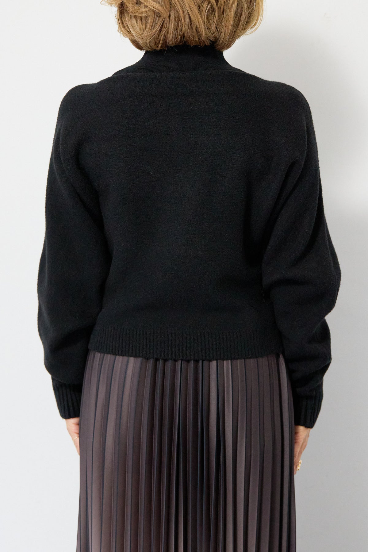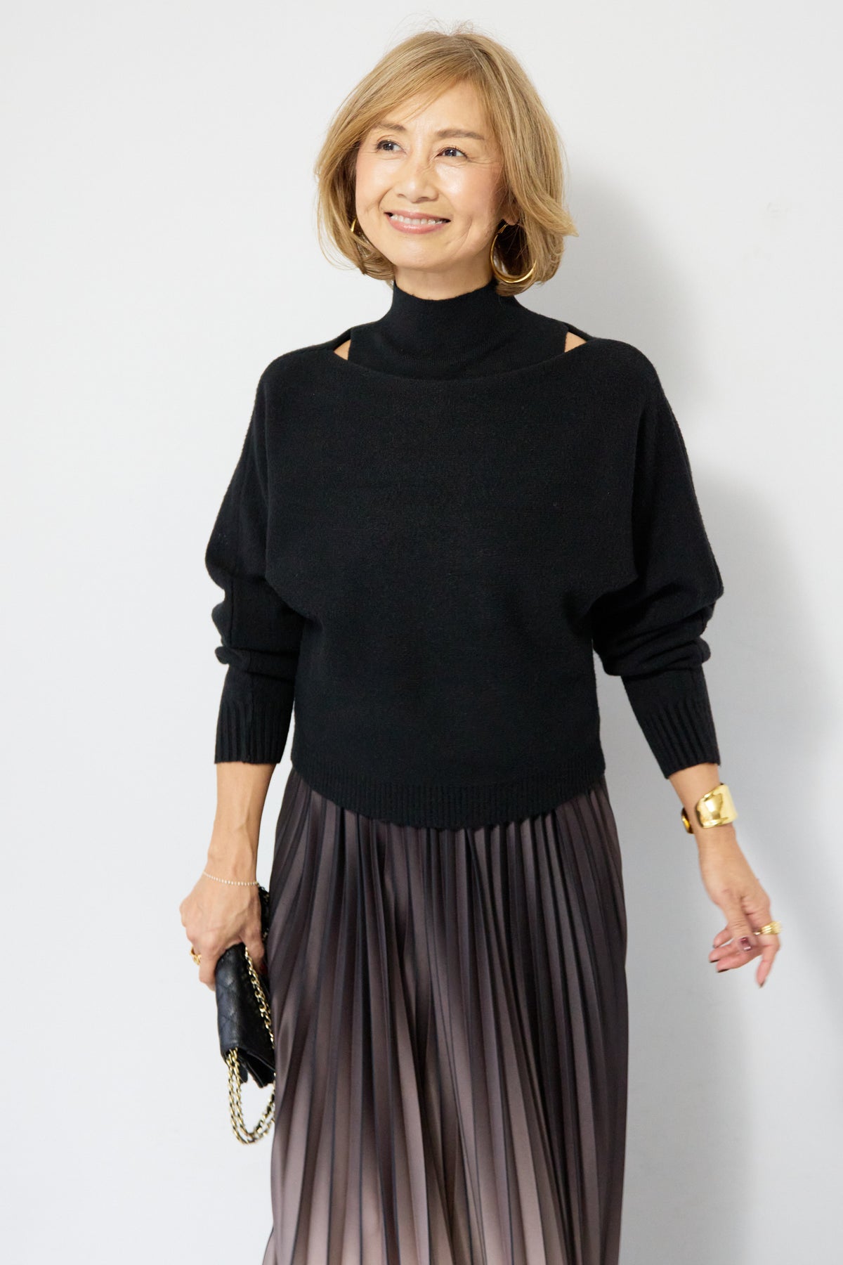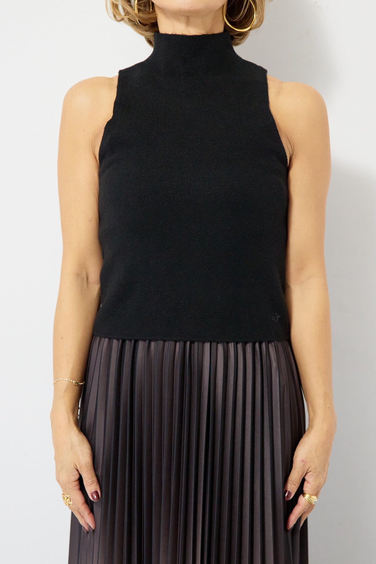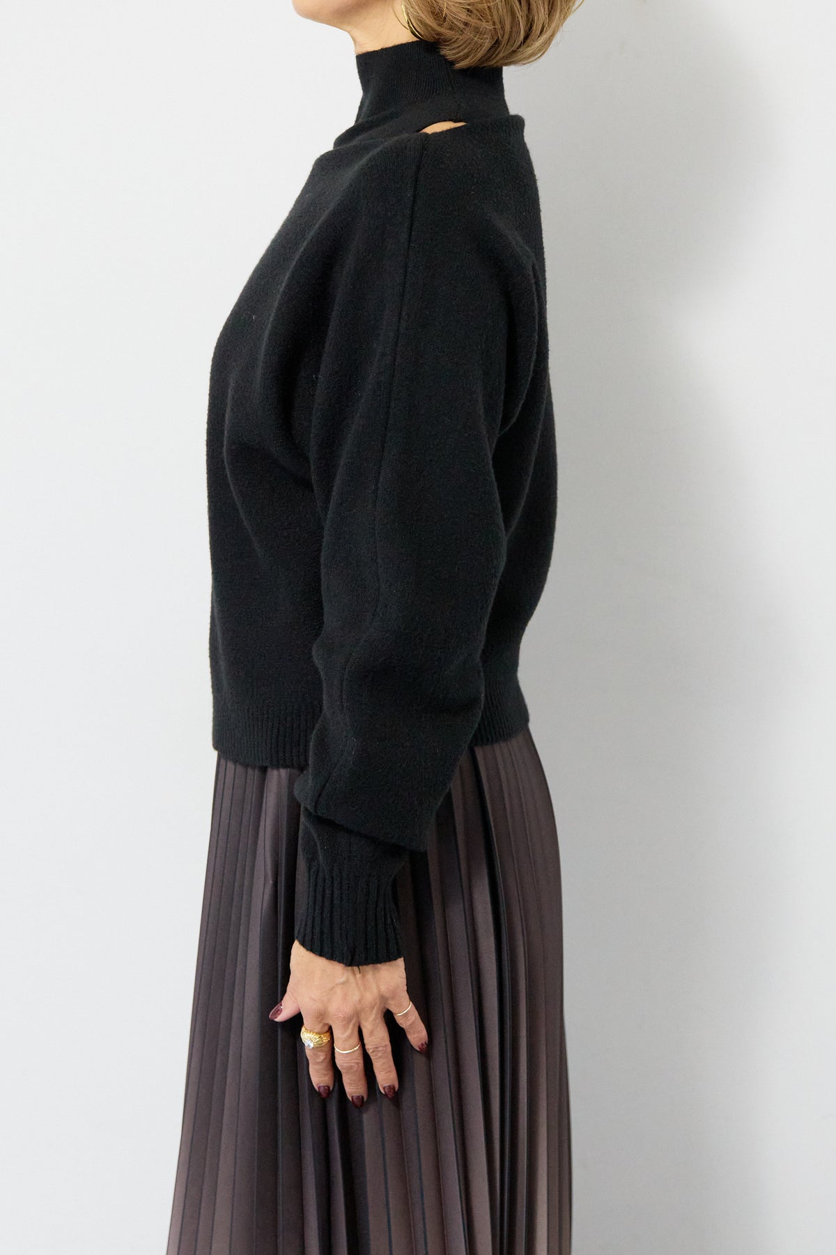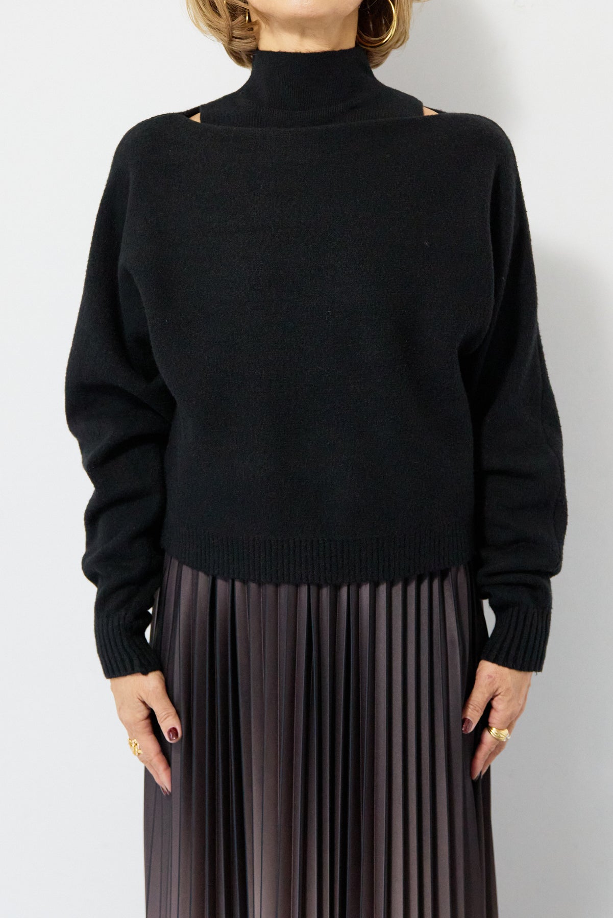 重ね着を楽しめるデザインが特徴のレイヤードニット。 ハイネックのノースリーブニットと、ゆったりとしたシルエットの長袖ニットを組み合わせた2WAY仕様で、着こなしの幅が広がります。 それぞれ単体でも使用でき、季節やシーンに合わせたスタイリングが可能。レイヤード時は奥行きのある表情が生まれ、シンプルながらも存在感のある仕上がりです。 程よい厚みと柔らかな肌触りで、インナーとしても一枚着としても取り入れやすい一着。