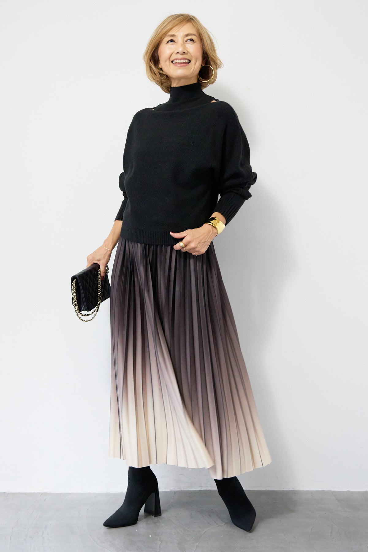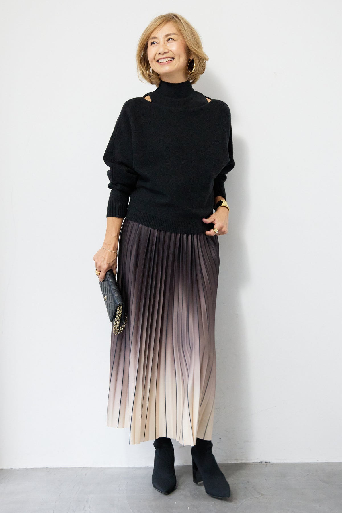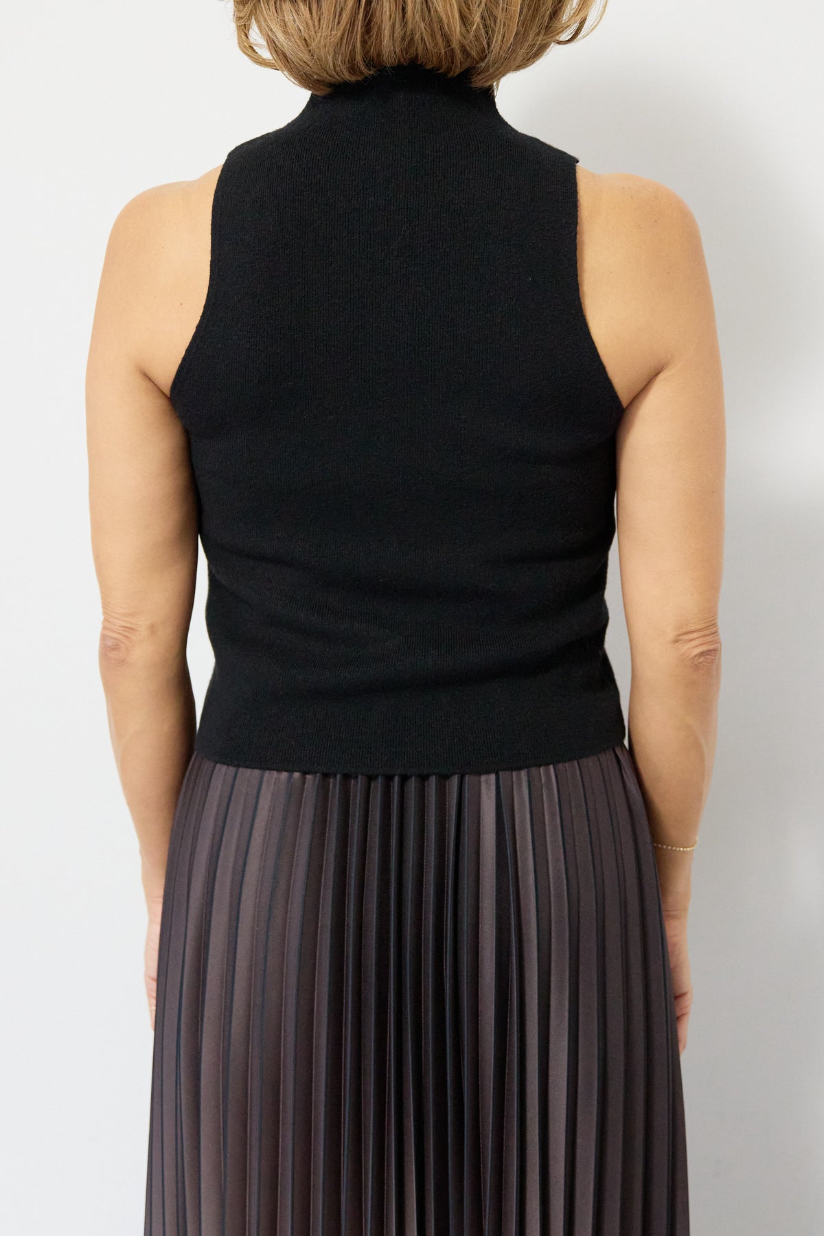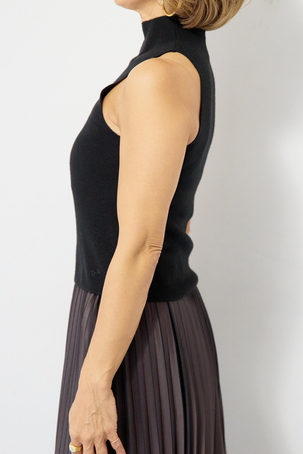 重ね着を楽しめるデザインが特徴のレイヤードニット。 ハイネックのノースリーブニットと、ゆったりとしたシルエットの長袖ニットを組み合わせた2WAY仕様で、着こなしの幅が広がります。 それぞれ単体でも使用でき、季節やシーンに合わせたスタイリングが可能。レイヤード時は奥行きのある表情が生まれ、シンプルながらも存在感のある仕上がりです。 程よい厚みと柔らかな肌触りで、インナーとしても一枚着としても取り入れやすい一着。