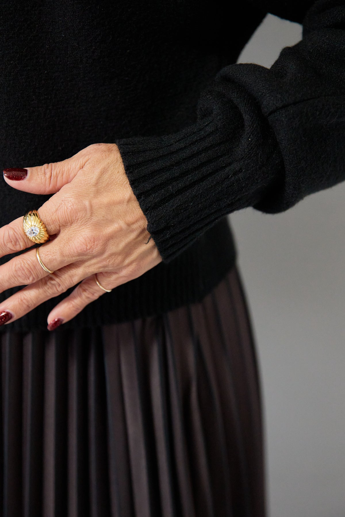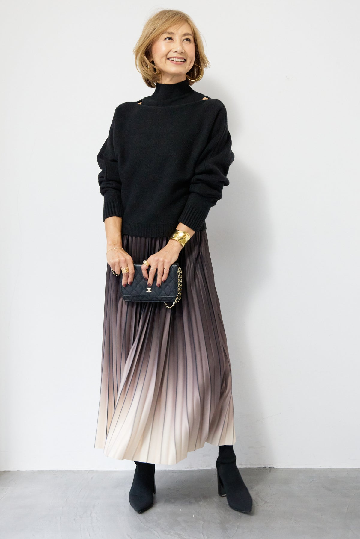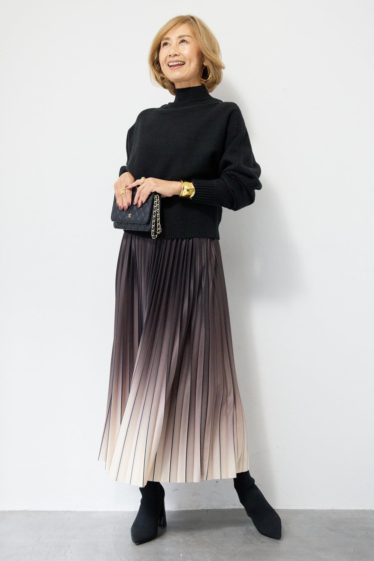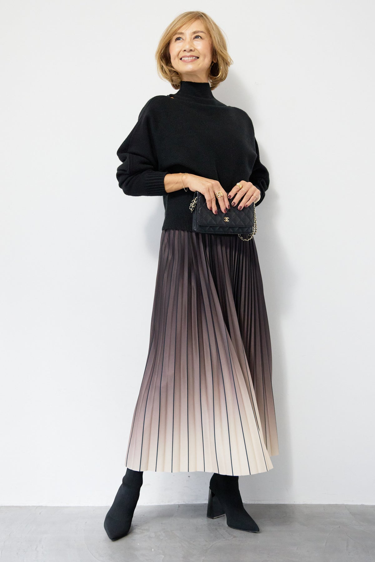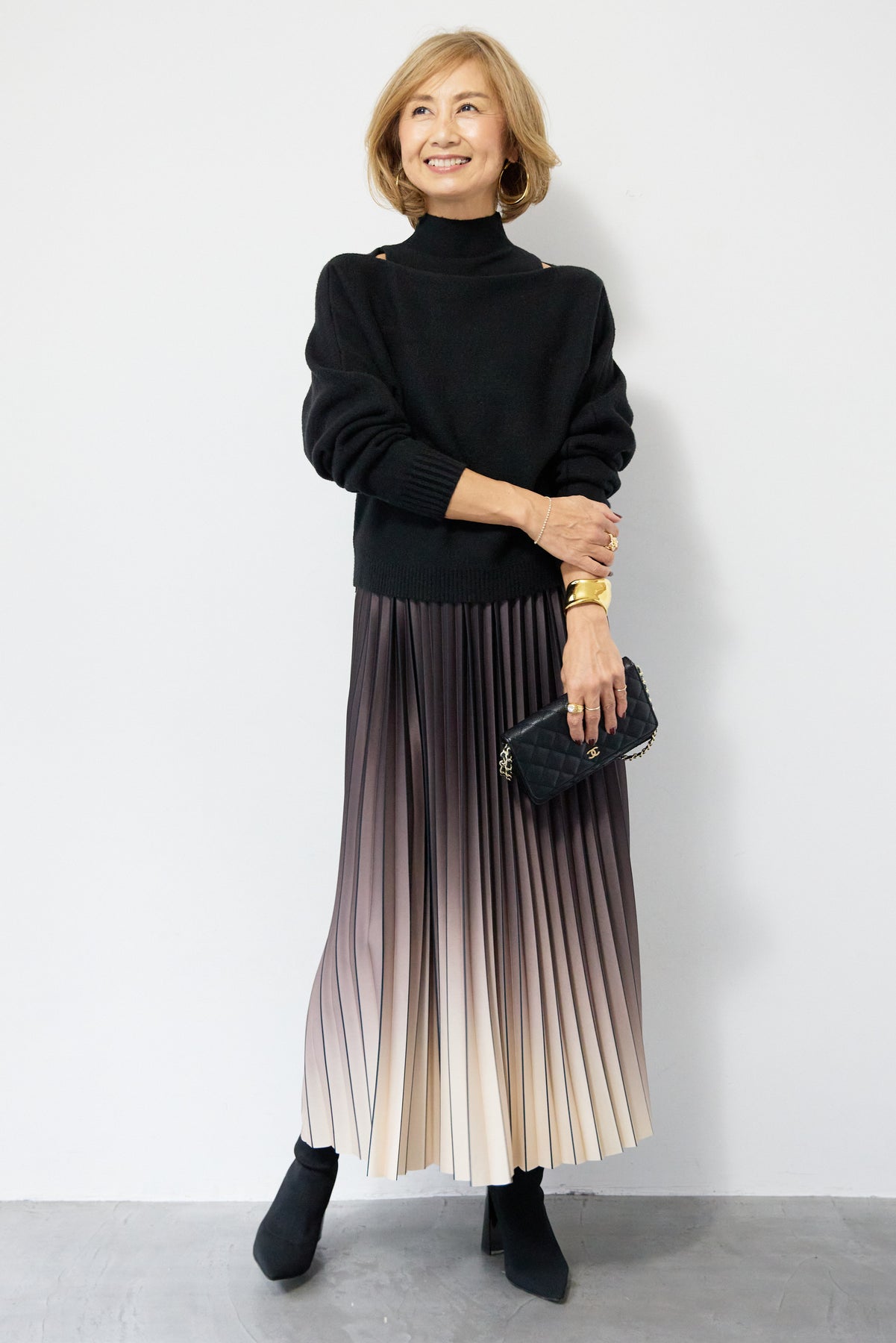 重ね着を楽しめるデザインが特徴のレイヤードニット。 ハイネックのノースリーブニットと、ゆったりとしたシルエットの長袖ニットを組み合わせた2WAY仕様で、着こなしの幅が広がります。 それぞれ単体でも使用でき、季節やシーンに合わせたスタイリングが可能。レイヤード時は奥行きのある表情が生まれ、シンプルながらも存在感のある仕上がりです。 程よい厚みと柔らかな肌触りで、インナーとしても一枚着としても取り入れやすい一着。