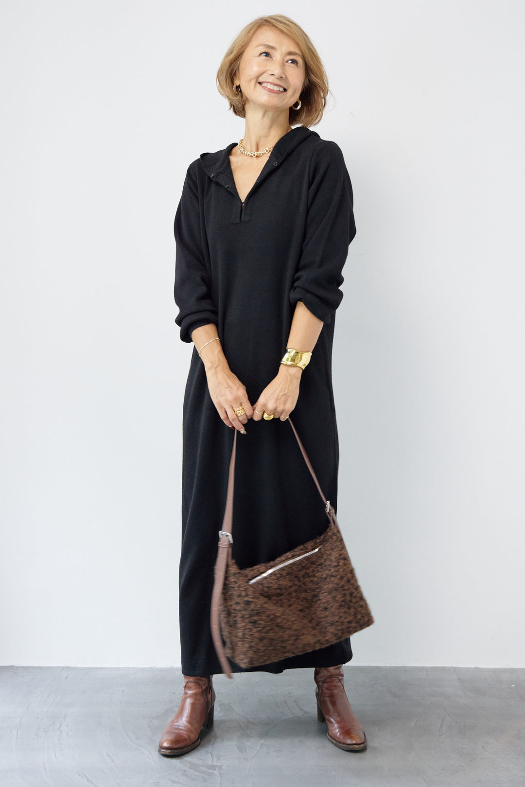 ウールミックス フーディニットワンピース