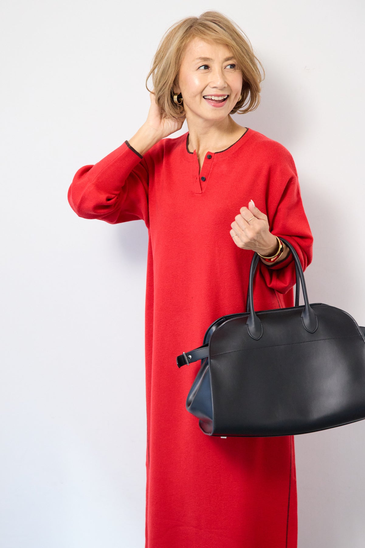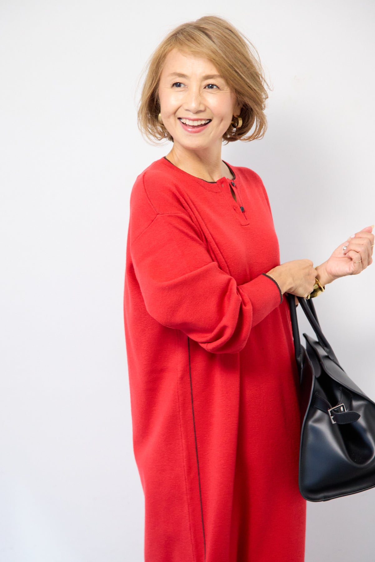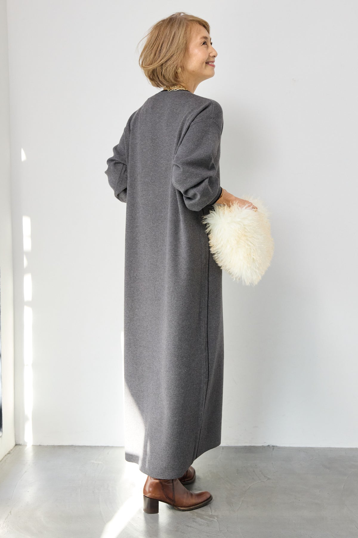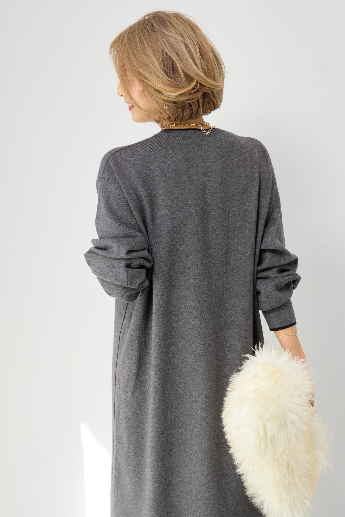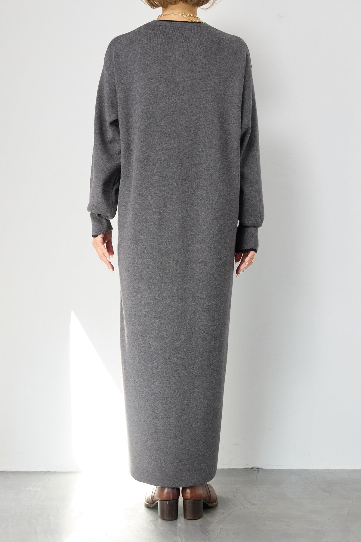 もちもちした肌触りと、防静電気機能を兼ね備えた、暖かく快適な着心地のロングワンピースです。 縦長効果を生むサイド〜フロントの配色ラインが、身体のラインを拾いすぎないIラインシルエットをすっきり見せます。 首元はカジュアルなヘンリーネックで、抜け感を演出。袖口の配色もさりげないアクセントに。 一枚でサマになりブーツやアクセサリーを合わせるだけで、洗練された大人のリラックススタイルが完成します。寒い季節に活躍する優秀なアイテムです。
