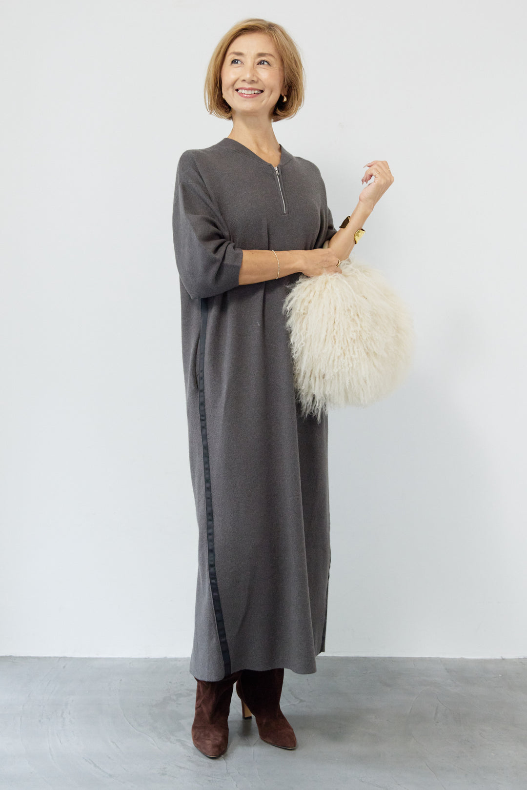 【防静電気】前後2WAY配色ラインやわもちニットワンピース