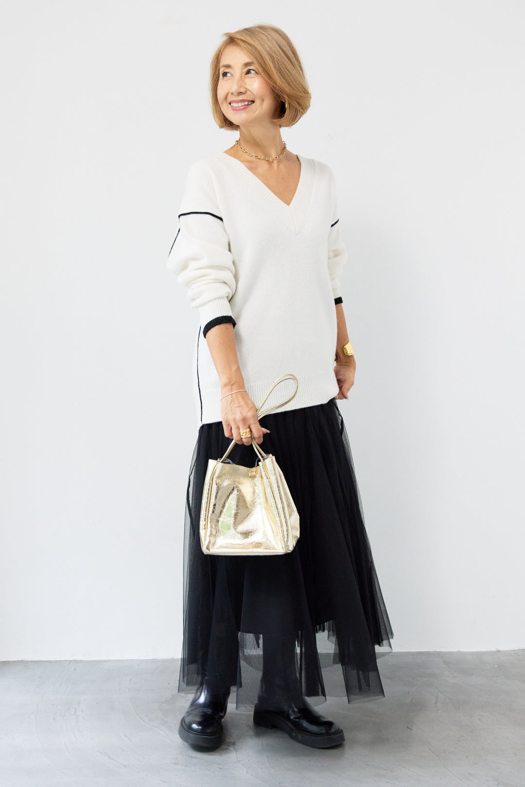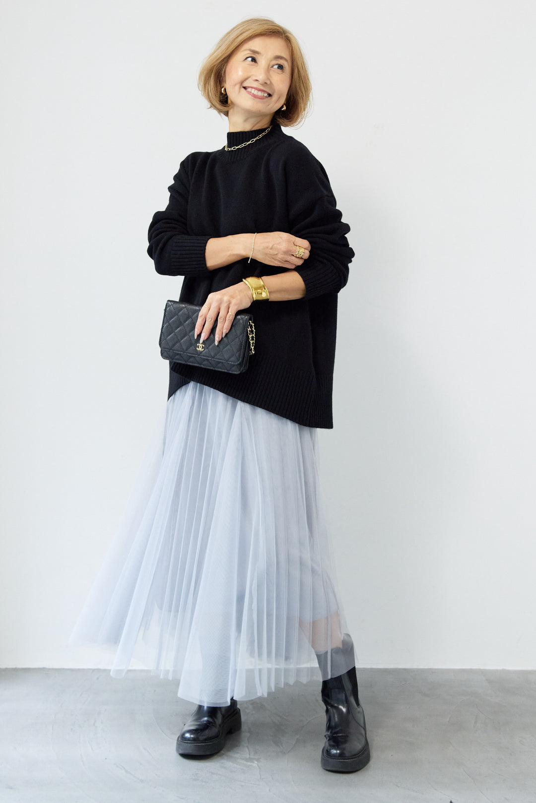 [SET]ウォッシャブルポンチョニット+カーブデニムパンツ(2set)
