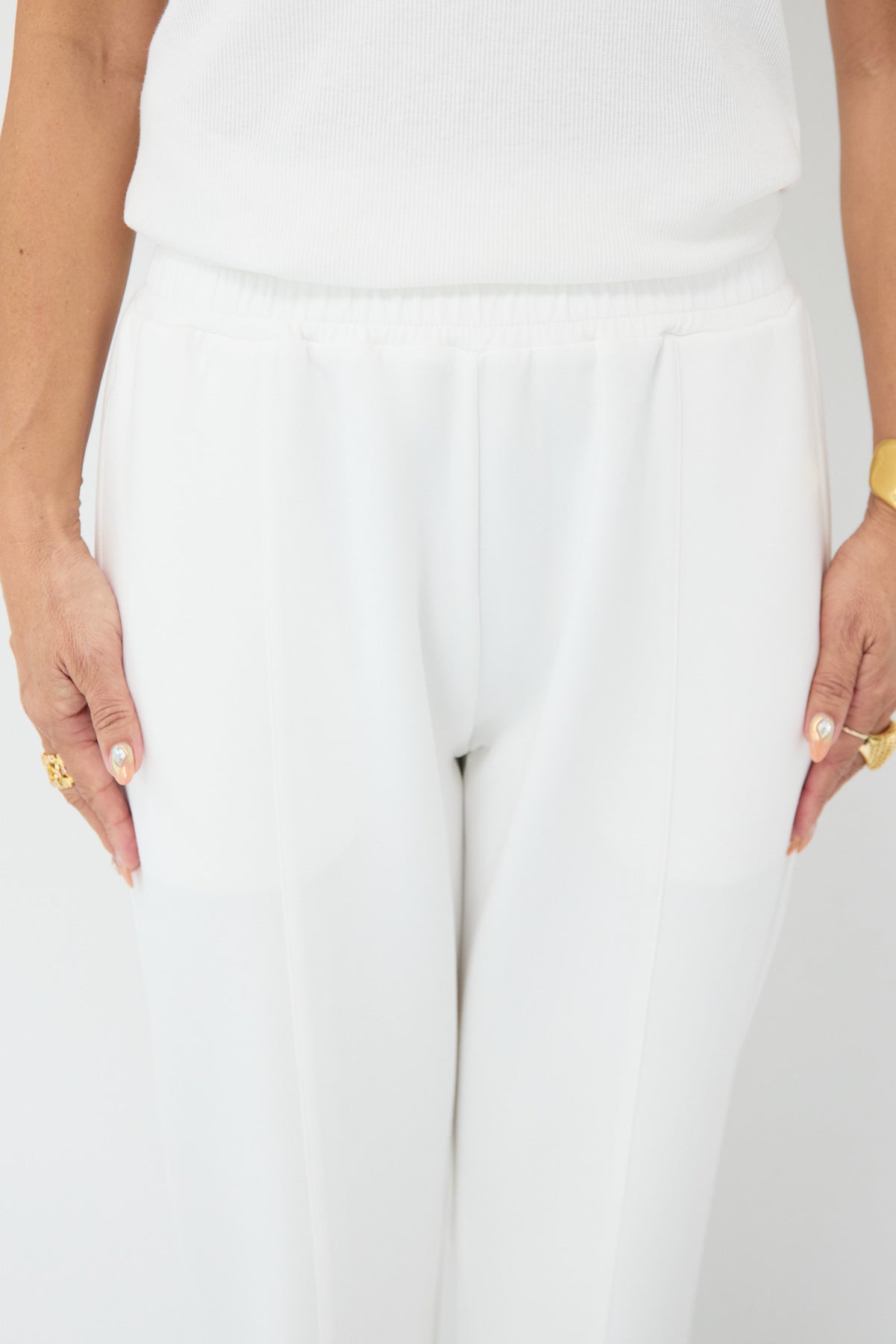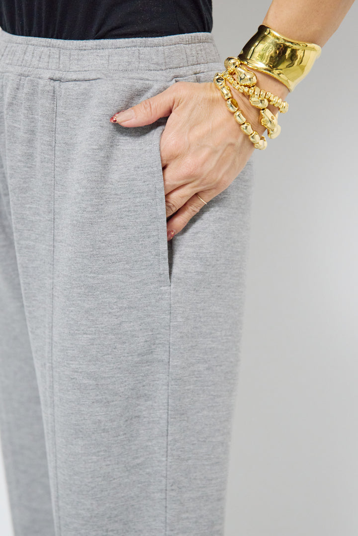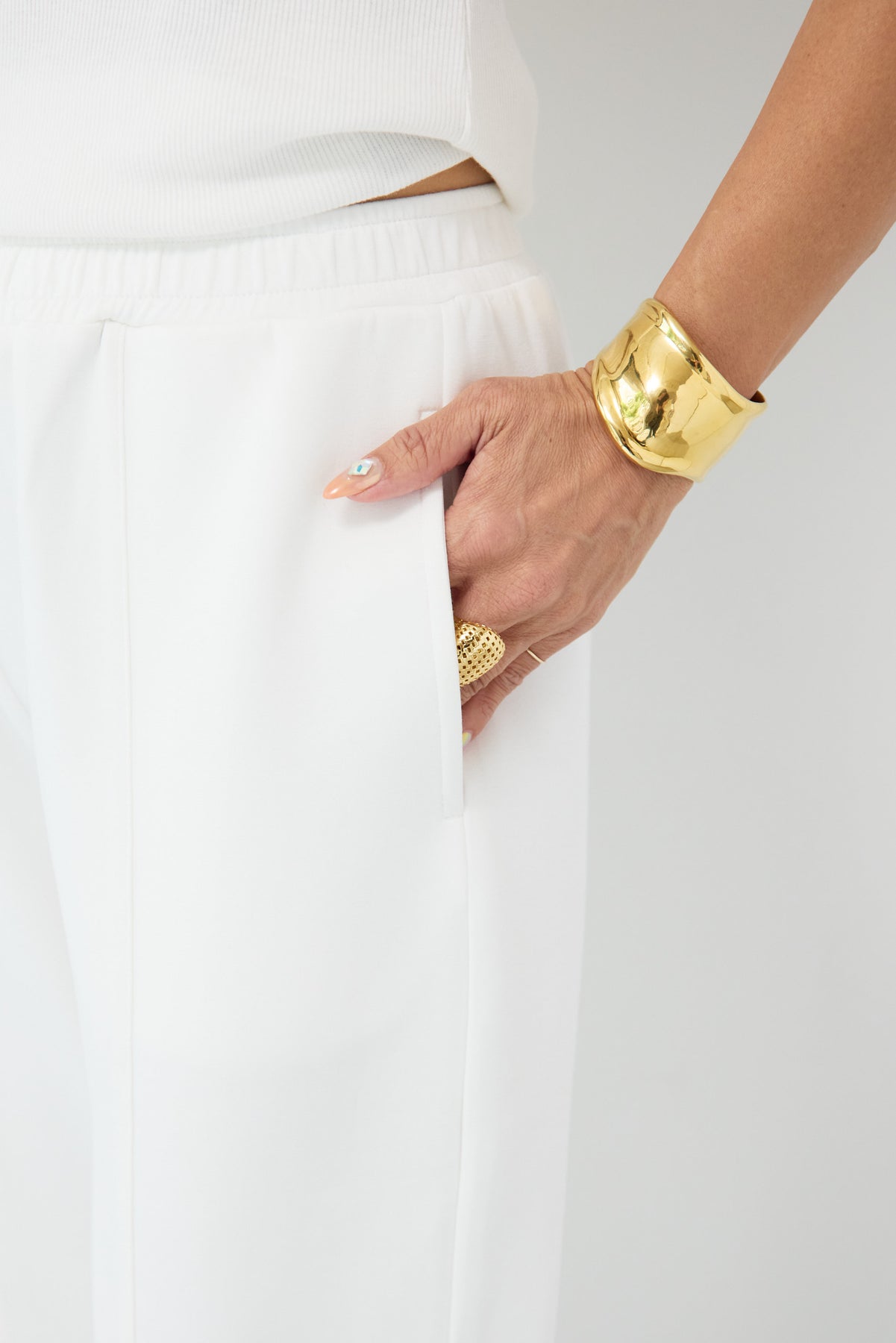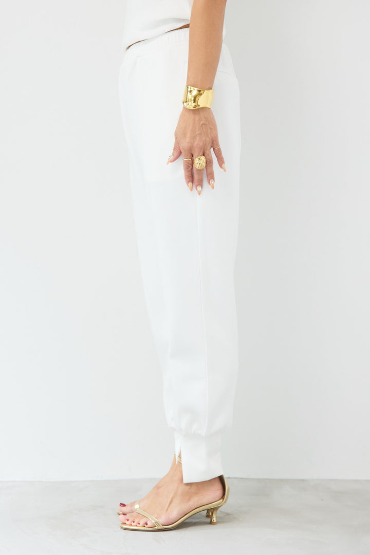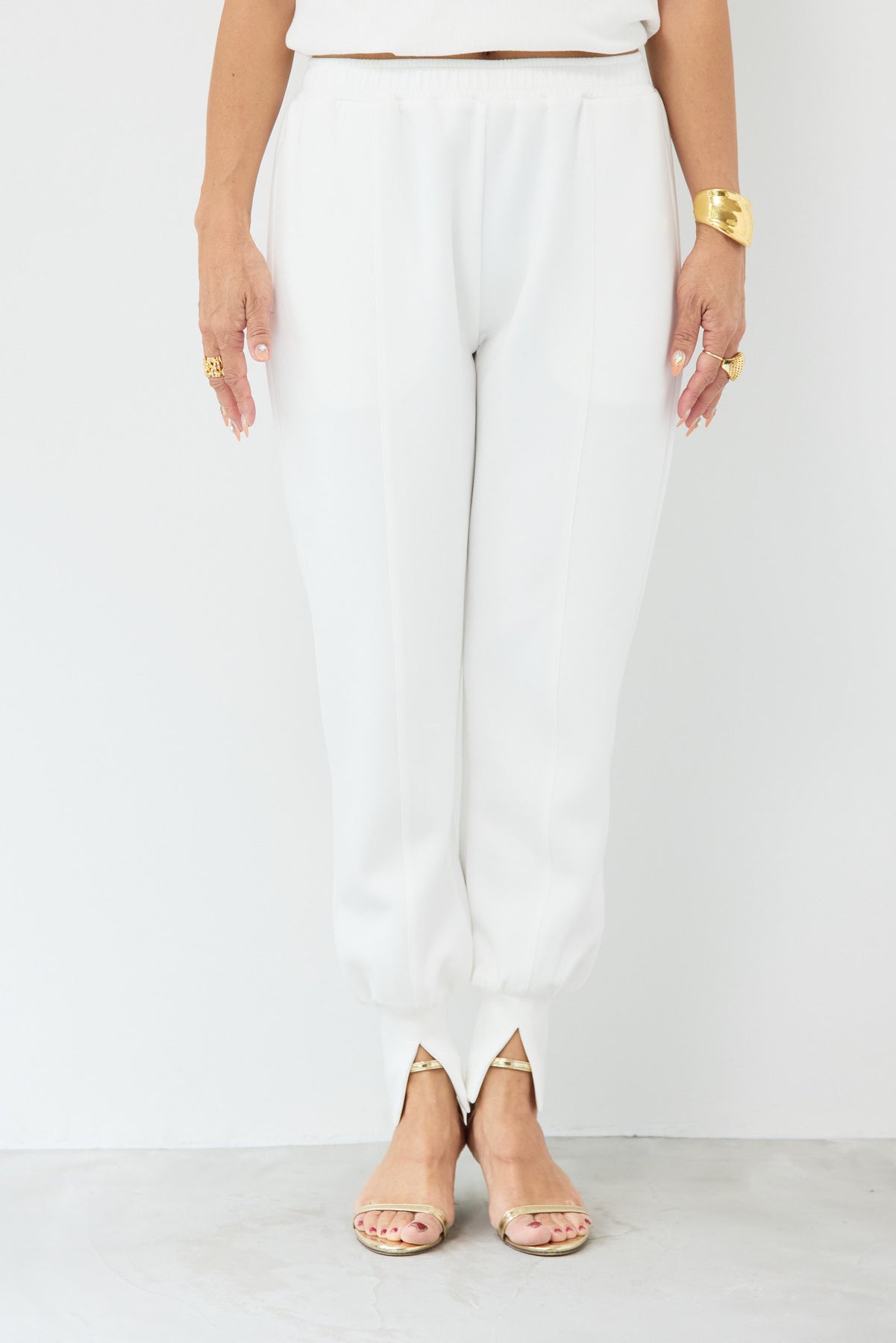 裾のスリットがさりげない抜け感を添える、表面感のあるダンボール素材のジョガーパンツ。センターライン入りで縦のラインを強調し、すっきりとした印象に。ソフトでモチっとした生地感が肌当たりも優しく、ストレスフリーな穿き心地です。カジュアルなデザインながらも洗練された雰囲気を演出できる1本。