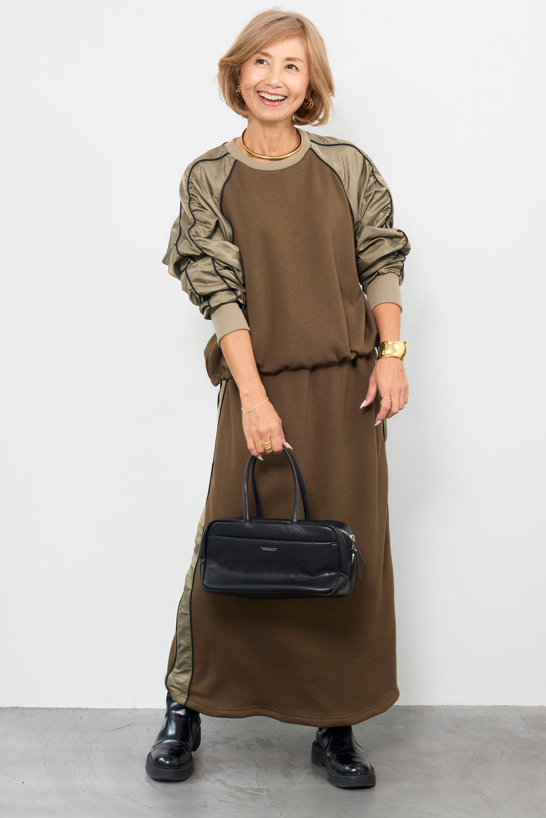 [SET]スタンドカラー中綿ショートブルゾン+タートルネックリブニットワンピース(2set)