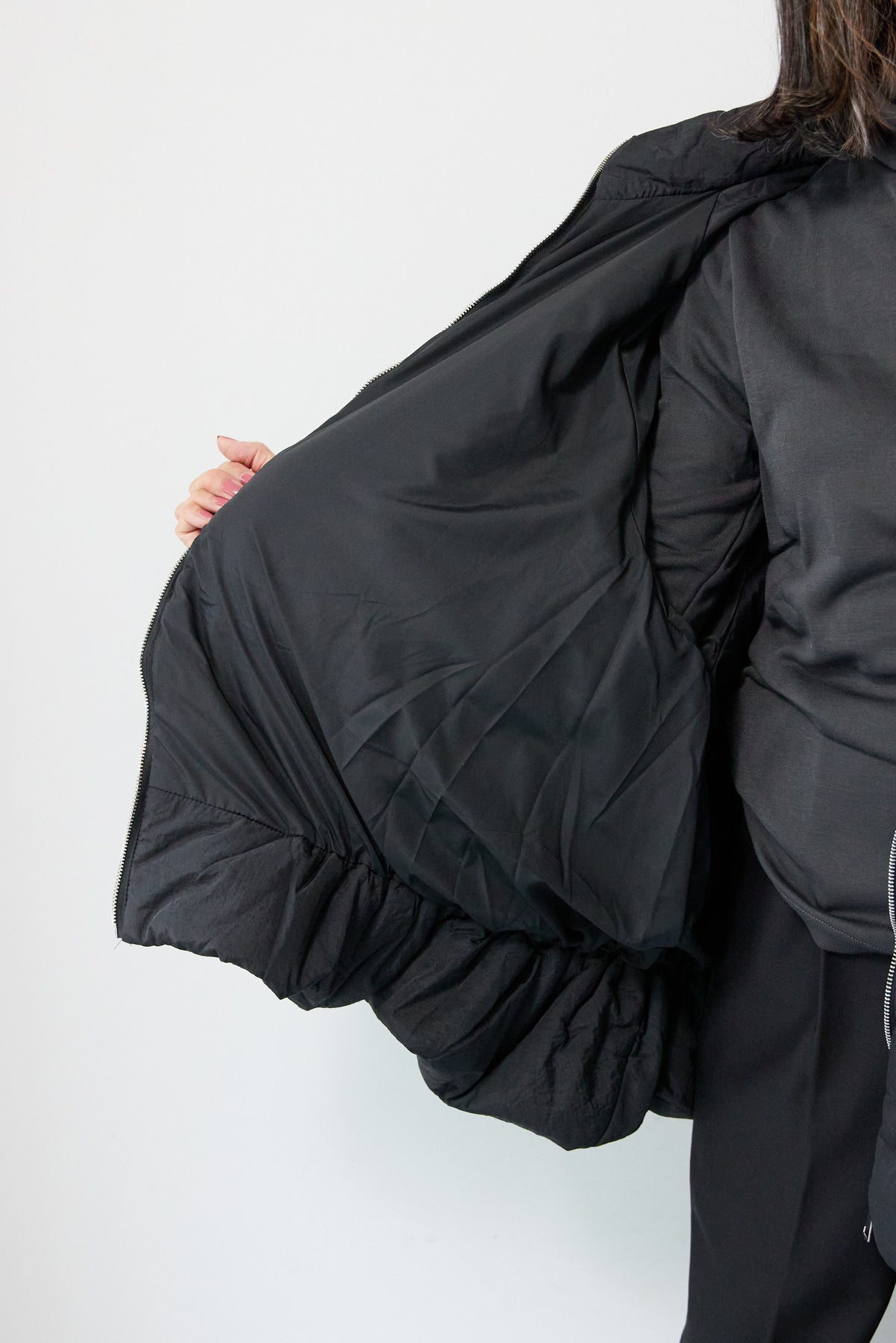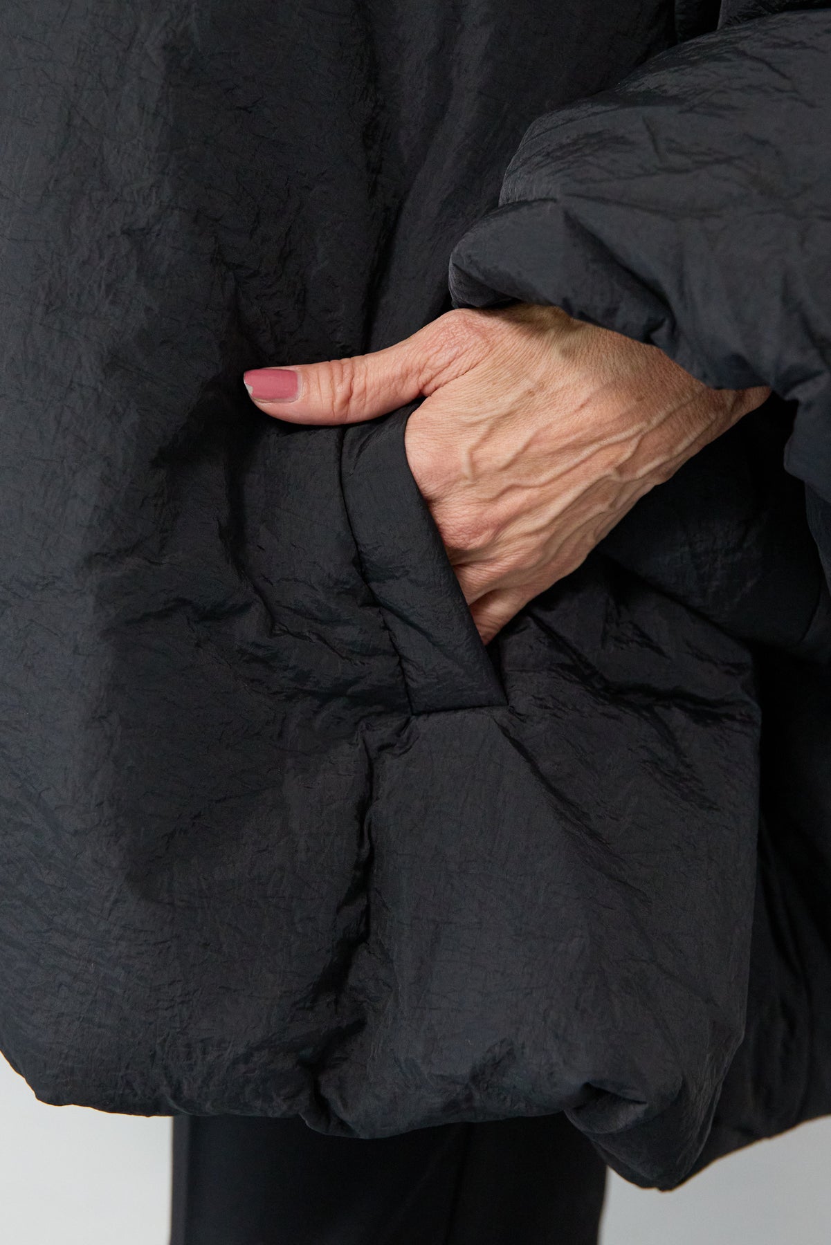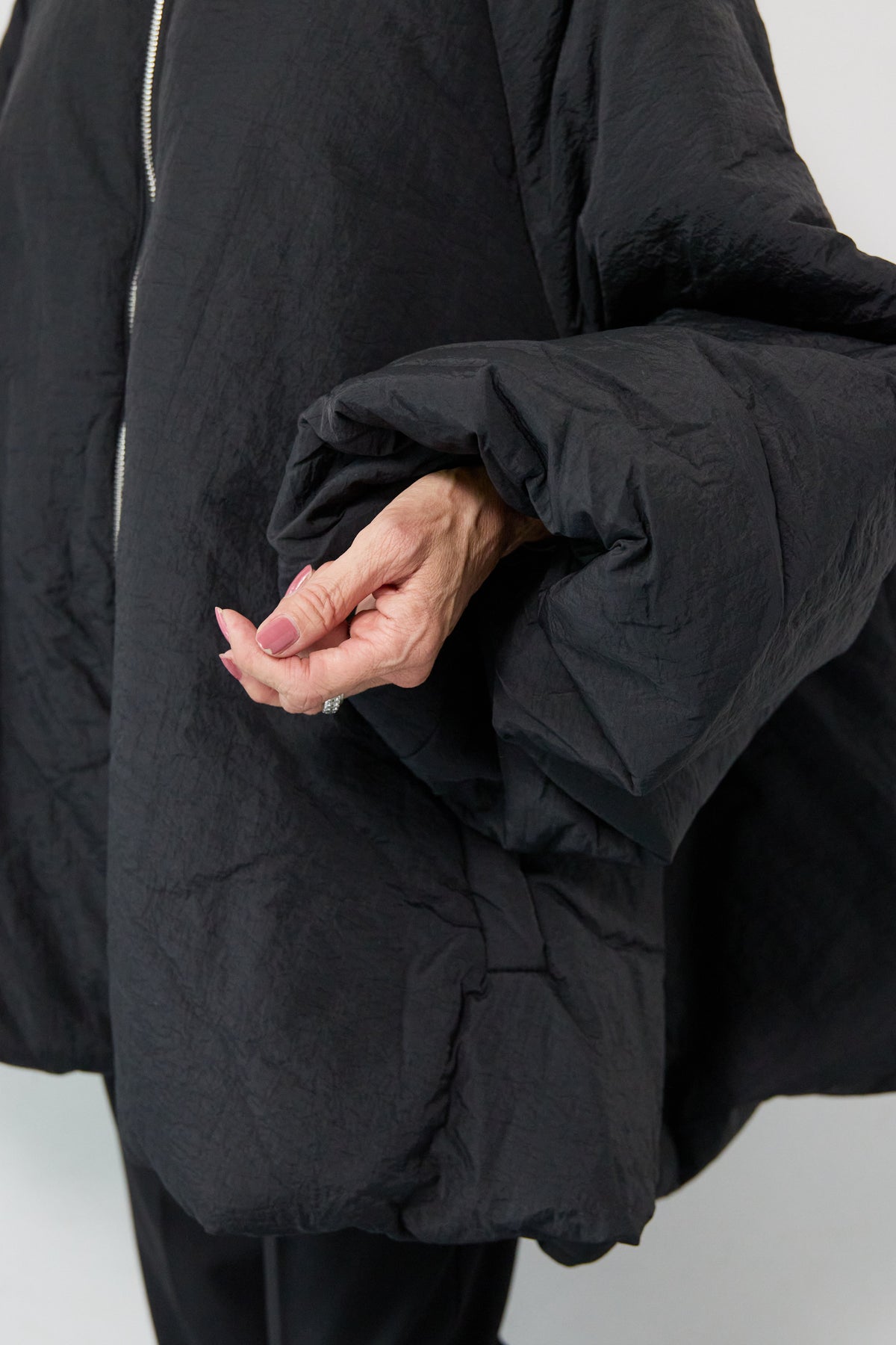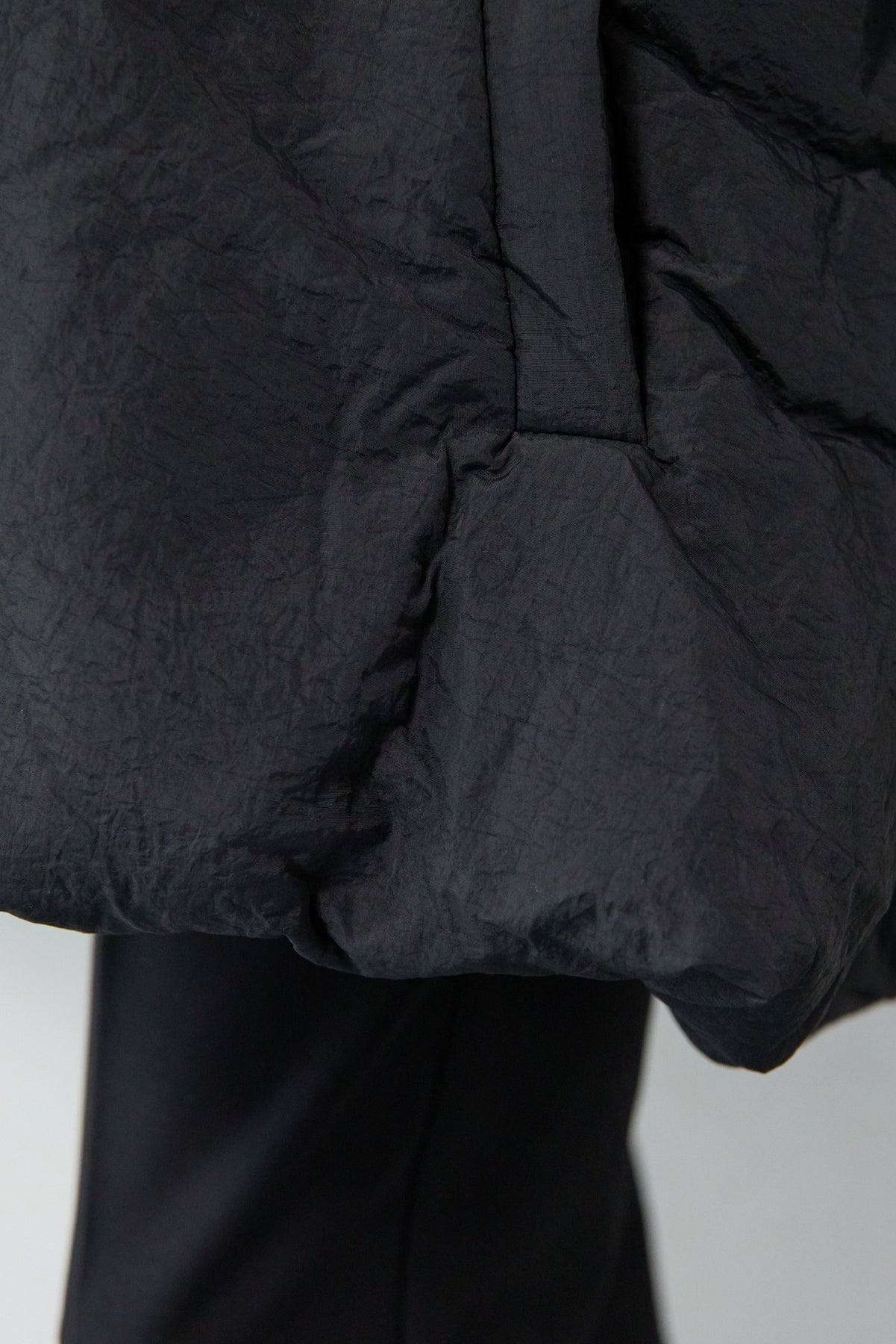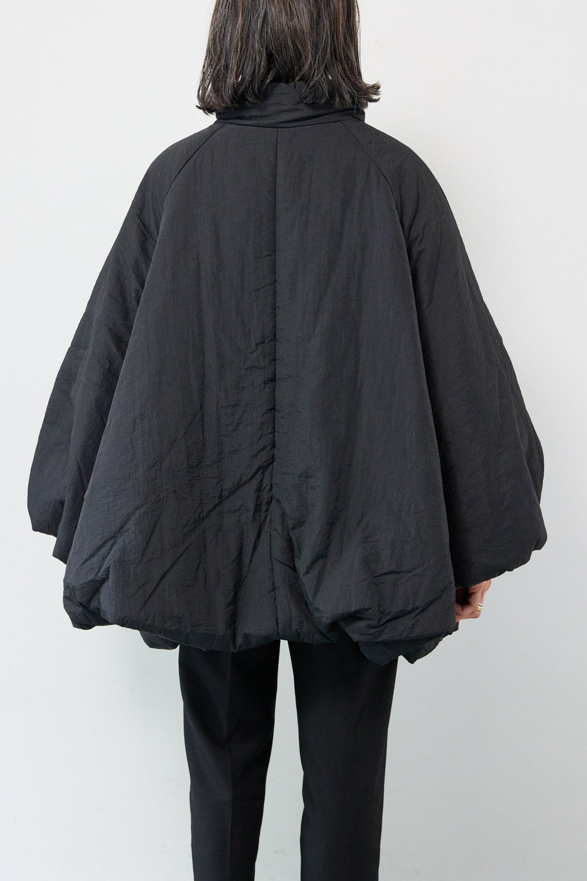 丸みのあるフォルムが特徴の中綿バルーンコート。軽やかな着心地ながらしっかりと保温性があり、寒い季節も快適に過ごせます。 ラグランスリーブのゆったりとしたシルエットで、厚手のニットの上からもストレスなく羽織れるデザイン。 艶を抑えたマットな質感が落ち着いた印象を与え、大人のカジュアルスタイルにぴったりです。 裾の丸みとふんわりとしたボリューム感が優しい雰囲気をプラスし、シンプルながら存在感のある一着です。