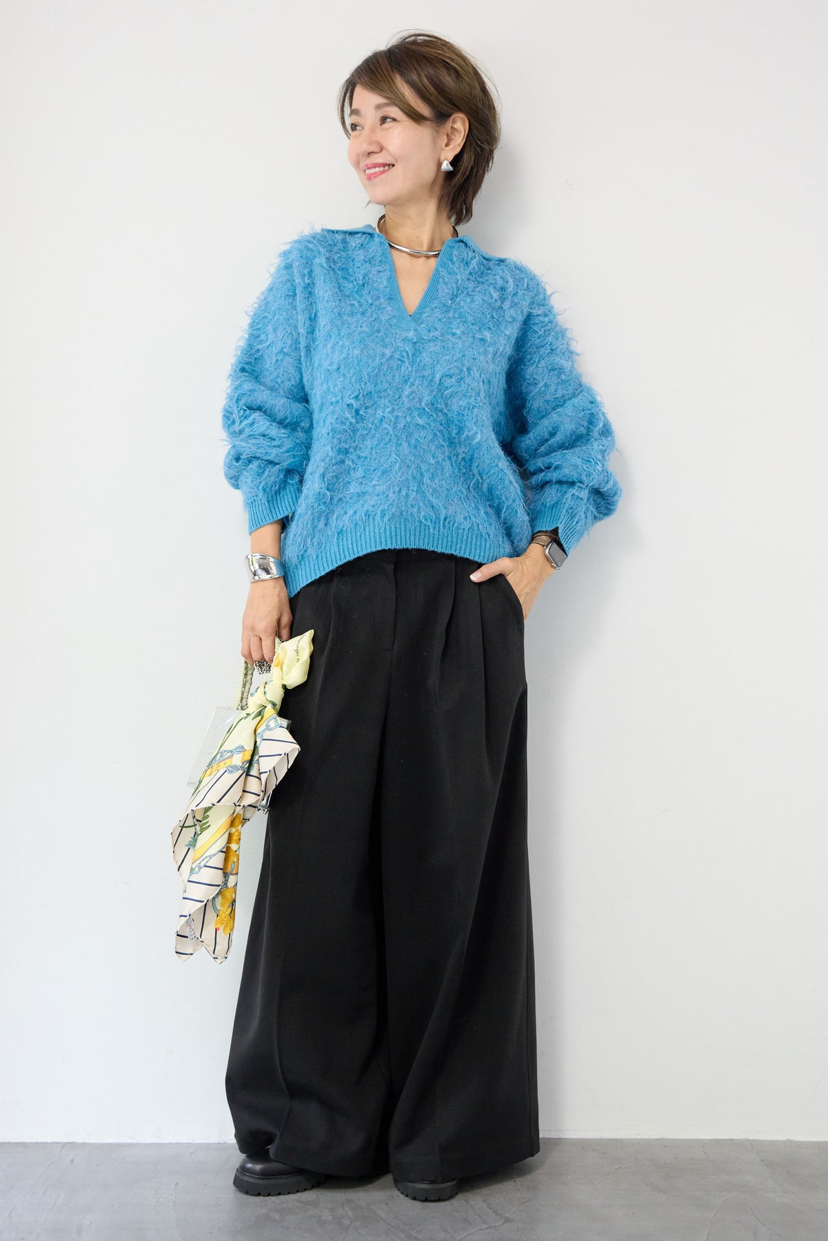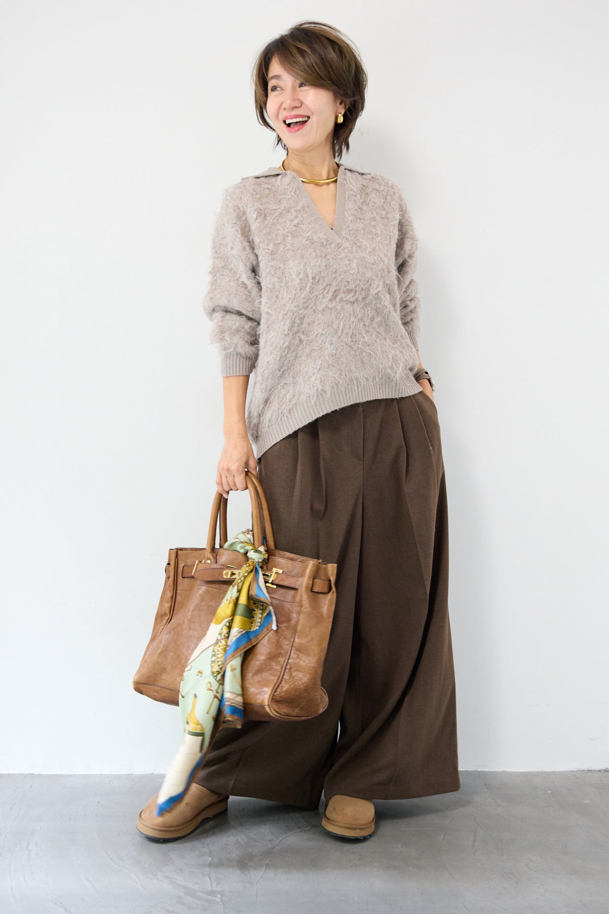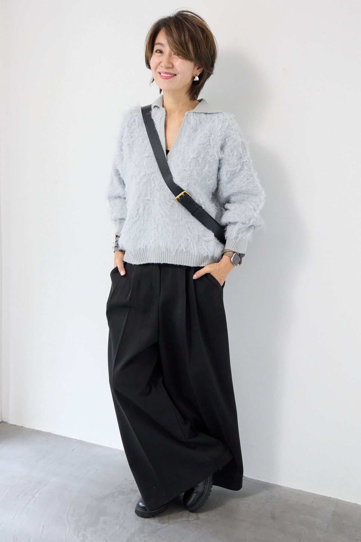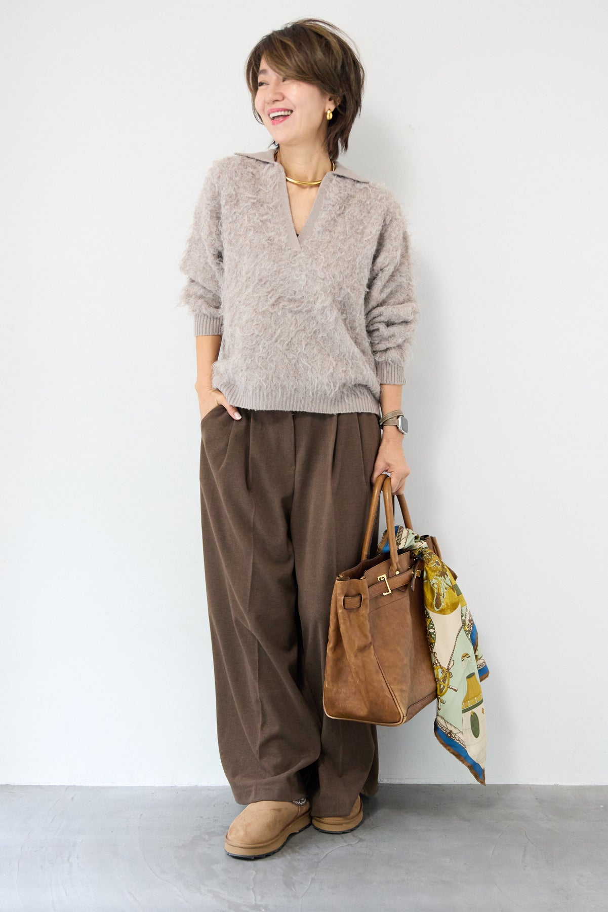 ウール見えする柔らかなメルトン素材で仕立てた、大人のためのワイドタックパンツ。フロントの深めタックが生み出す立体的なシルエットは、きちんと感と抜け感を両立。ゆったりとした落ち感がありながらも、縦のラインを美しく演出してくれる一本です。バックウエストはゴム仕様で、長時間の着用もストレスフリー。サイドポケット付きで実用性も◎。カジュアルなニットと合わせてリラックスした大人スタイルに、シャツやジャケットと合わせて洗練されたモードな印象にも。