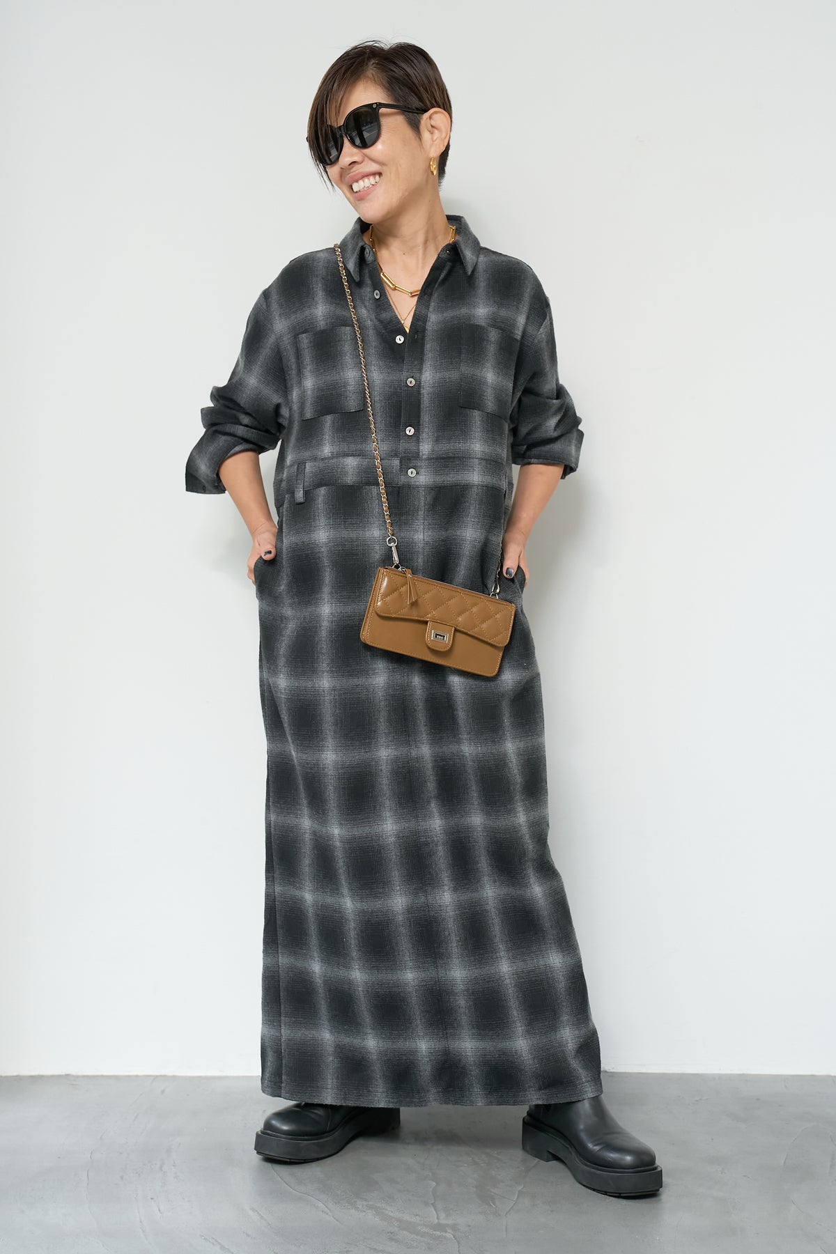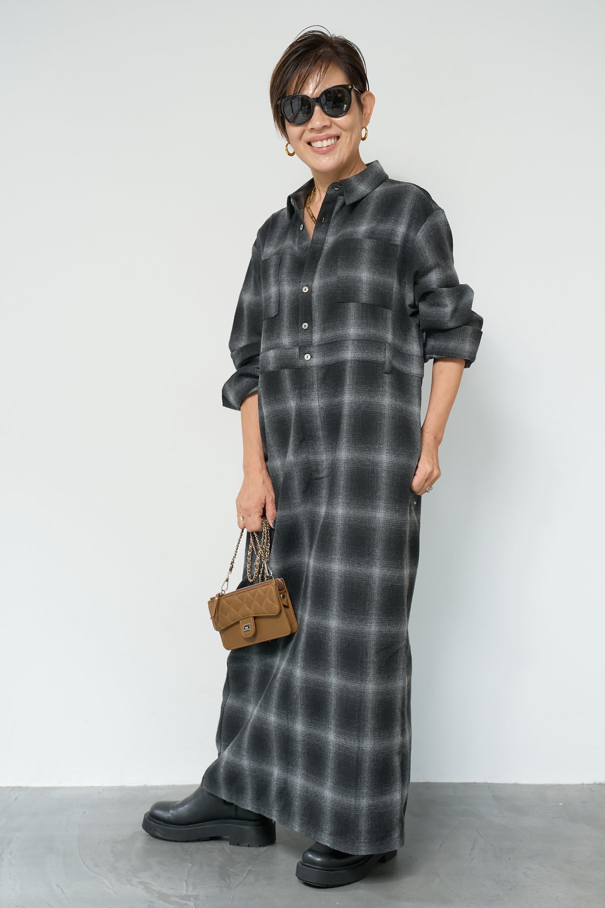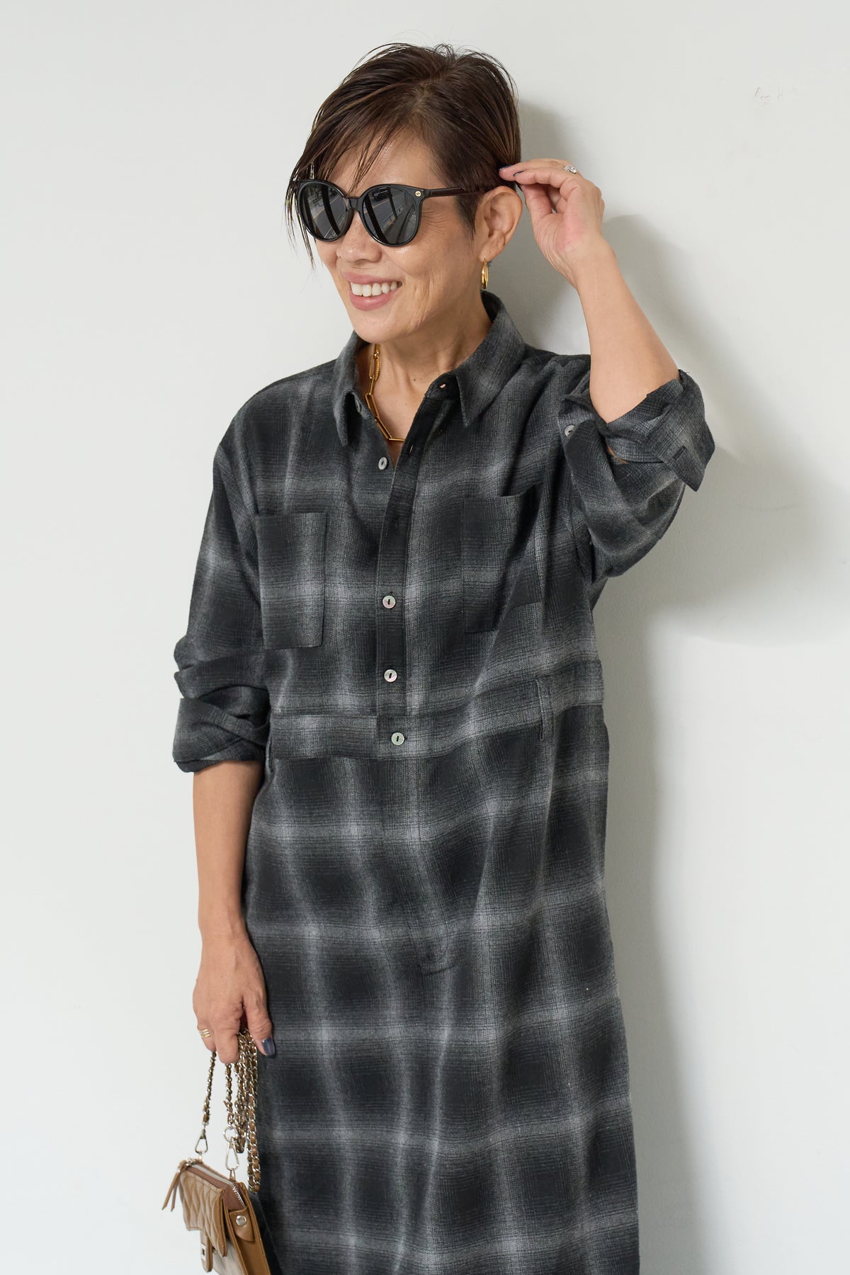 チェックシャツワンピース