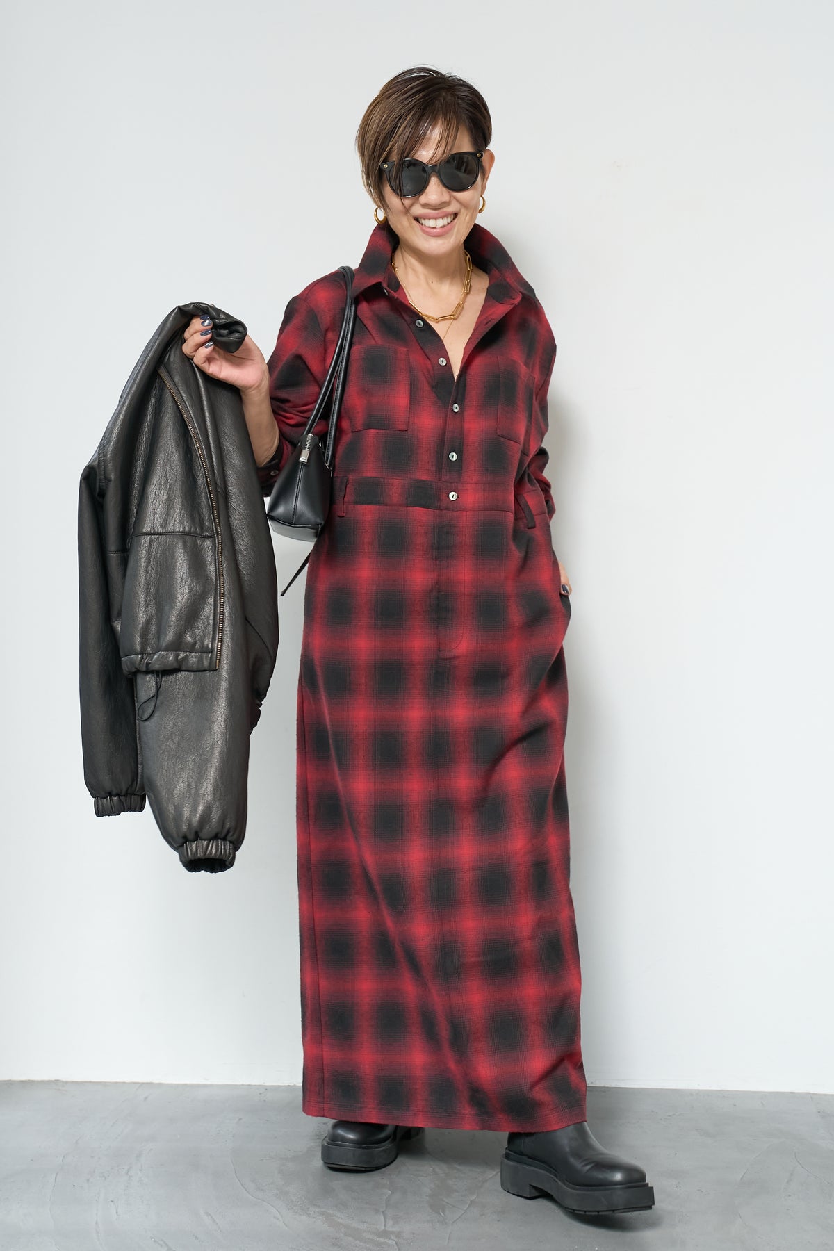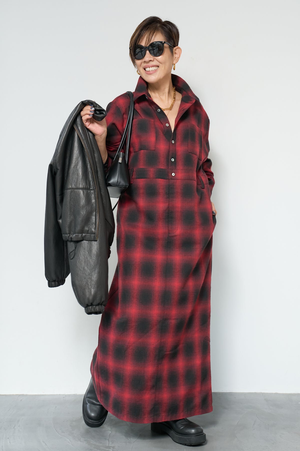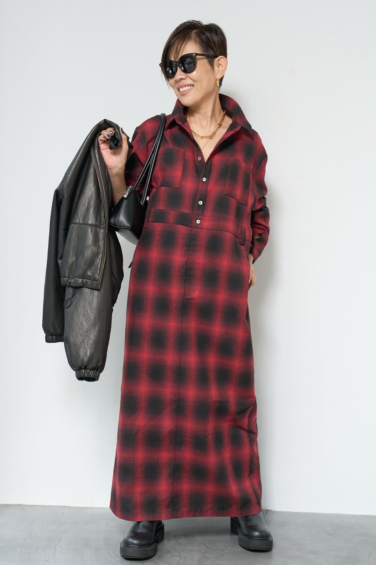 チェックシャツワンピース