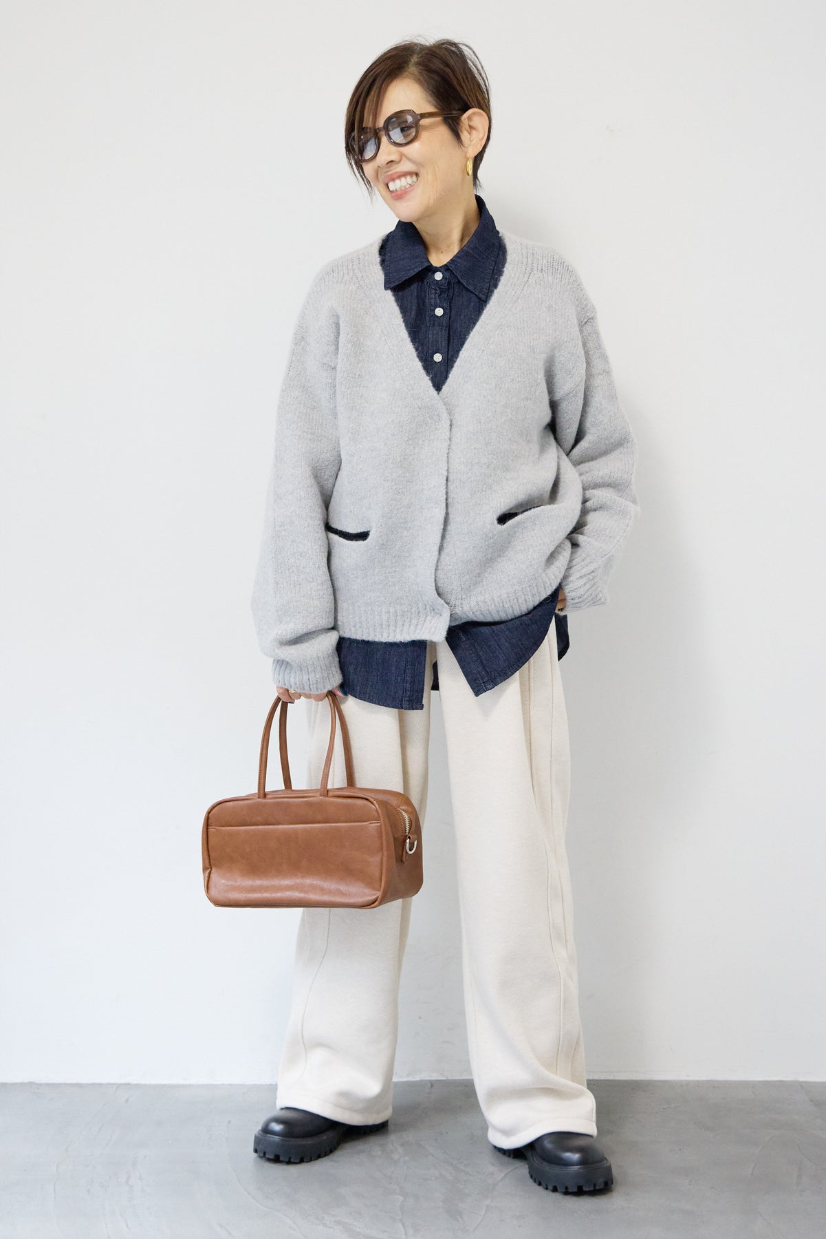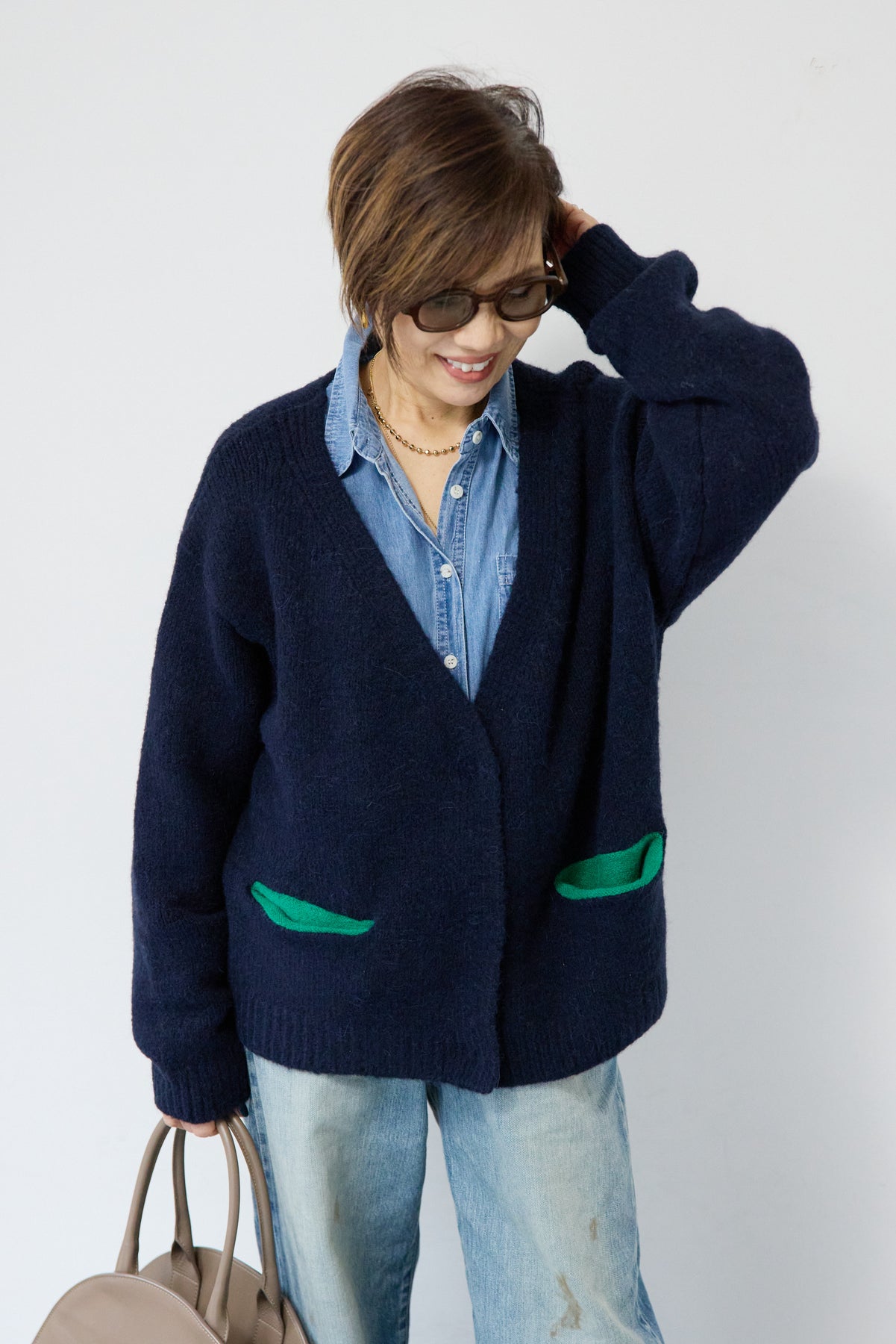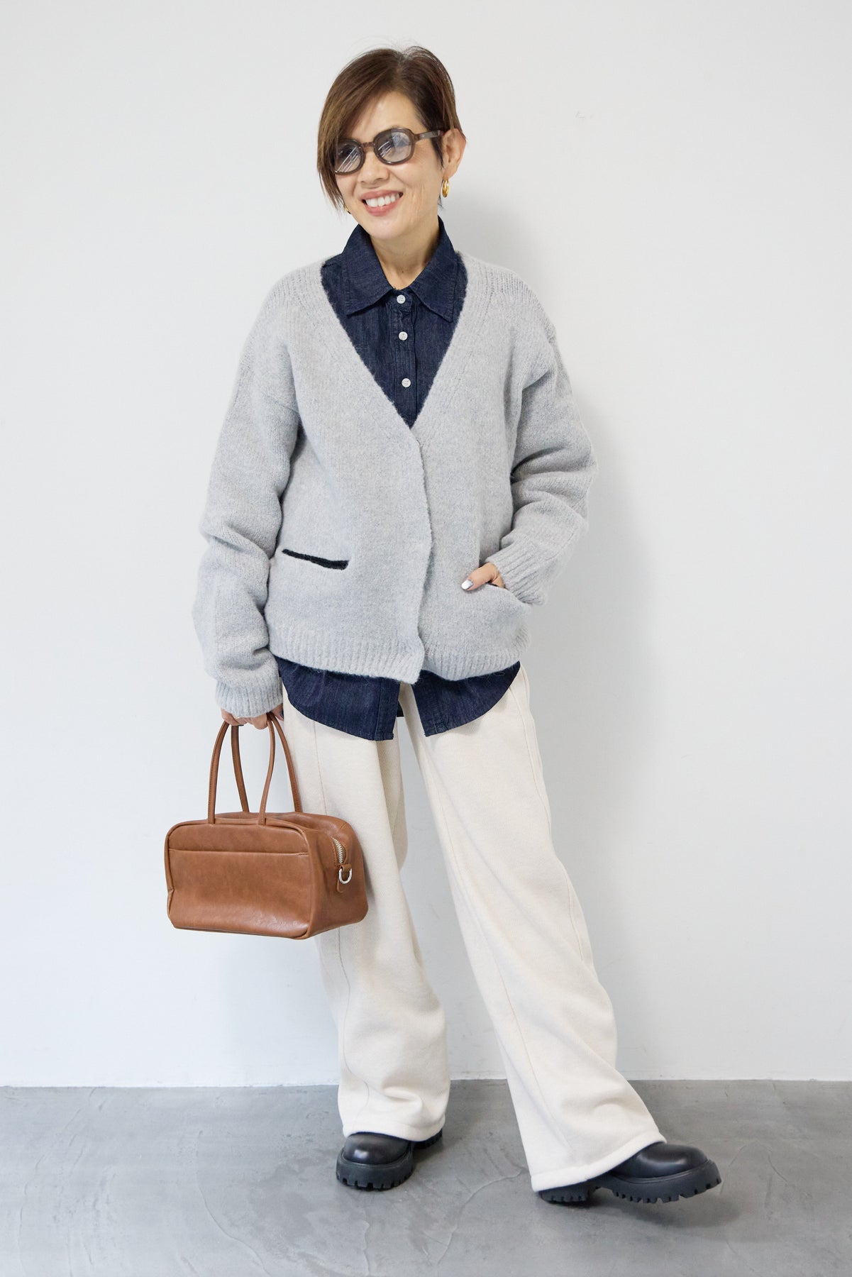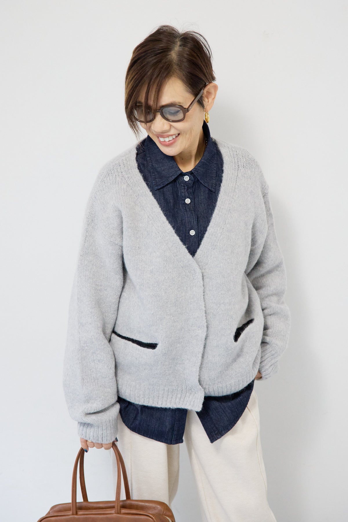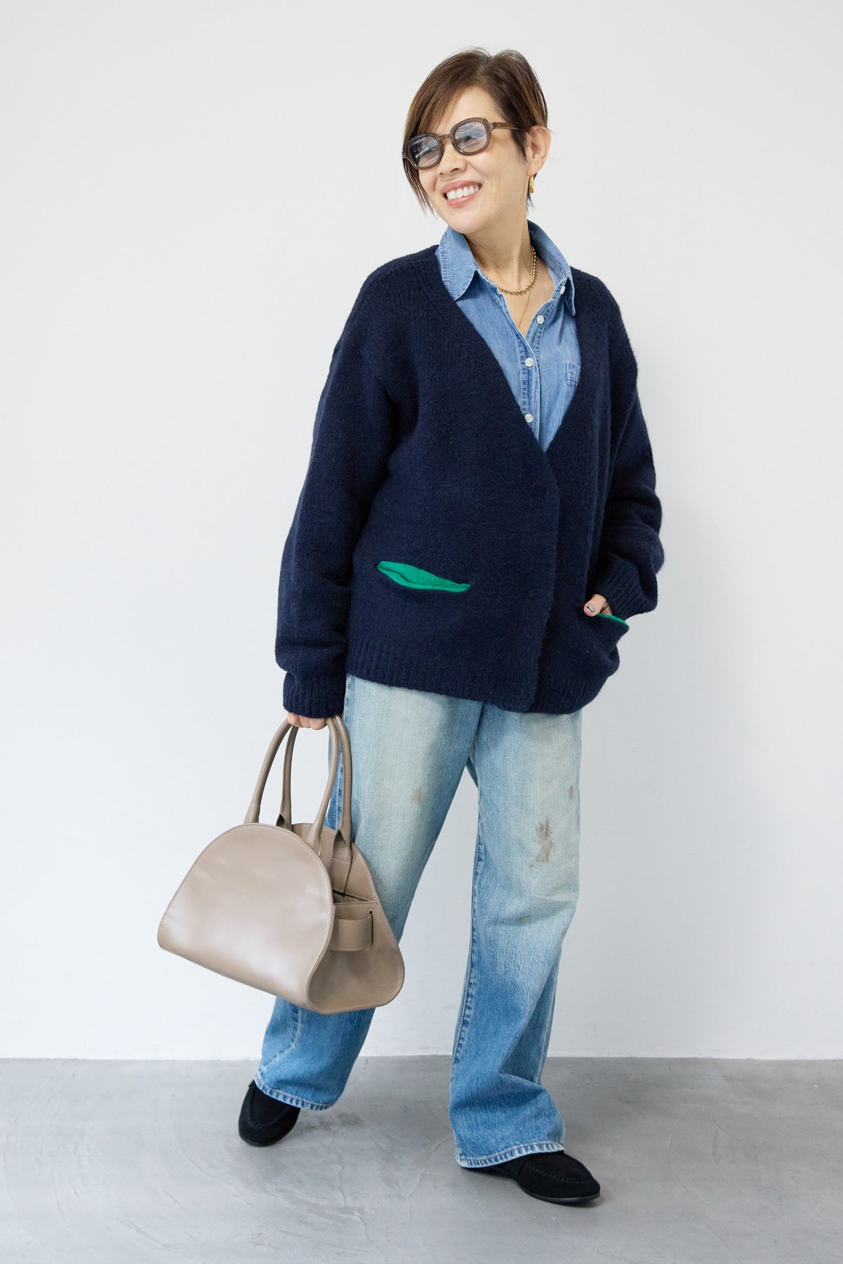 ほどよい軽さとラフな抜け感が魅力の「ライトオンスデニムシャツ」。柔らかく、着始めから身体に馴染むライトオンスデニムを使用し、デニム特有のごわつきがなく、一日中快適に着られる一枚です。全体はリラックス感のあるオーバーサイズシルエット。肩の落ちたドロップショルダーで、大人の余裕あるこなれ感を演出してくれます。前を閉じて1枚着にするのはもちろん、羽織りとしても使いやすく、季節を問わずコーディネートに取り入れやすいアイテムです。 ライトブルーはやわらかな色味でカジュアルになりすぎず、ネイビーはシックで上品な印象に。どちらもデニムならではの風合いがあり、着るほどに自分らしい味わいが楽しめます。胸元には便利なポケット付き。フロントのボタンは小ぶりで上品な白ボタンを採用し、カジュアルアイテムでありながら洗練された雰囲気に仕上げました。