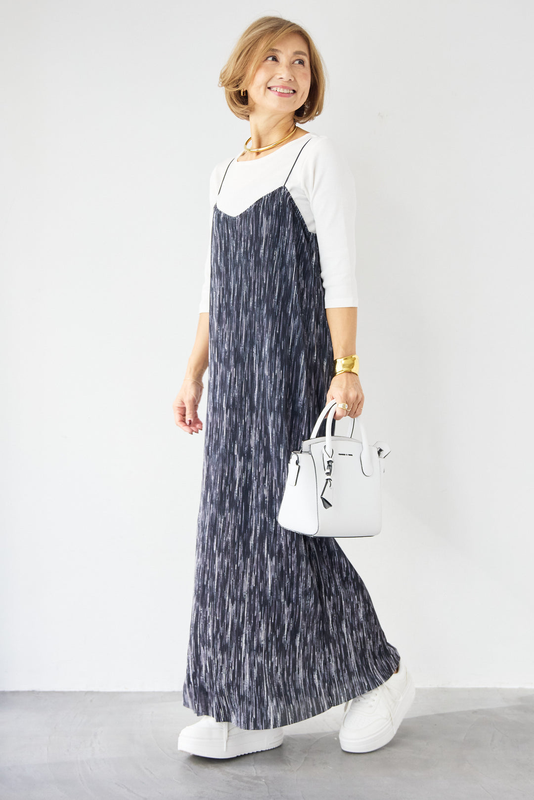 ニュアンス柄プリーツワンピース