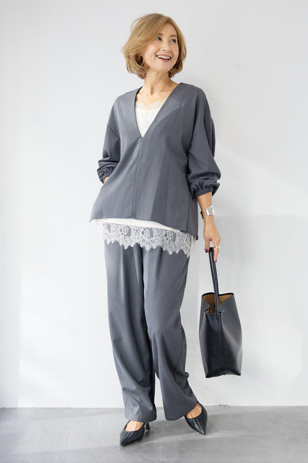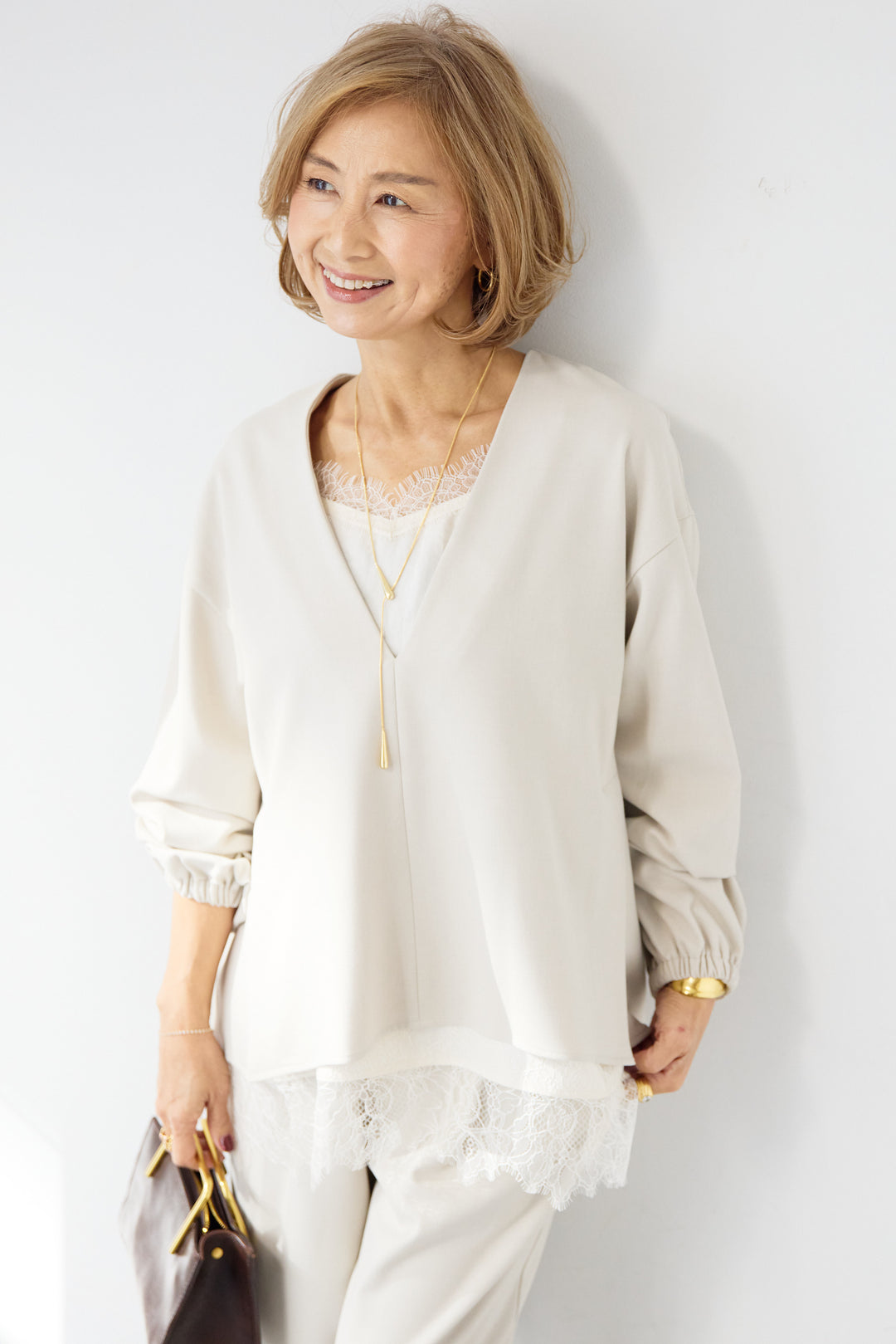 深Vネック・ボリュームスリーブプルオーバー