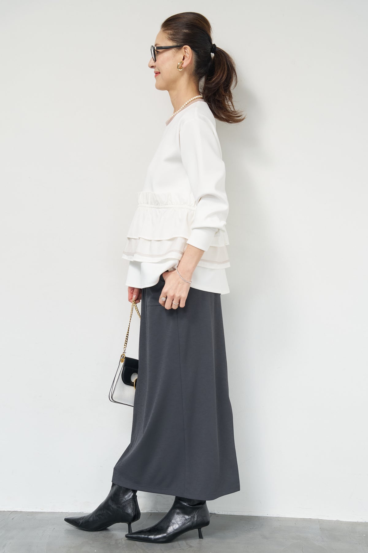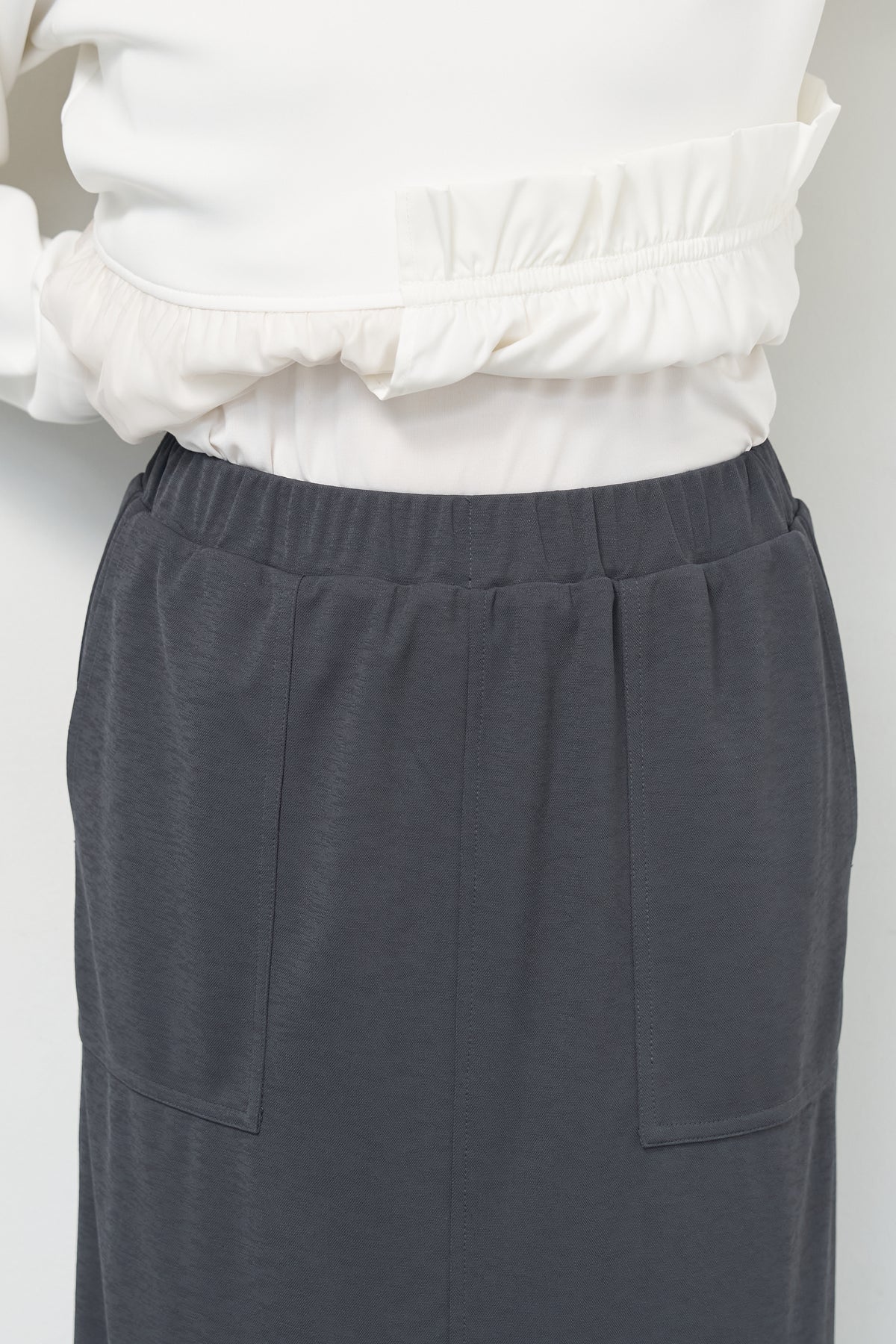 リラックス感ときれい見えを両立した、大人のためのニットスカート。表情のあるスラブ糸を使用したカノコ編み素材が、シンプルながらも奥行きのある印象を演出します。ウエストは総ゴム仕様で、締め付け感のない快適な穿き心地。ヒップラインを拾いにくいストレートシルエットに、縦の切り替えラインを入れることで、すっきりとした印象に仕上げています。フロントには実用性のあるポケット付きで、デザインのアクセントにも。バックには足さばきの良いスリットを施し、ロング丈でも軽やかな動きを実現。ニット素材ならではのストレッチ性で、デイリーからお出かけまで幅広いシーンに活躍します。