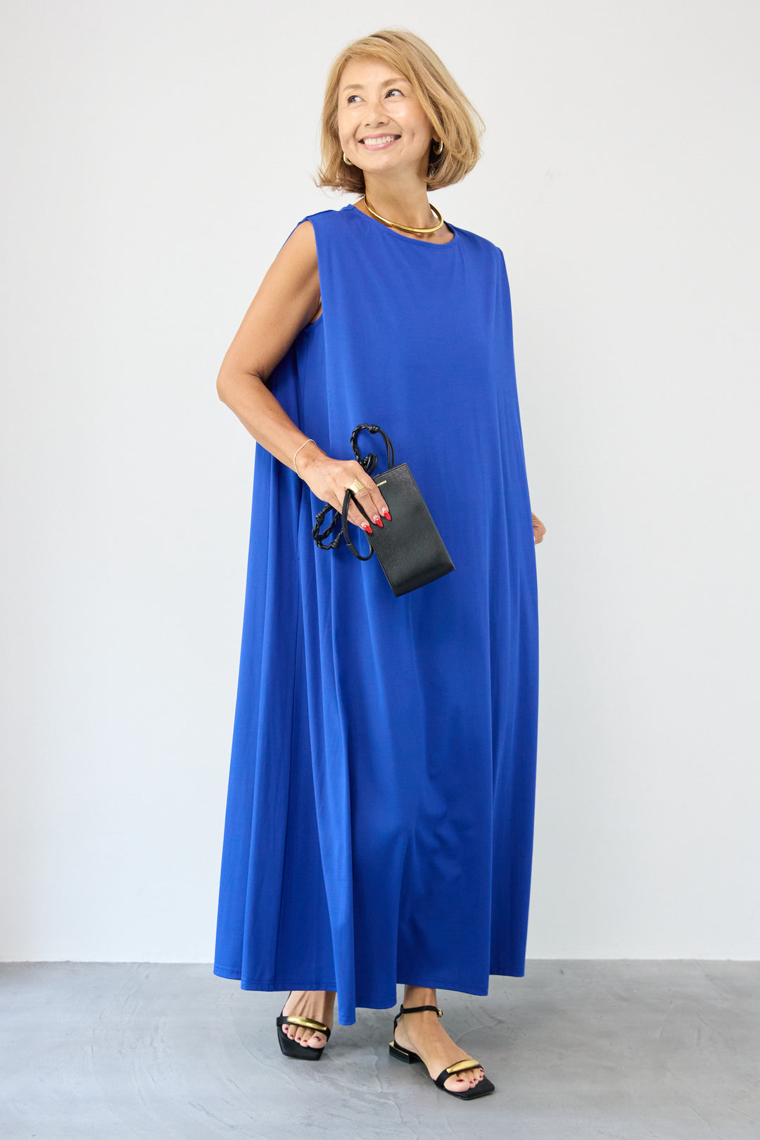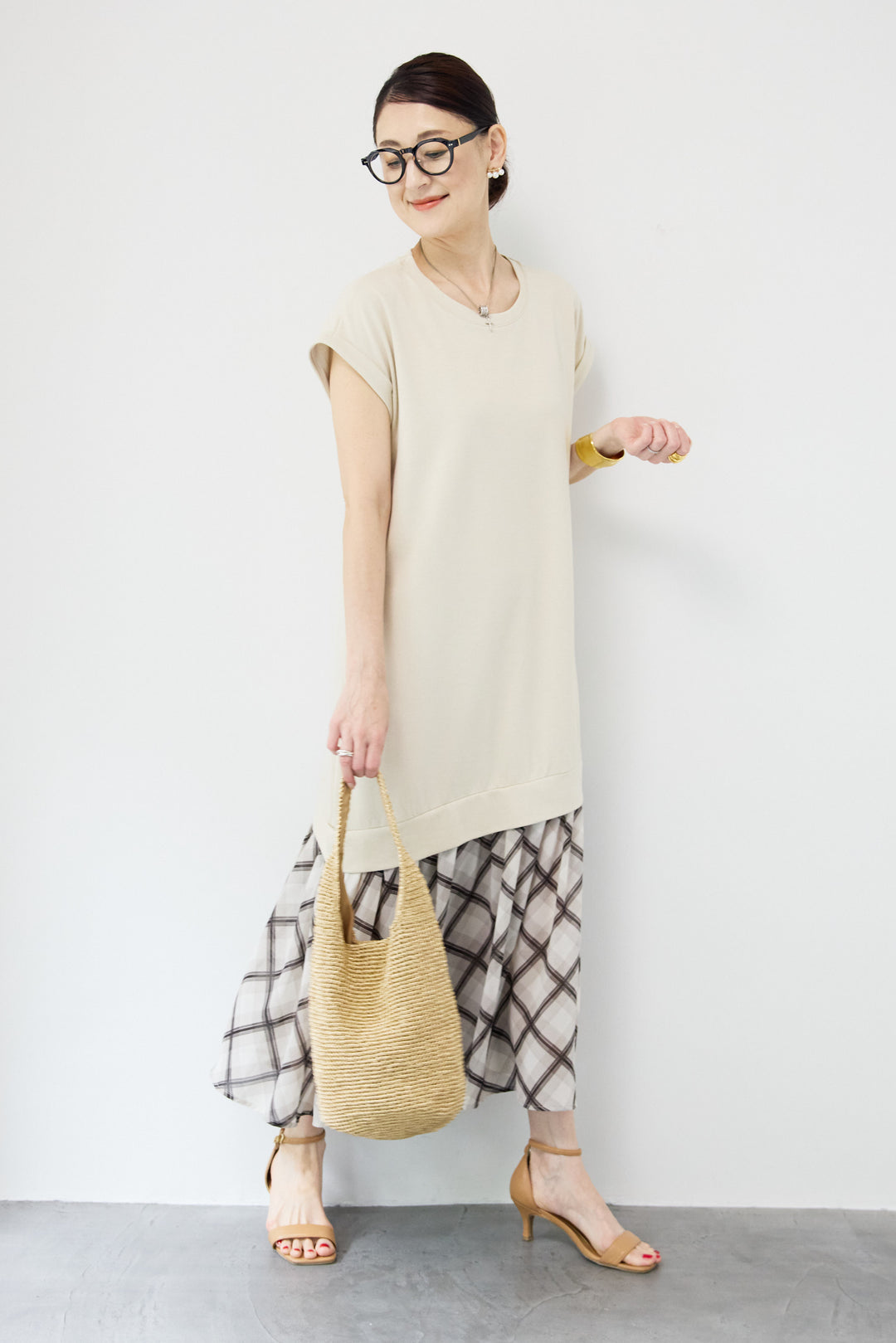 アコーディオンプリーツ切替ワンピース+シャギーニットベスト