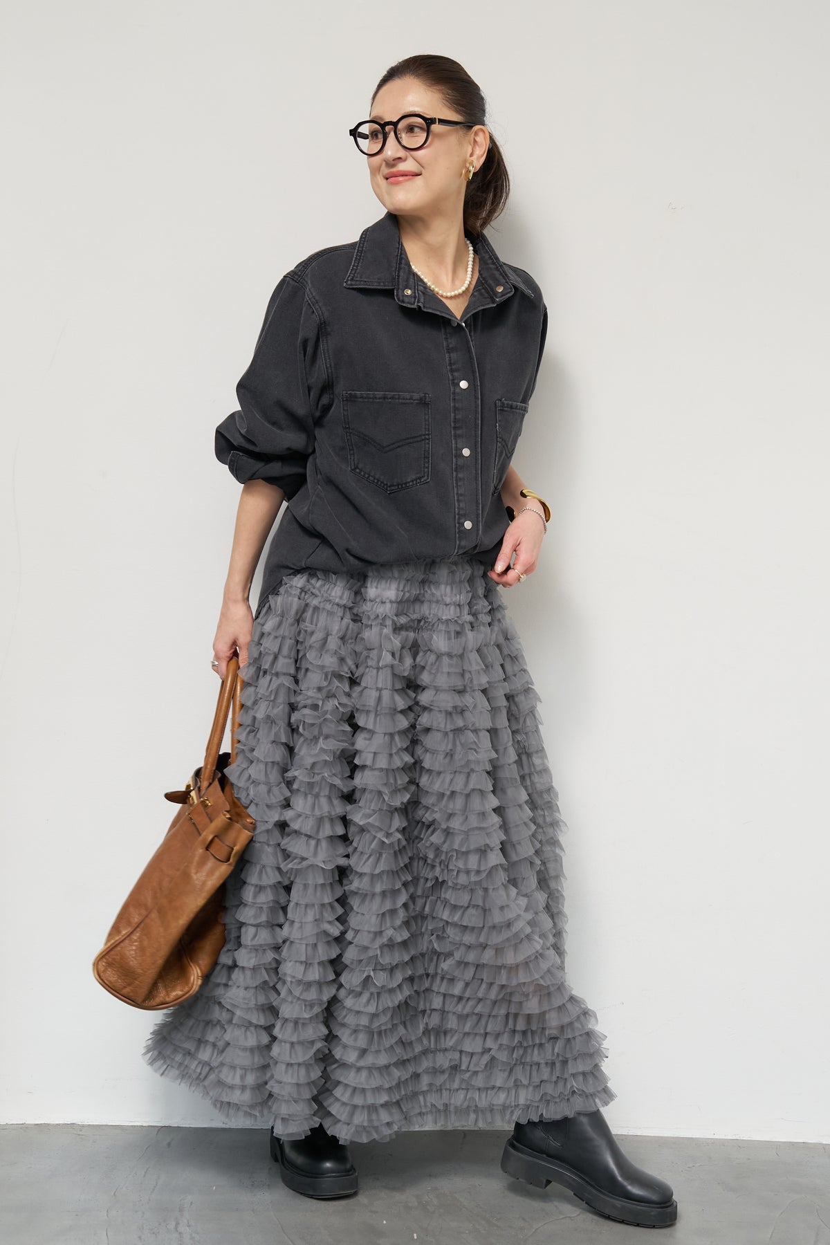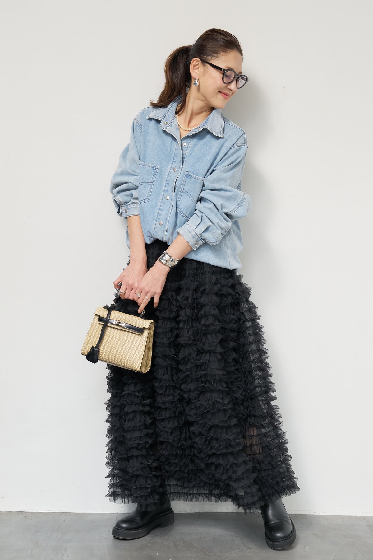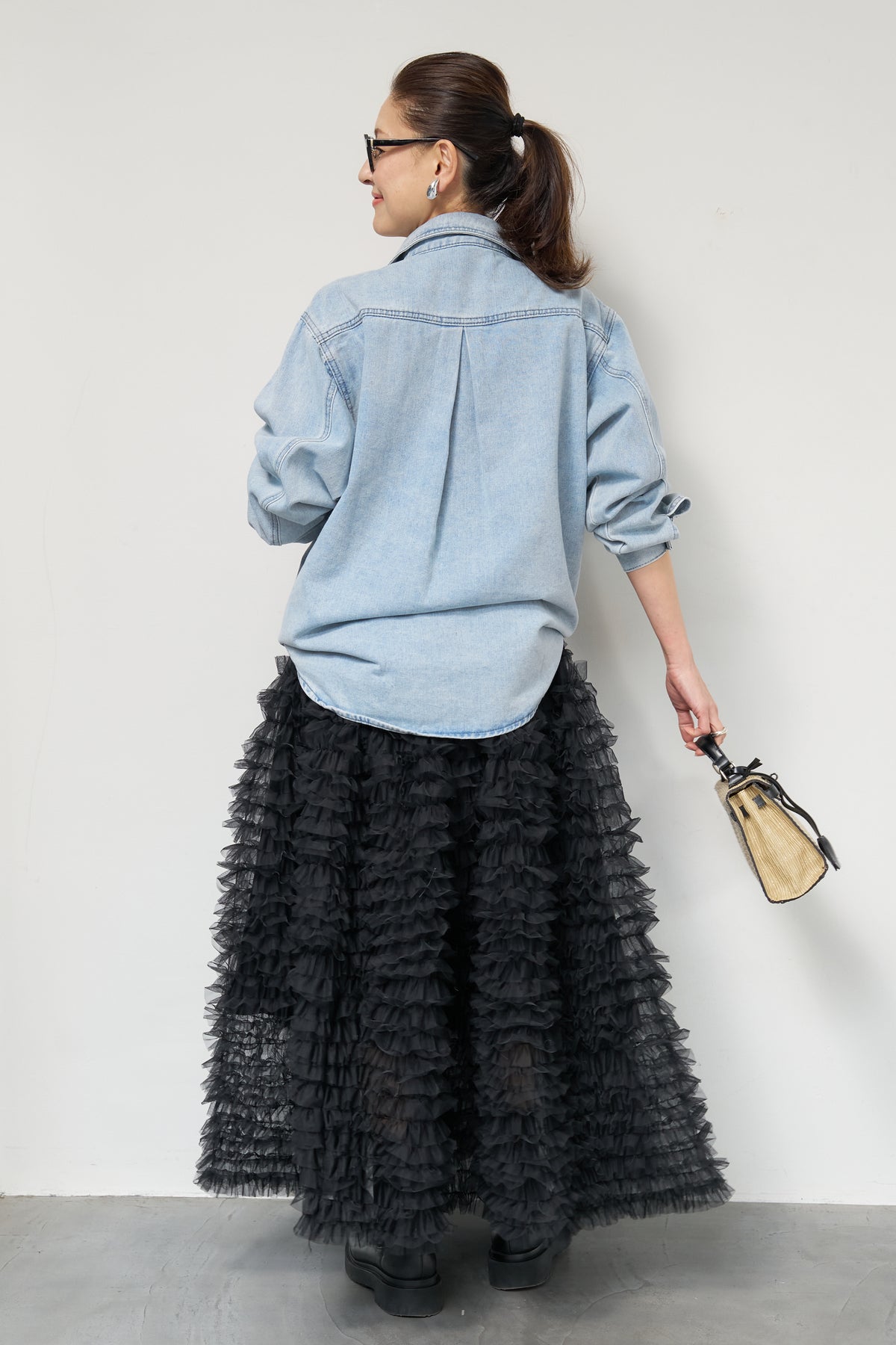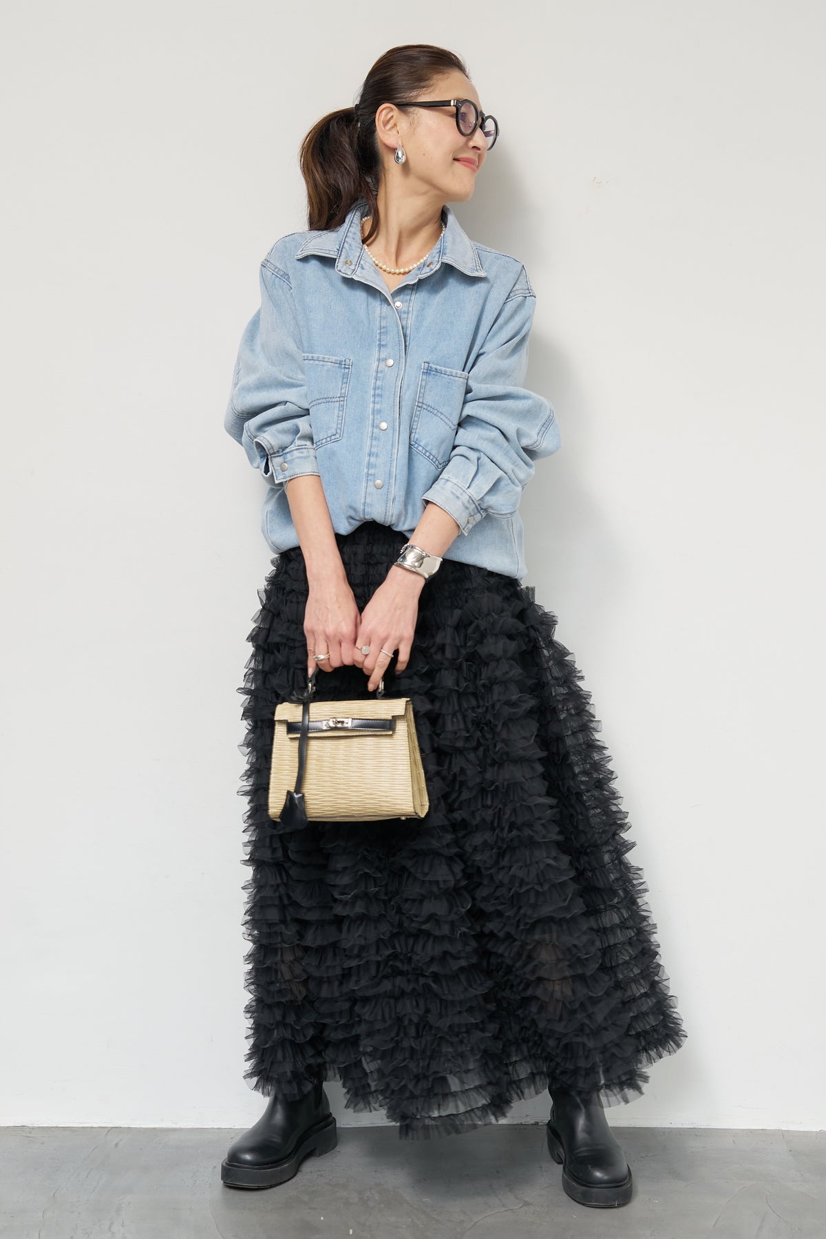 ソフトデニムオーバーシャツ/チュールティアードスカート