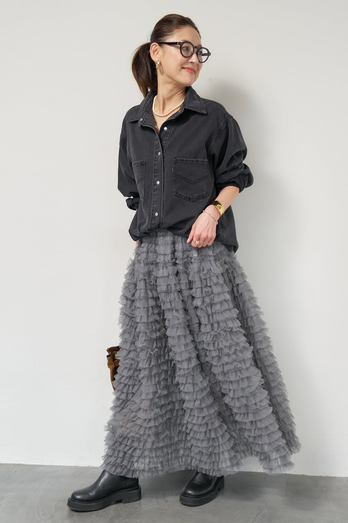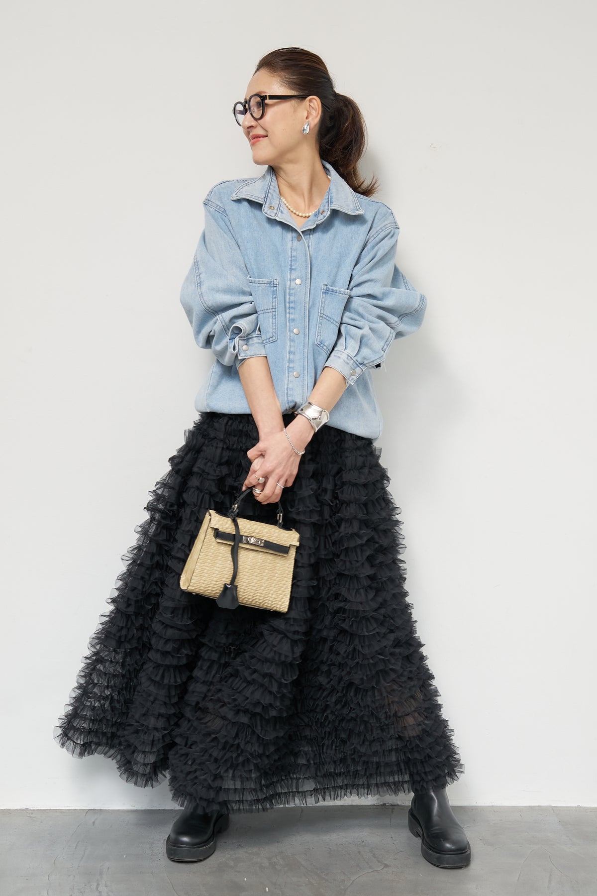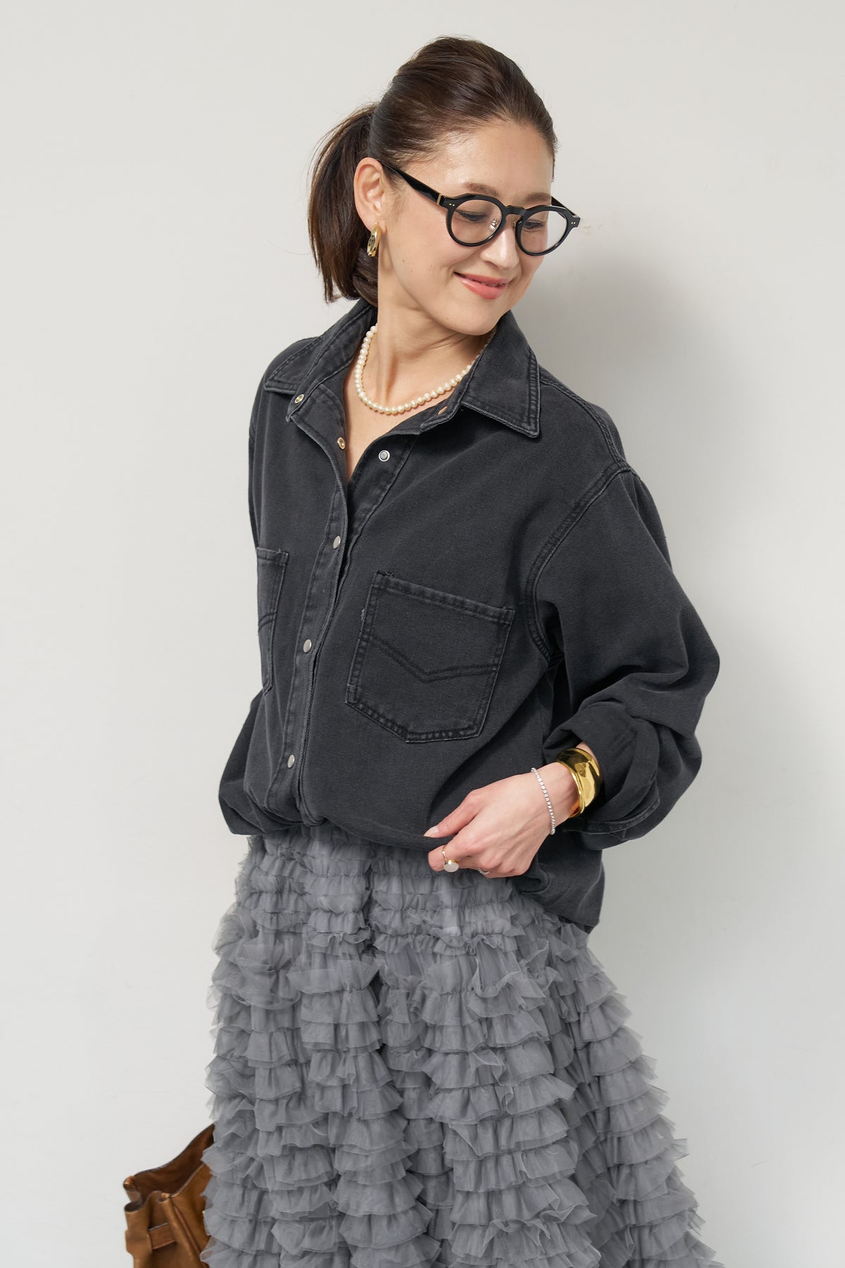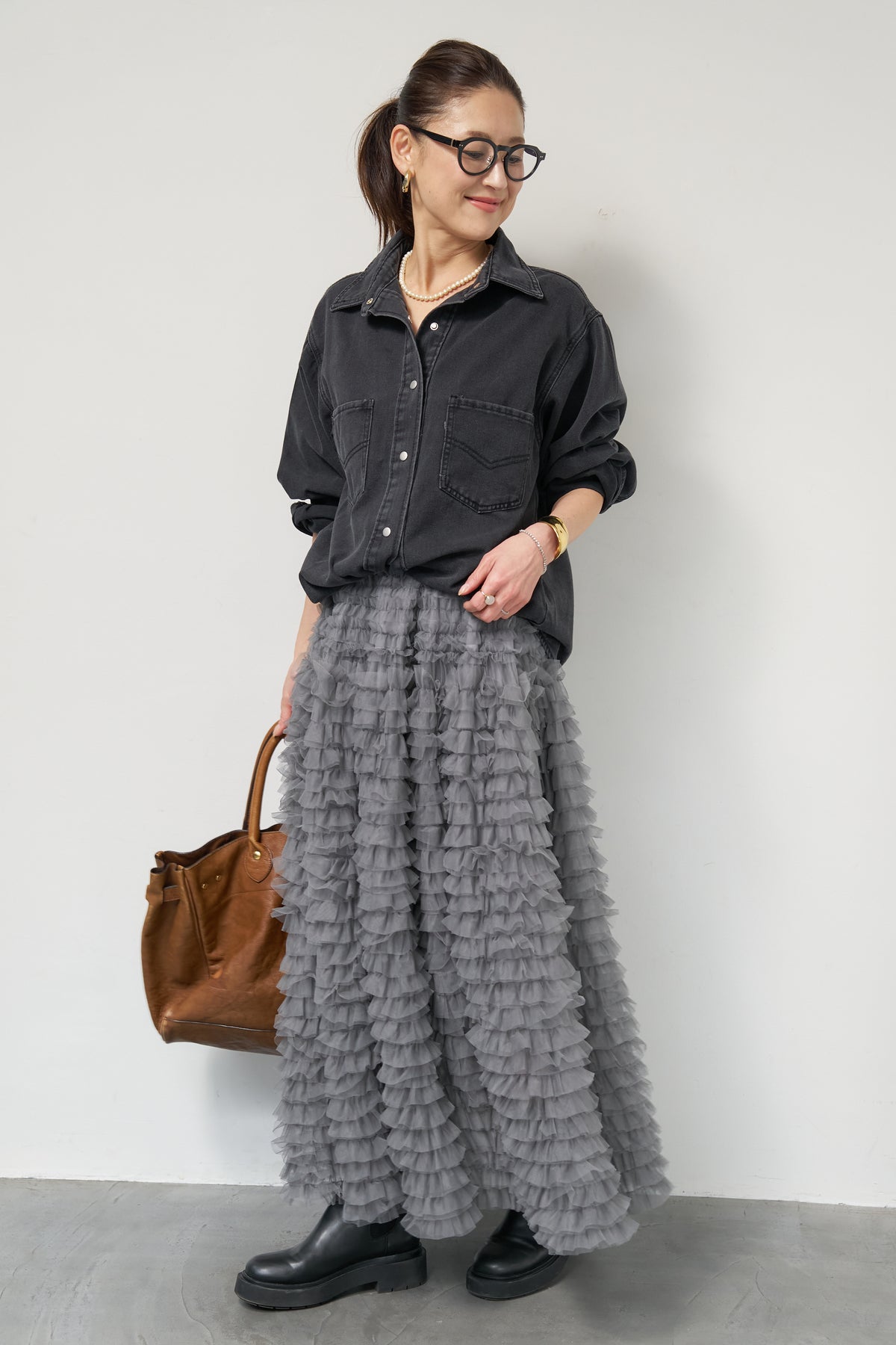 ソフトデニムオーバーシャツ/チュールティアードスカート