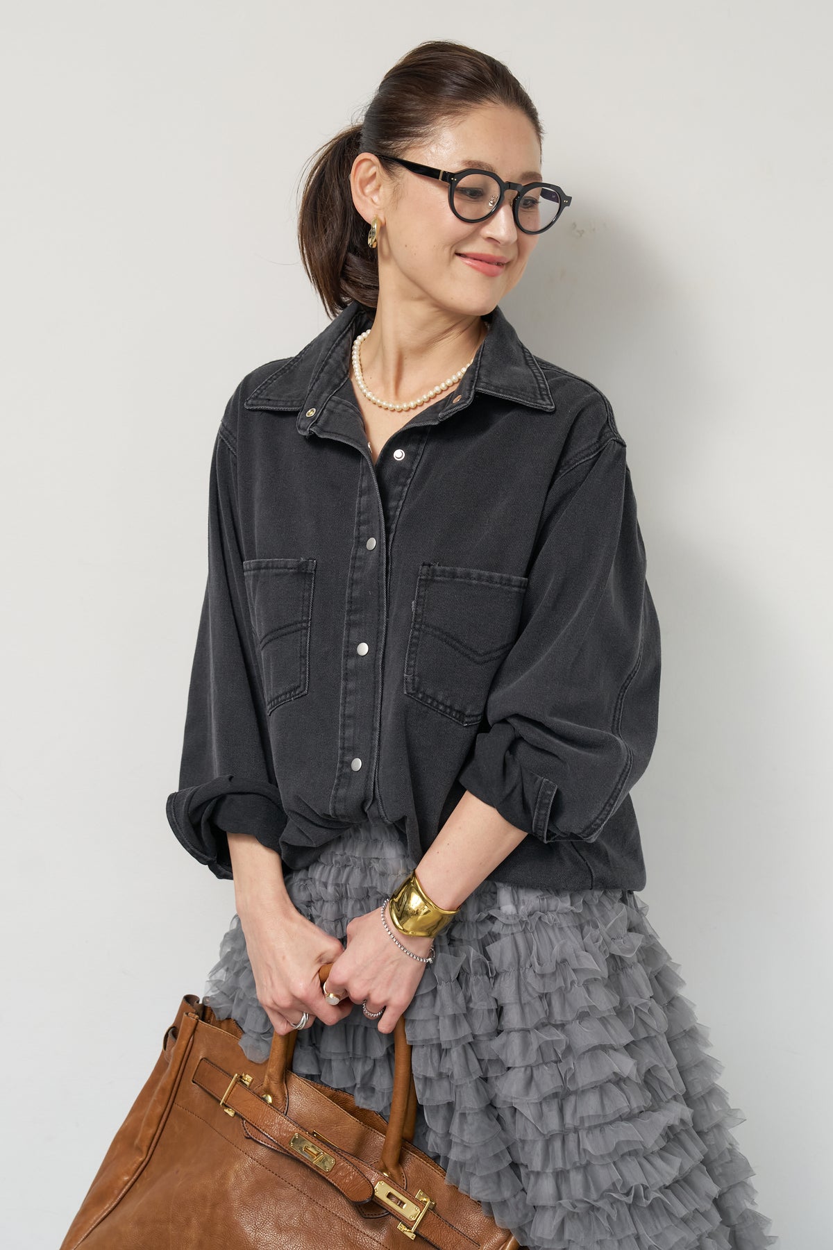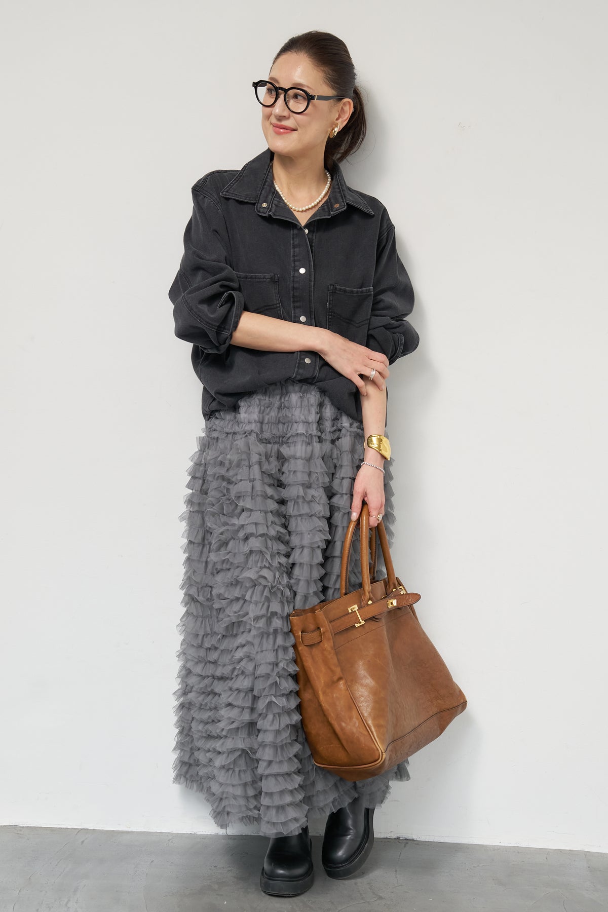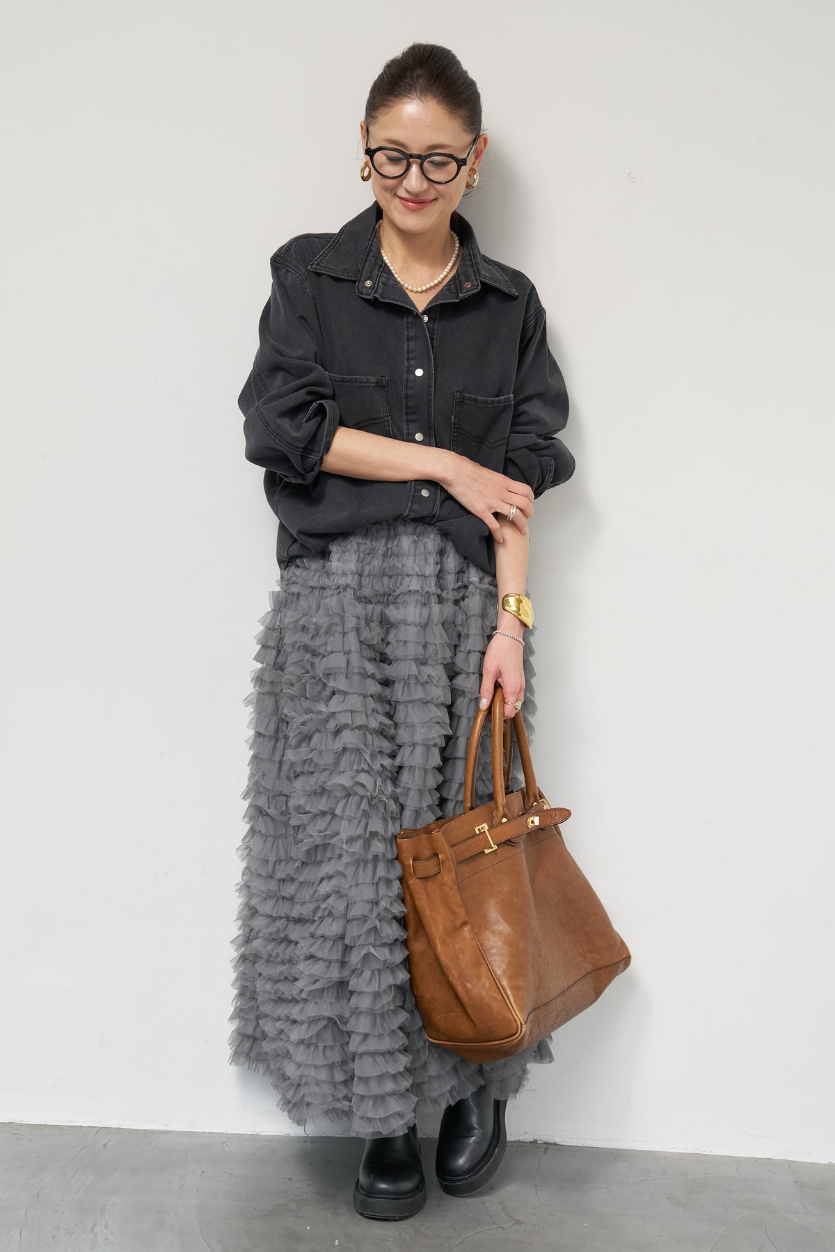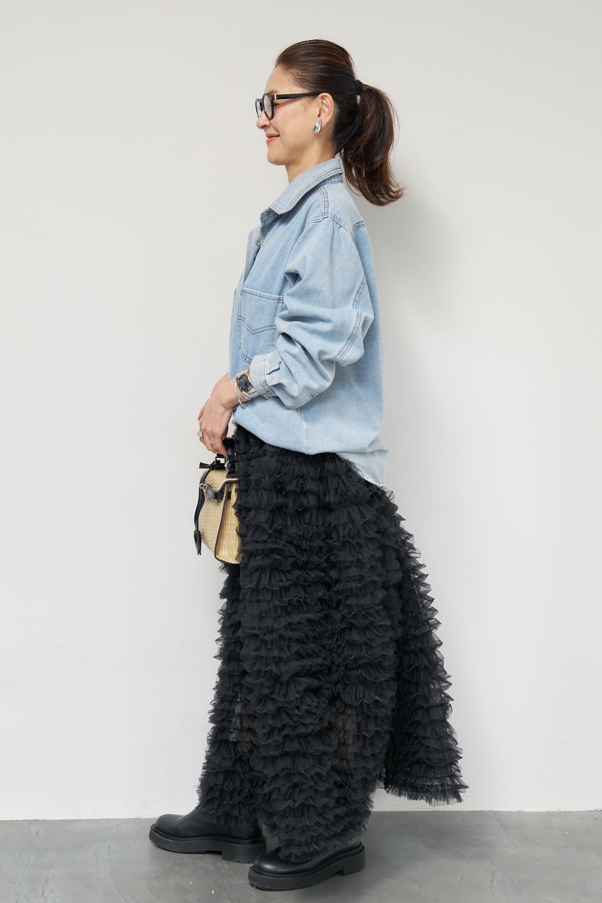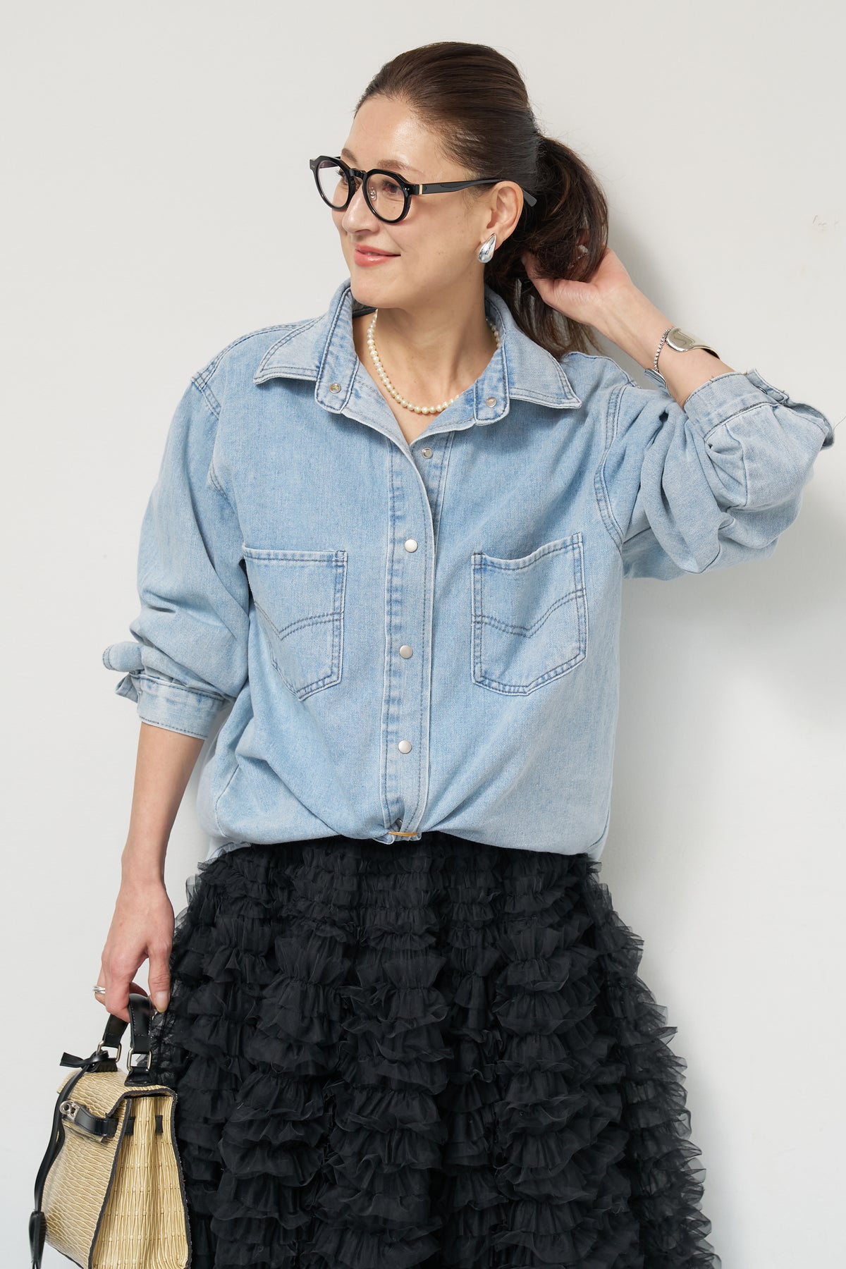 ソフトデニムオーバーシャツ/チュールティアードスカート