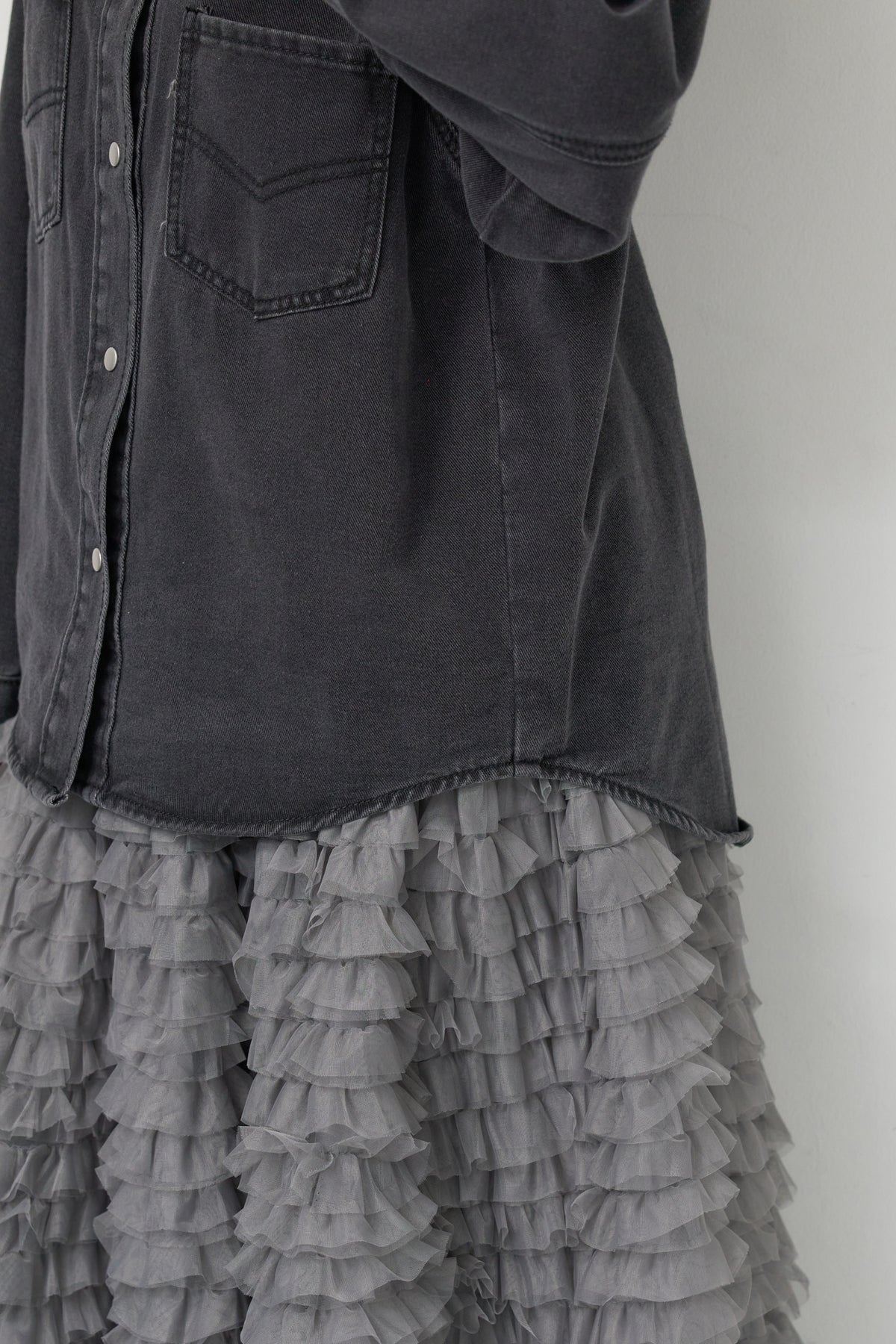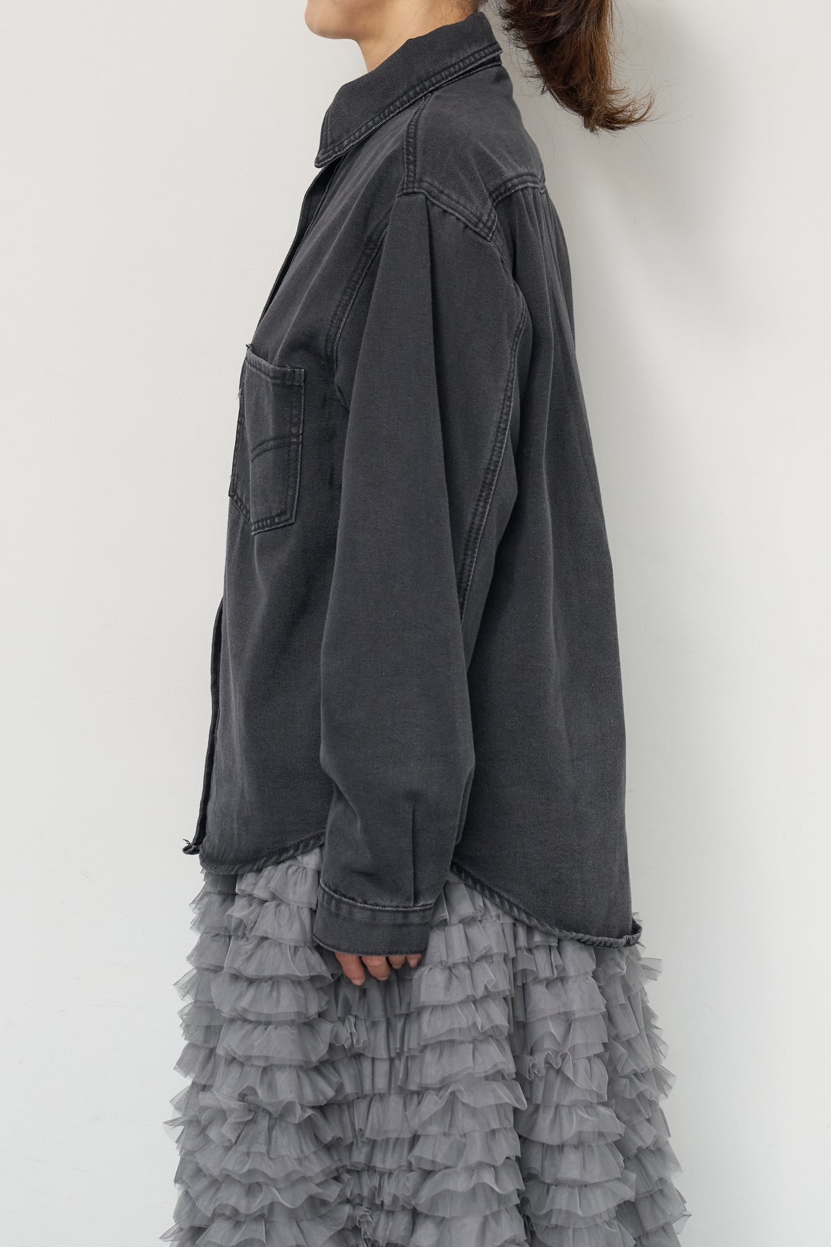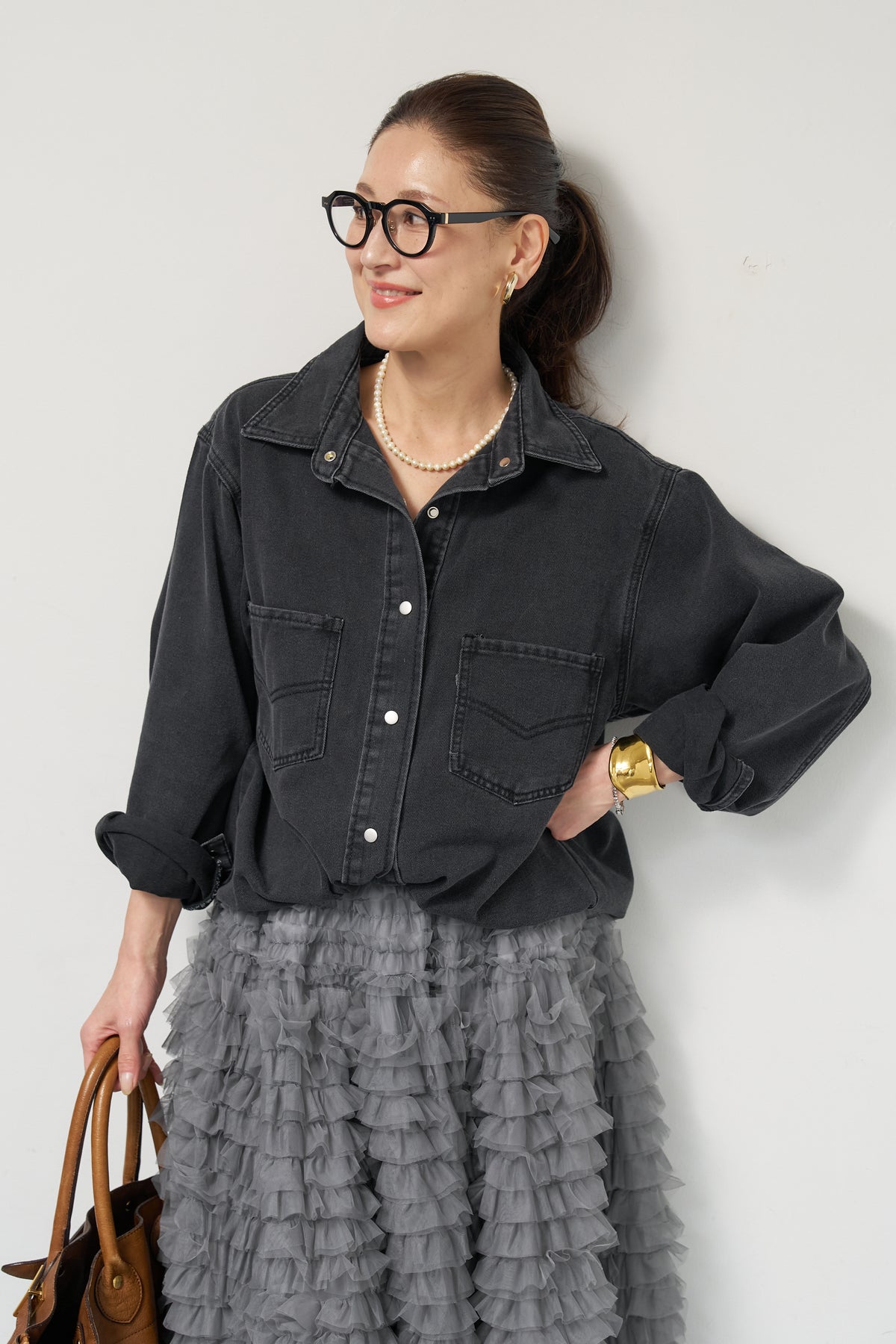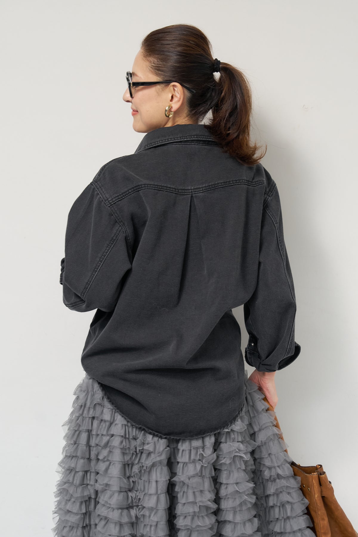 ソフトデニムオーバーシャツ/チュールティアードスカート