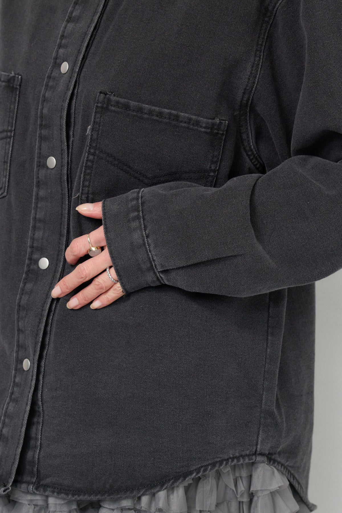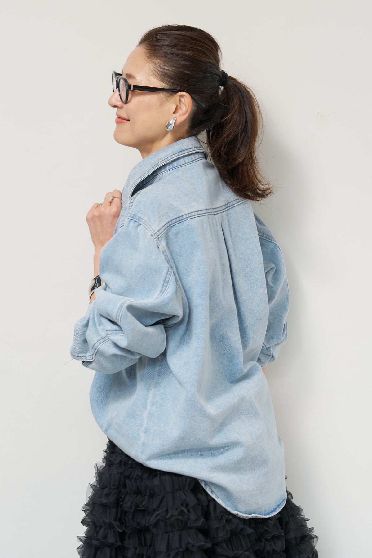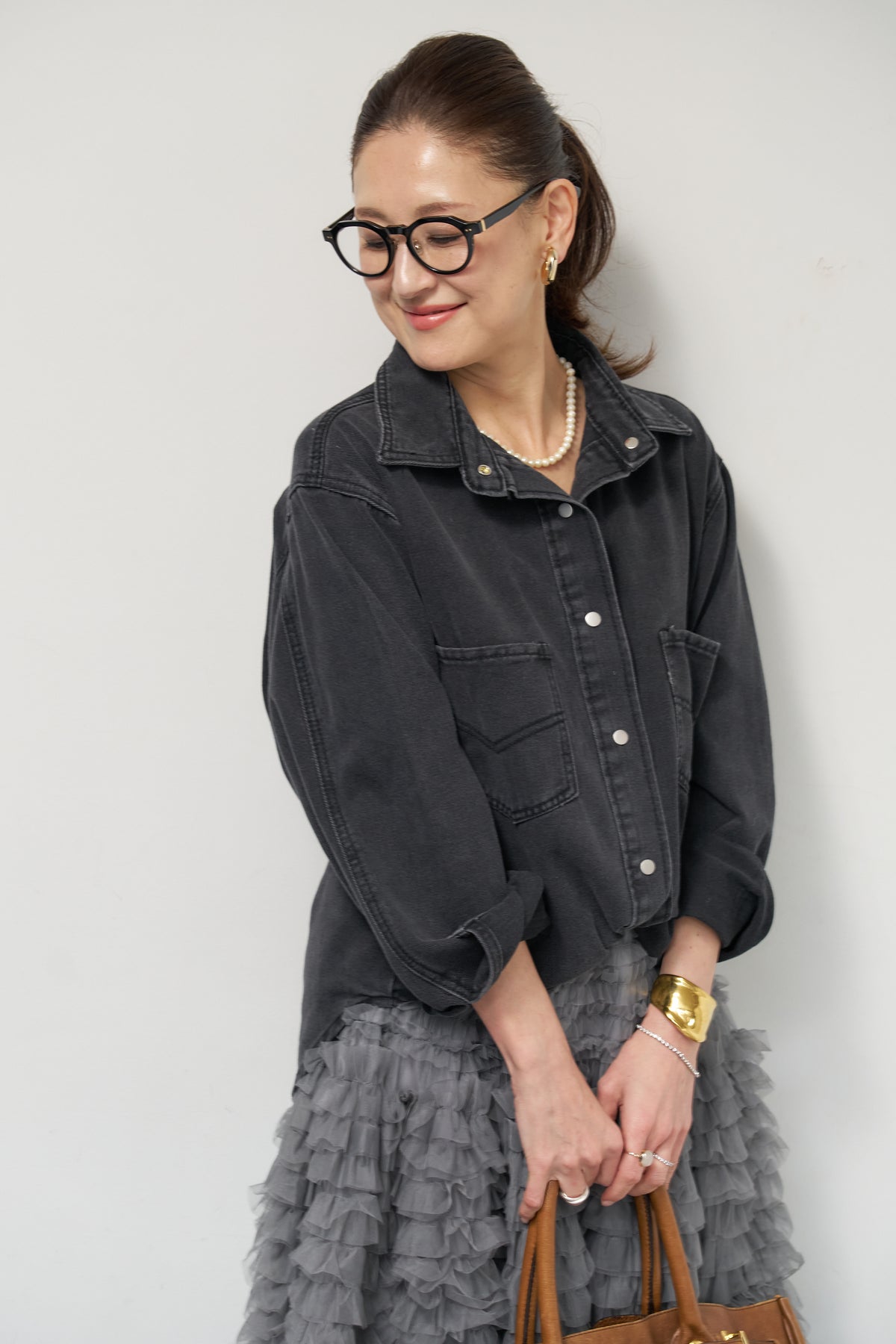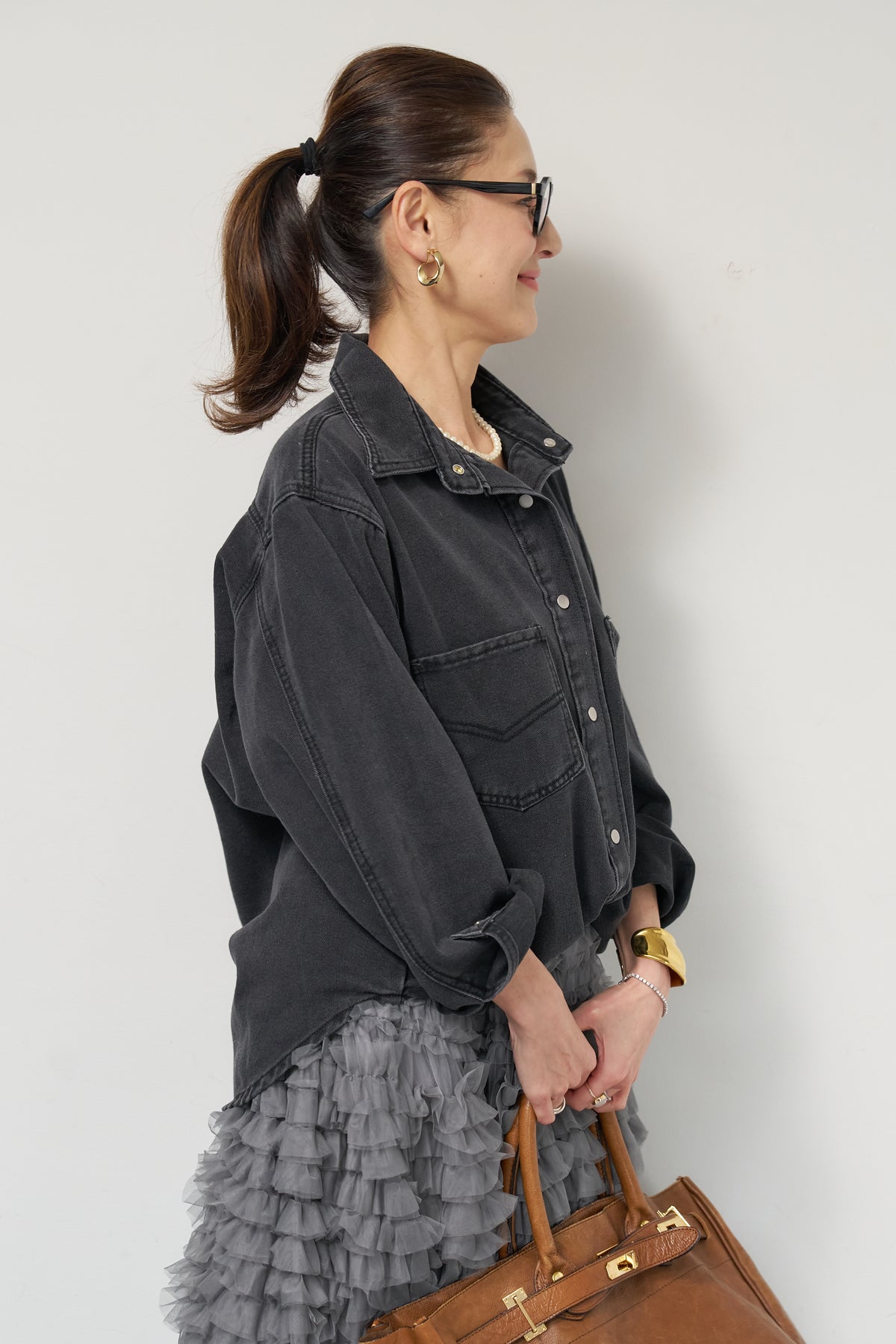 ソフトデニムオーバーシャツ/チュールティアードスカート